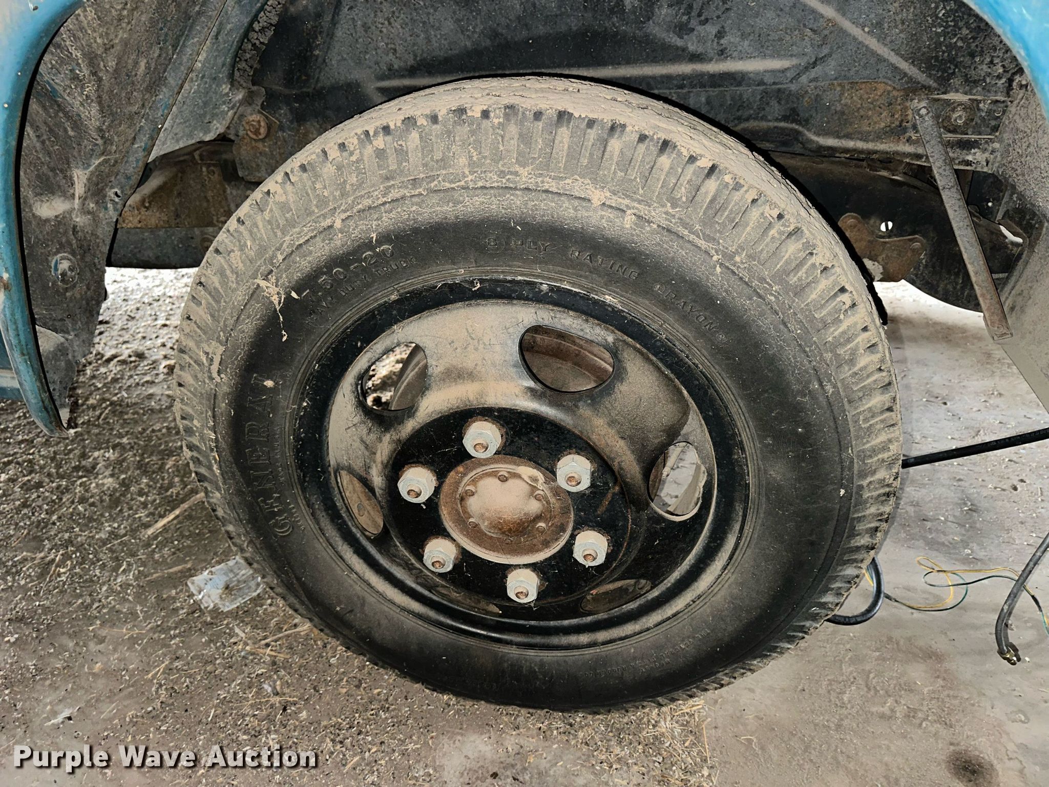 1958 Chevrolet Viking 60 grain truck. Miles: 44,409 on odometer, VIN: V6B58K102752. Engine Cylinders: 8, Fuel type: Gas. Transmission Manual, Speed: 8, plus 2. Chassis Axles: Single, Suspension: Spring, Brakes: Hydraulic, PTO. Features Dump bed Knapheide, 13' 8" L x 93" W, Side height: 28", Side board height: 12". Tires Size: 8.25-20. Notes Contents not included, Unknown operating condition. Kansas title. Title distribution may be delayed up to 30 days from verification of funds. 525 Hudson Avenue. Oakley, KS 67748