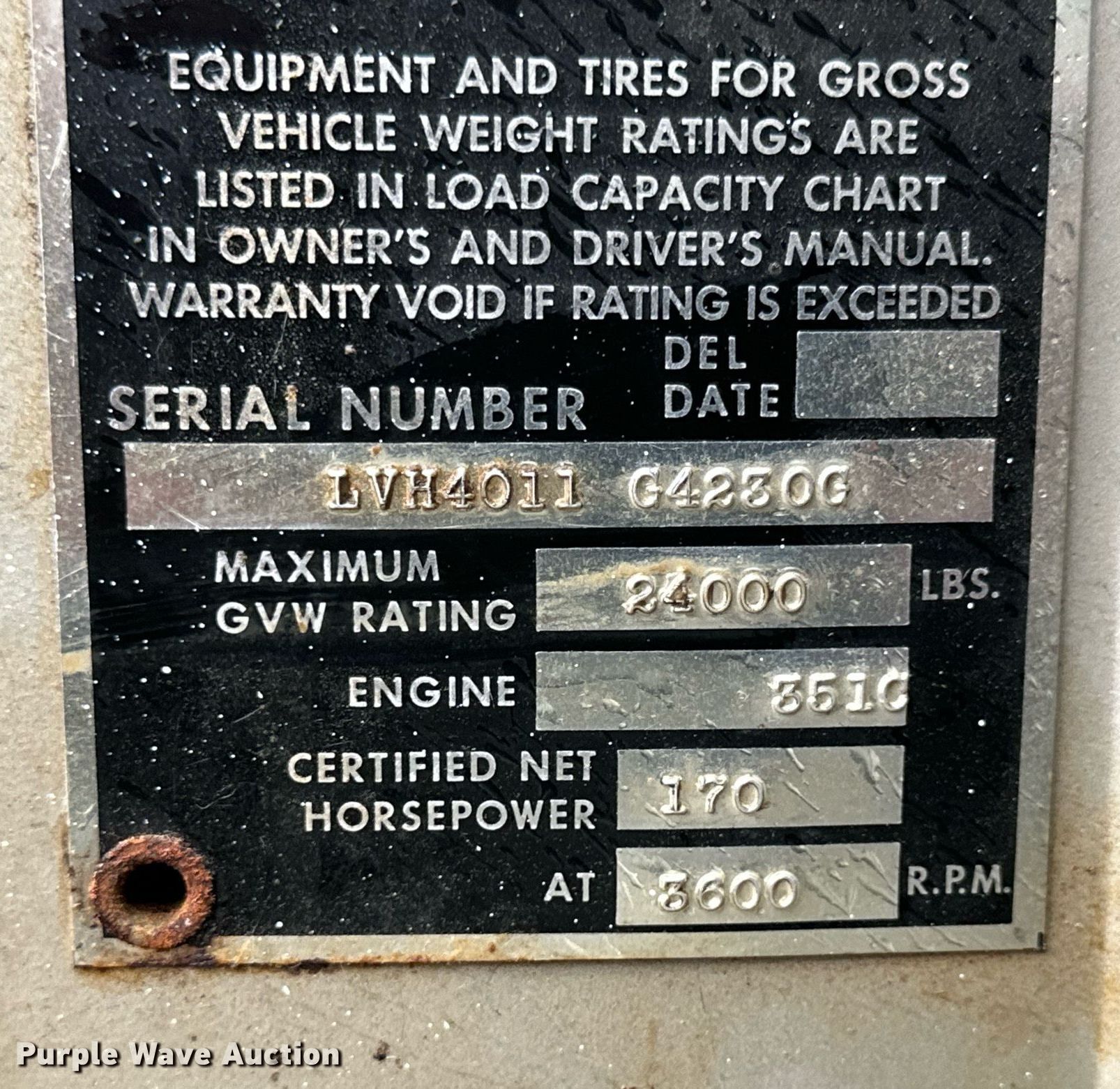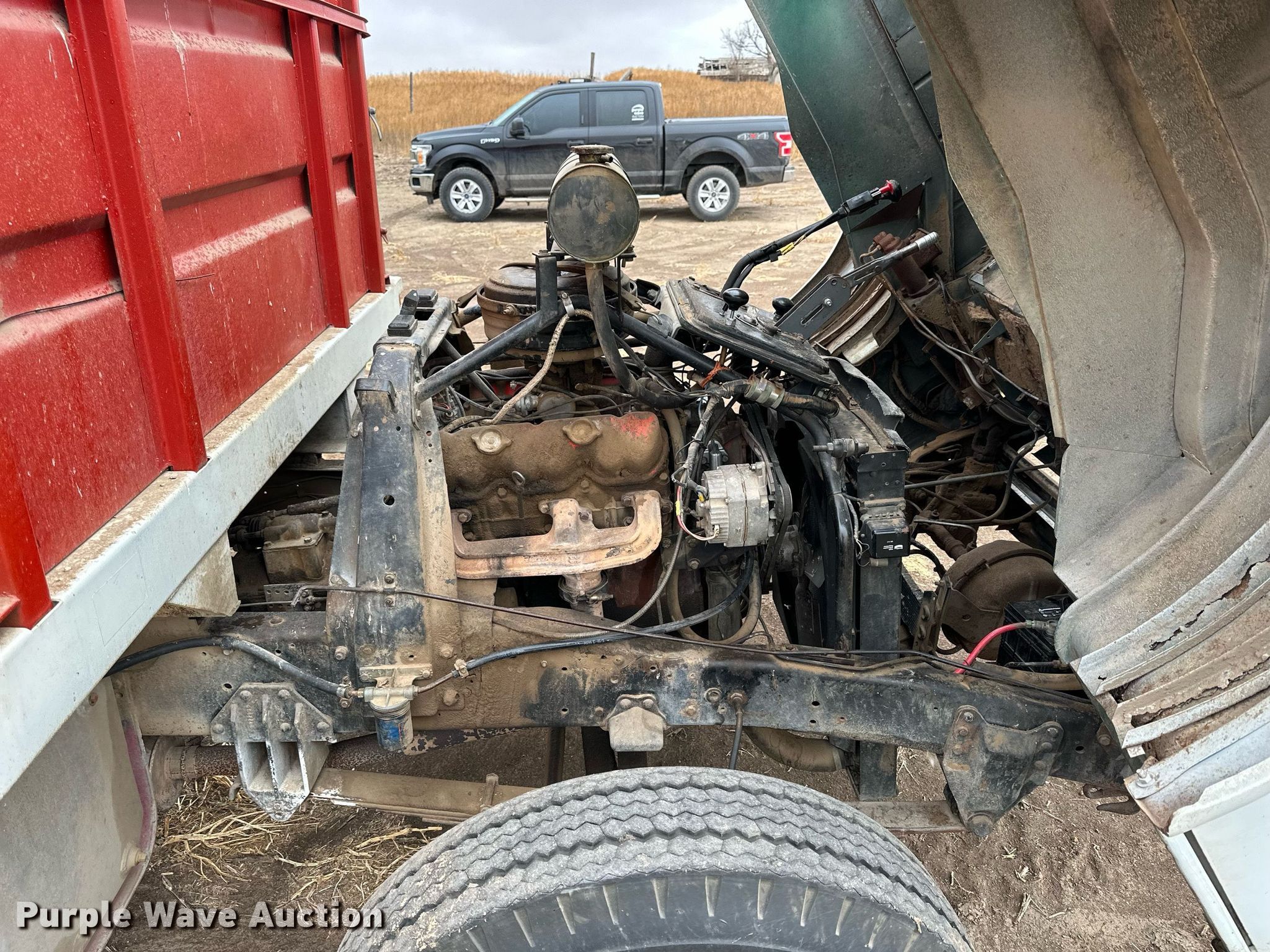 1966 GMC 4000 grain truck. Miles: 174,268 on odometer, VIN: G4230G. Engine Cylinders: 6, Fuel type: Gas, HP: 170. Transmission Speed: 4, plus 2. Chassis Axles: Single, Suspension: Spring, Brakes: Hydraulic, PTO, GVWR: 24,000 lbs. Interior Heat. Features Dump bed 16' 4" L x 94" W, Side board height: 12", Roll tarp, Ram: Dual, End gate: Manual. Tires Size: 9.00-20. Kansas title. Title distribution may be delayed up to 30 days from verification of funds. 525 Hudson Avenue. Oakley, KS 67748