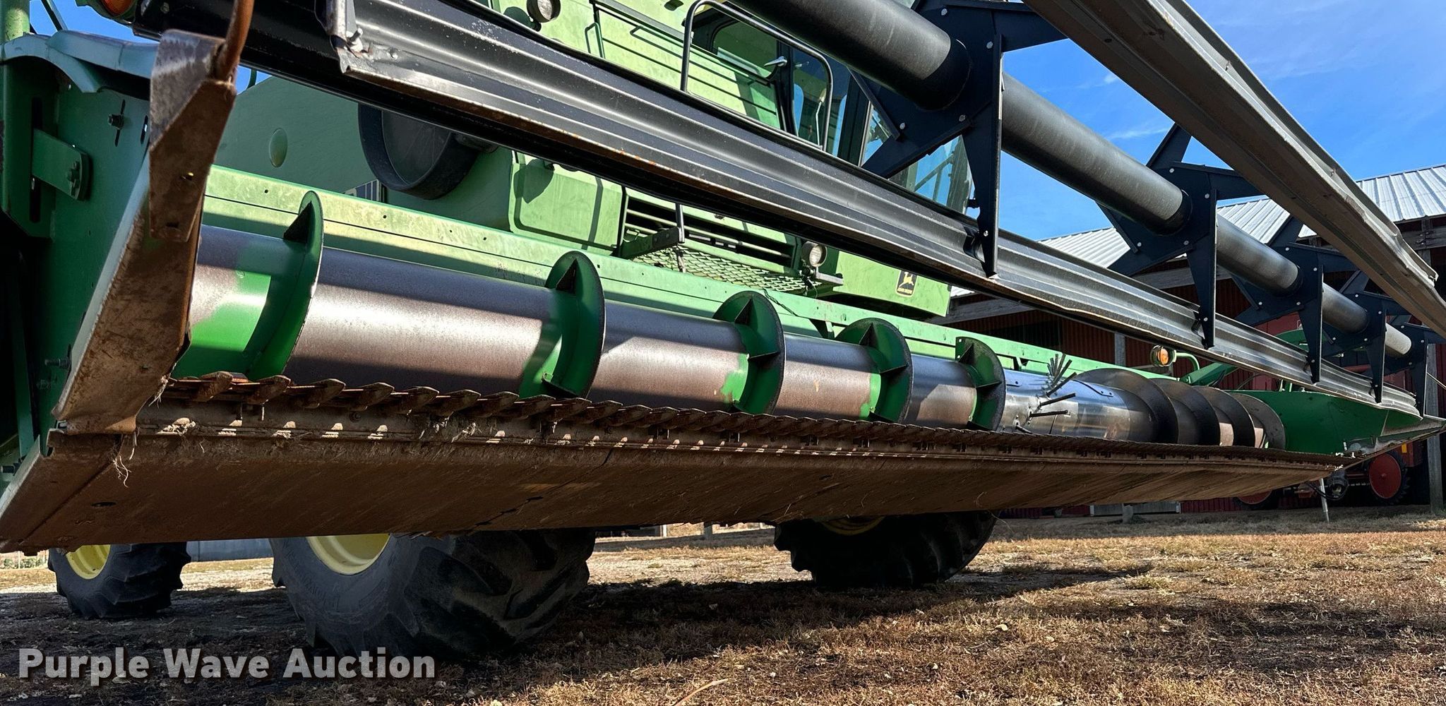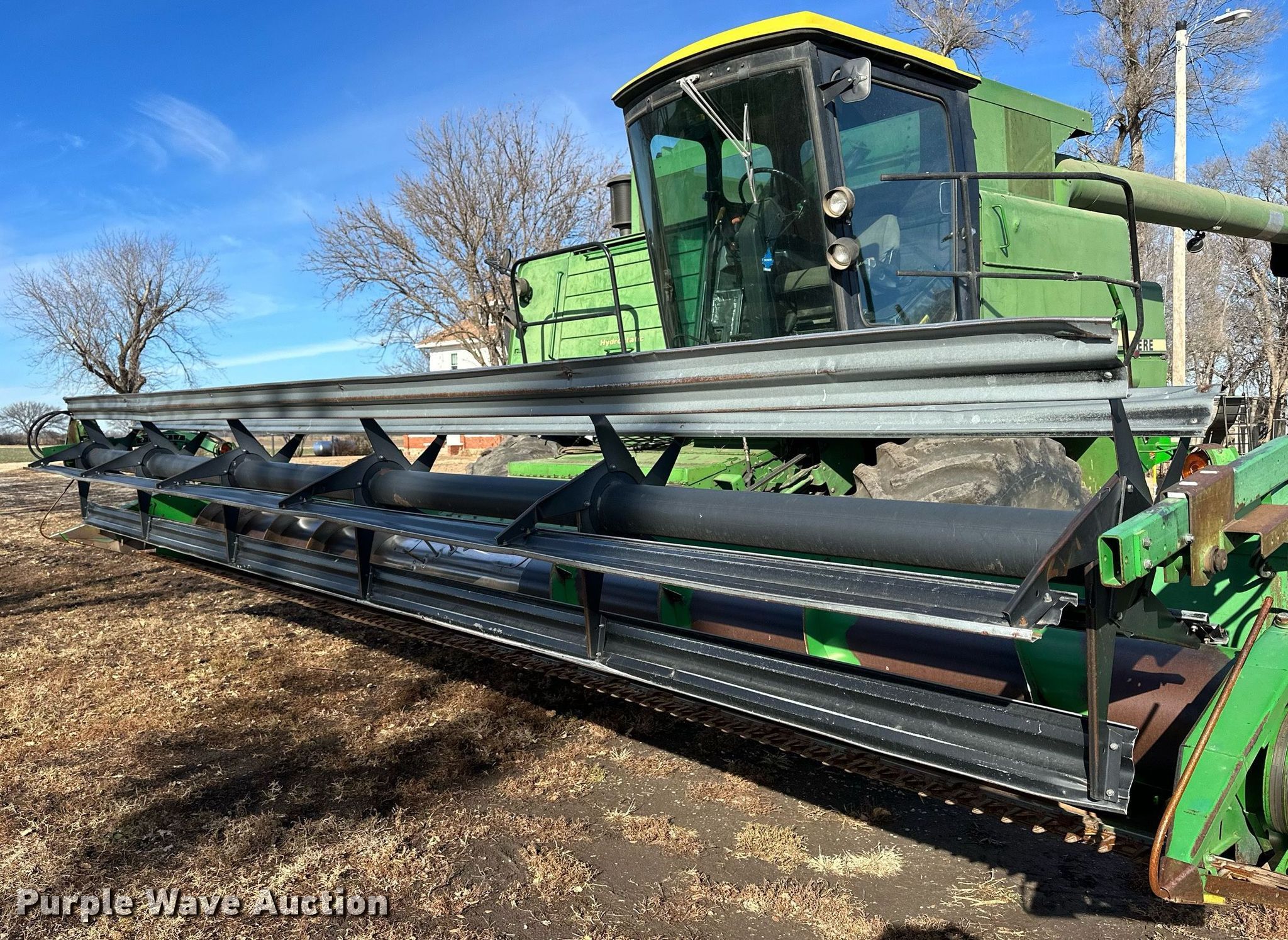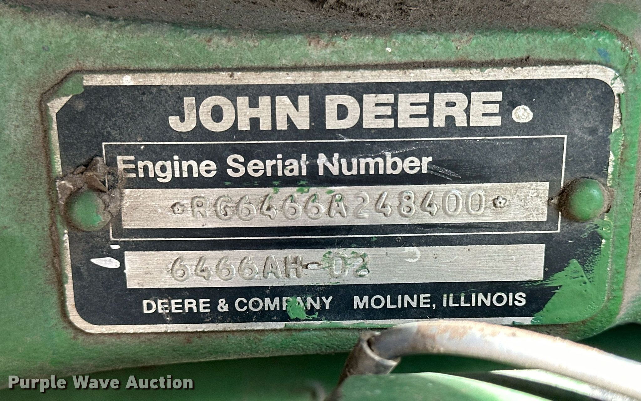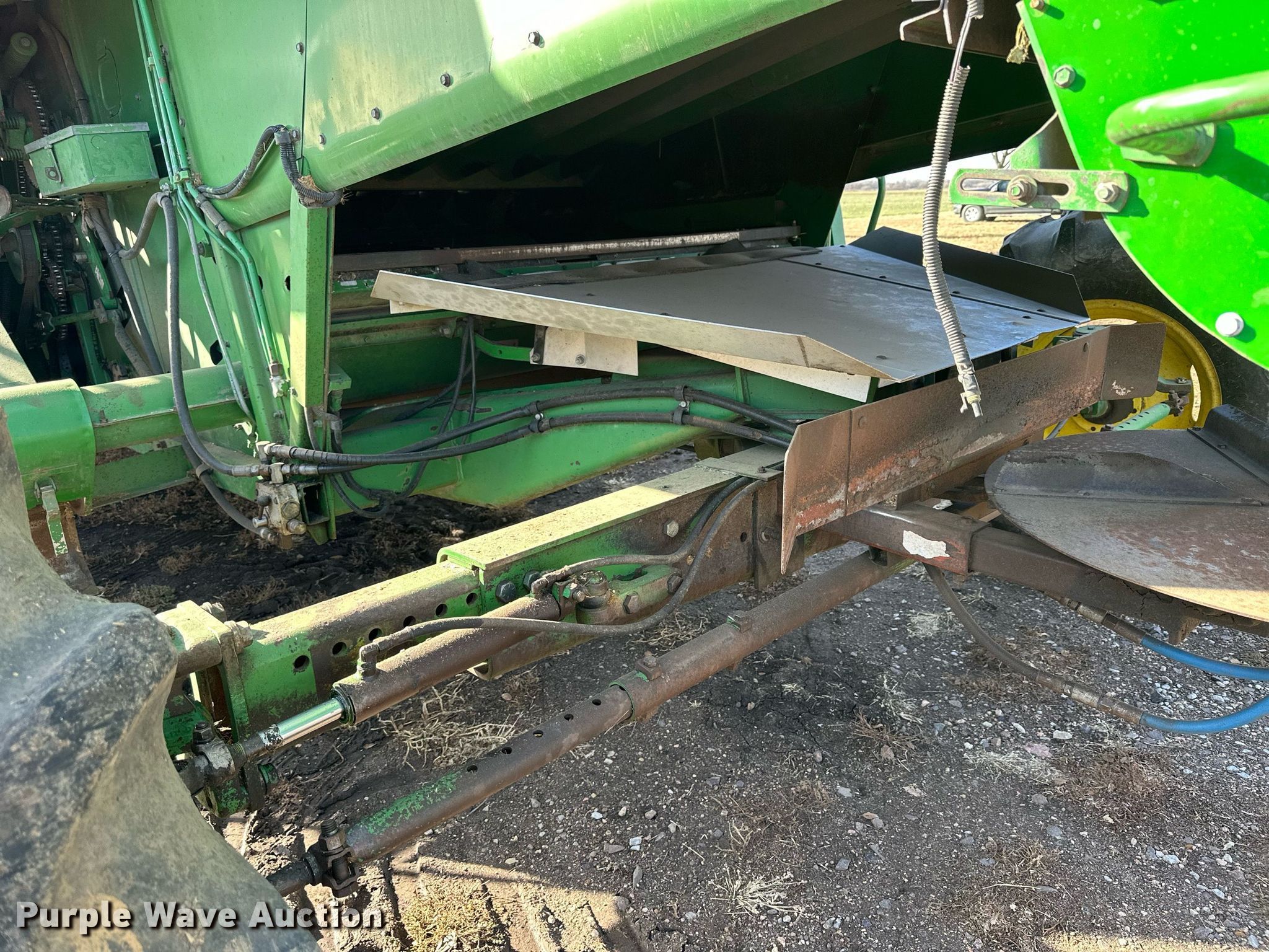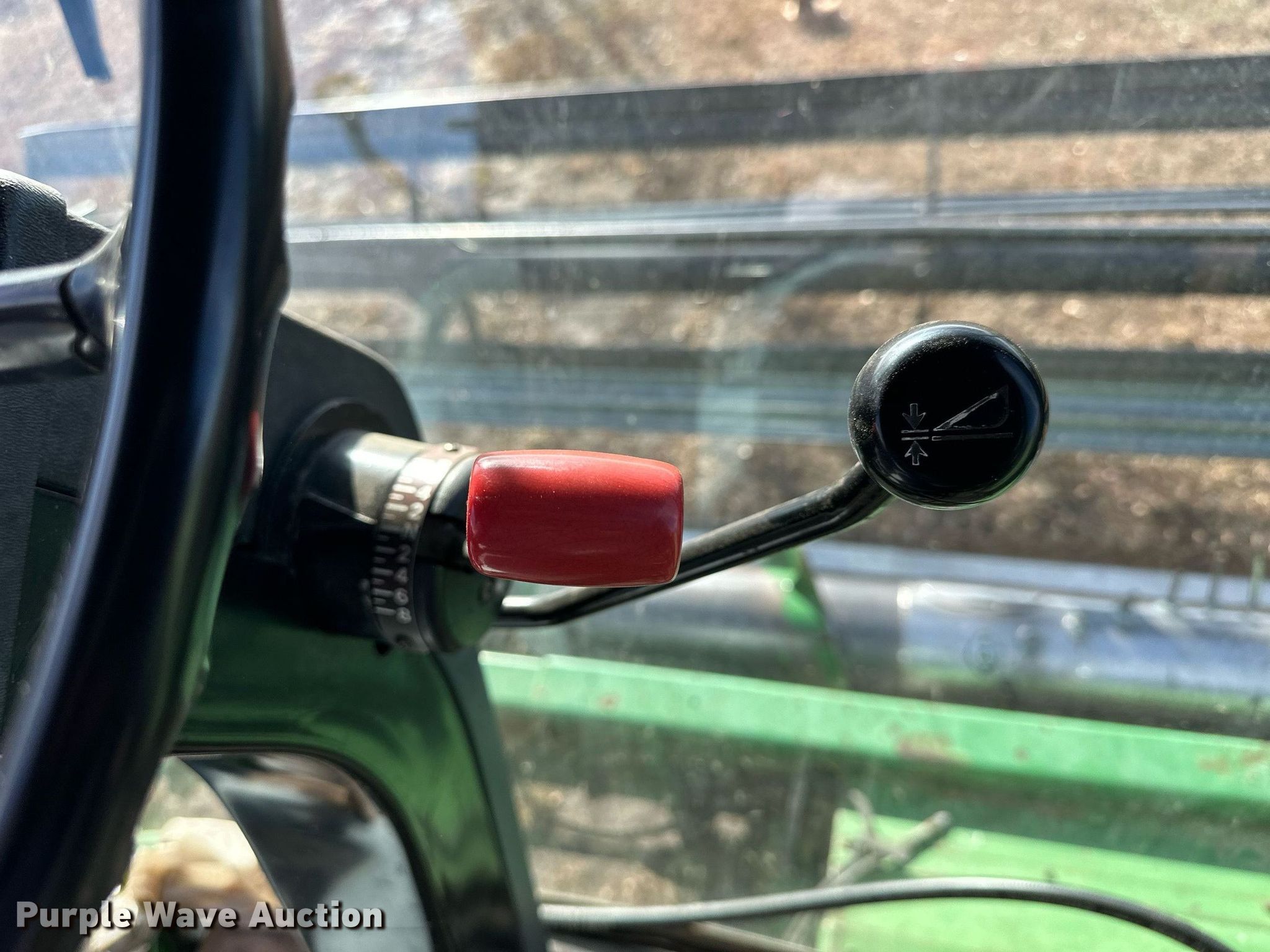 1983 John Deere 8820 combine. Engine hours: 2,482 on meter, Serial: H08820X564616. Engine John Deere 6466AH-02, Serial: RG6466A248400, Displacement: 7.6L, Cylinders: 6, Fuel type: Diesel. Transmission Hydrostatic. Interior AC, Heat. Features Feederhouse: Variable speed, Reverser, Concaves: Round, Chaff spreader, Straw chopper, Bin: Extensions, Unloading auger length: 15', Header 1993 John Deere 925, Serial: H00925P651354, Platform head Rigid, Width: 25', Reel: Bat Hydraulic fore/aft, Hydraulic reel height control, Skid plates: Steel, Single point coupler, Drivelines: Dual. Tires Front: 30.5L-32, Rear: 16.9-26. 150 North 80th Road. Tescott, KS 67484