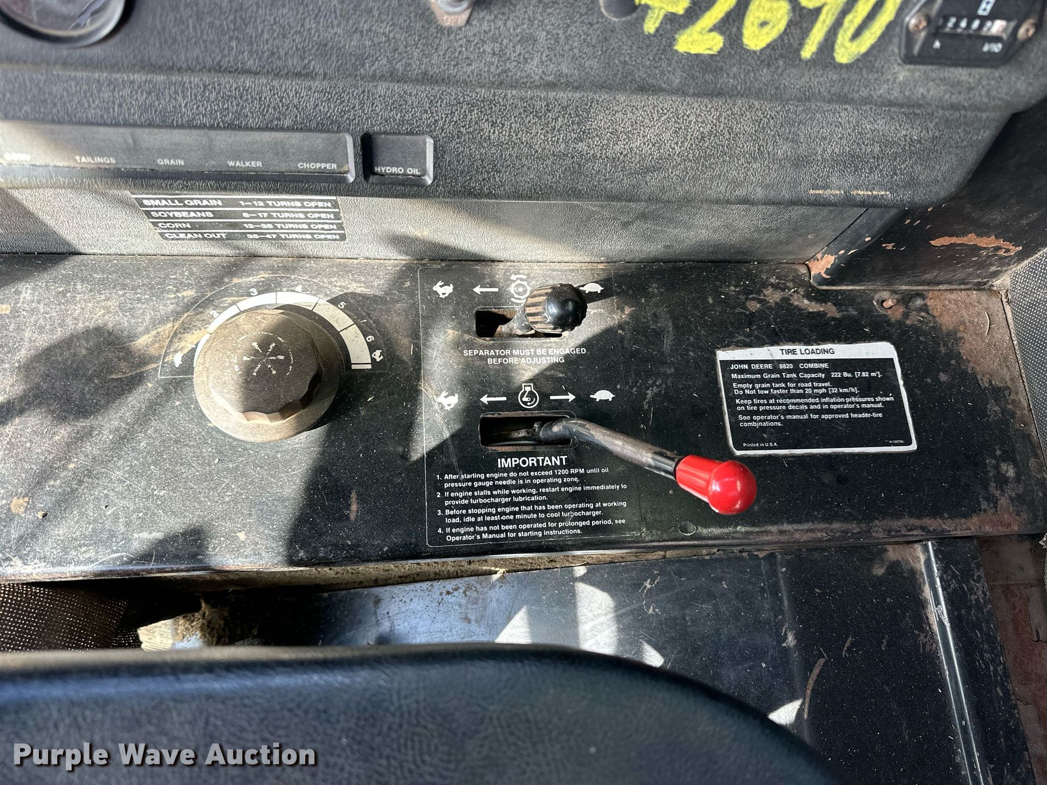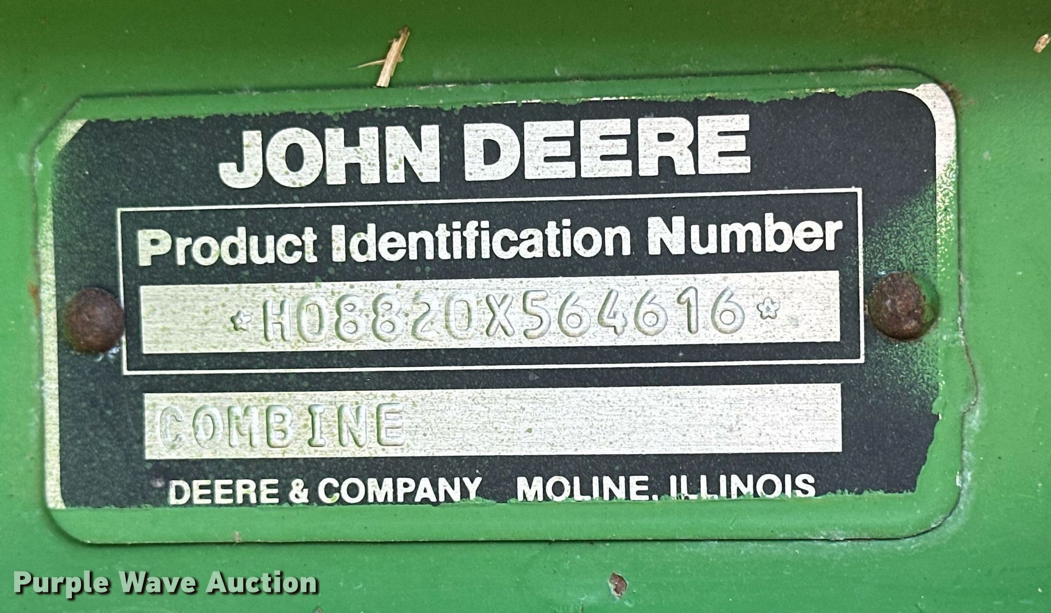 Purple Wave is selling a used Combine in Kansas. This item is a 1983 John Deere 8820 combine with the following: Engine hours: 2,482 on meter, Serial: H08820X564616
