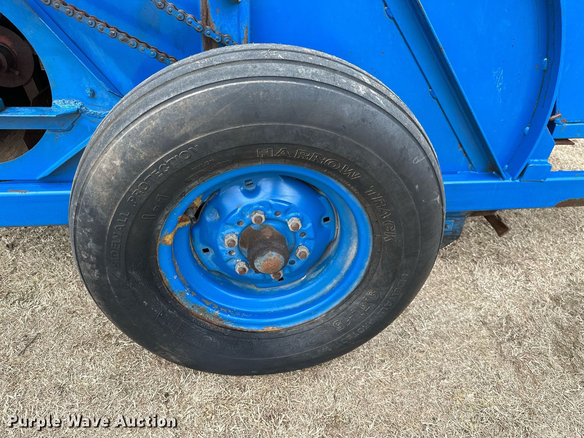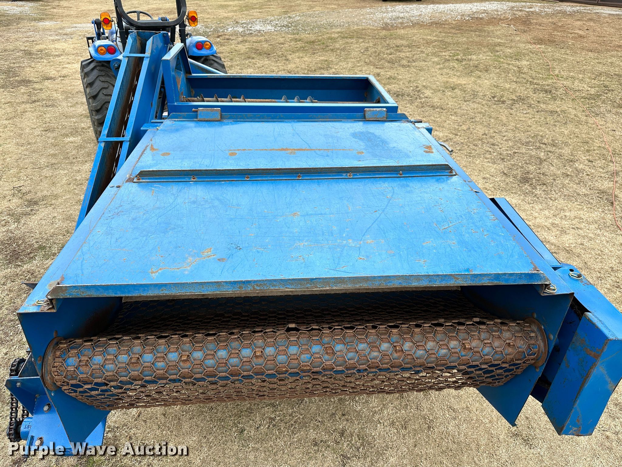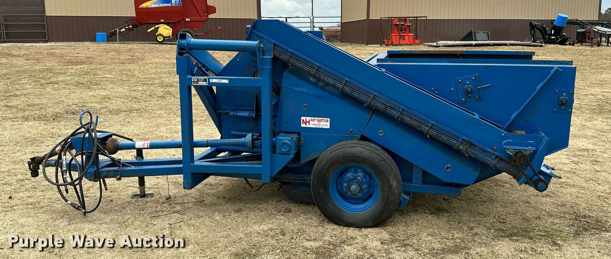 Nut Hustler 8090 nut harvester. Serial: NH80908945. Features Header PTO: 540, Auger: 5" diameter, Pickup width: 5', Hydraulic lift. Tires Size: 9.5L-15. Skiatook, OK 74070