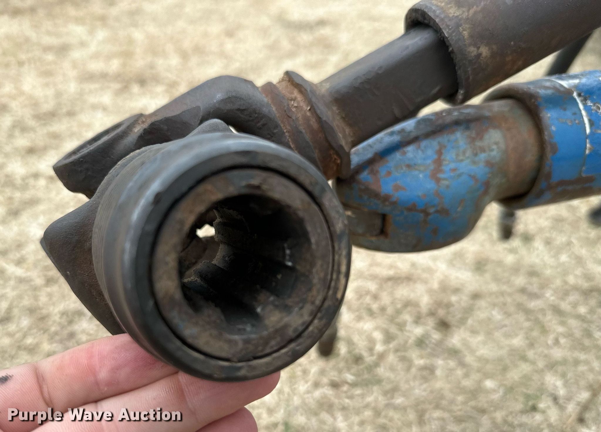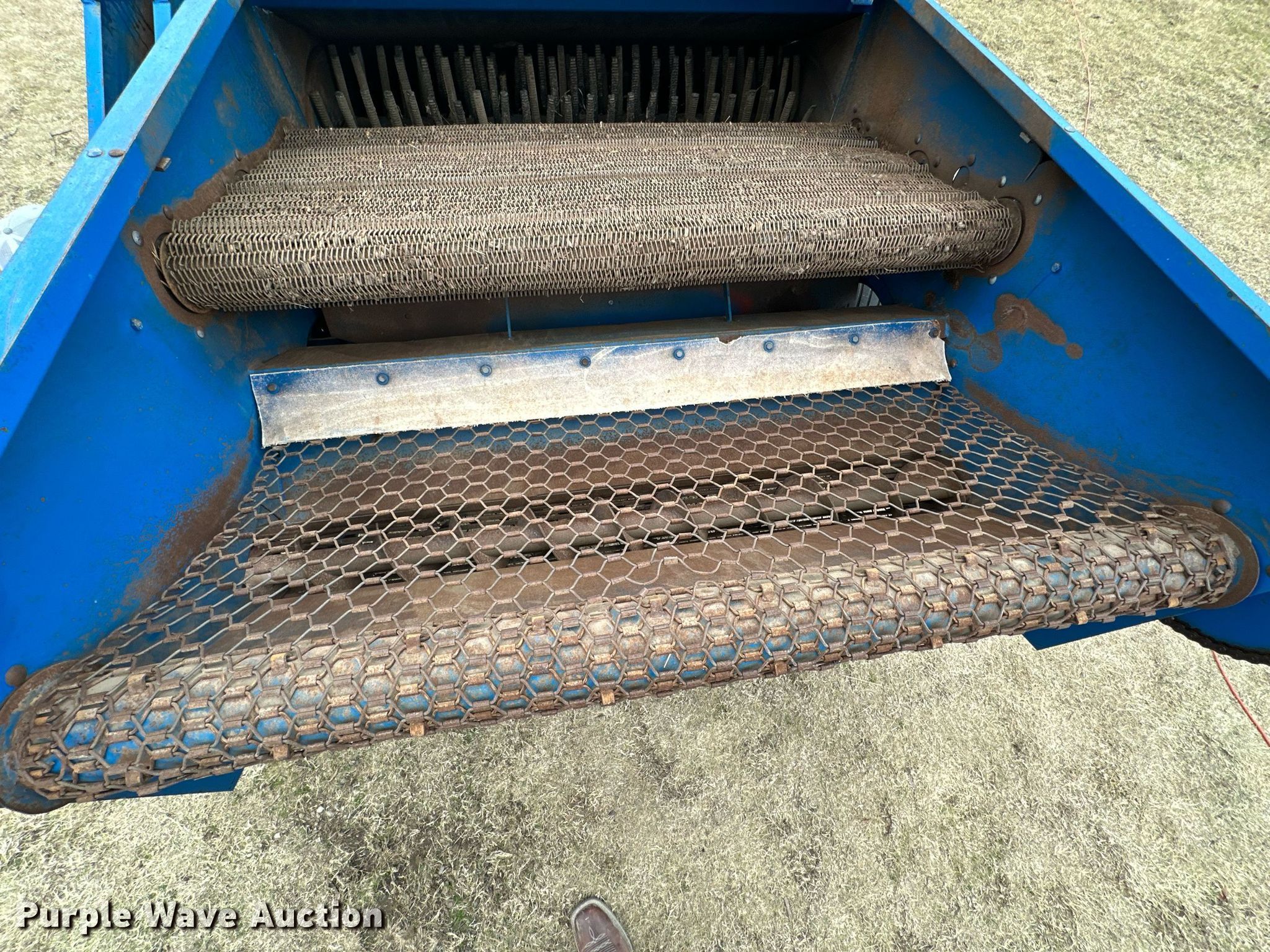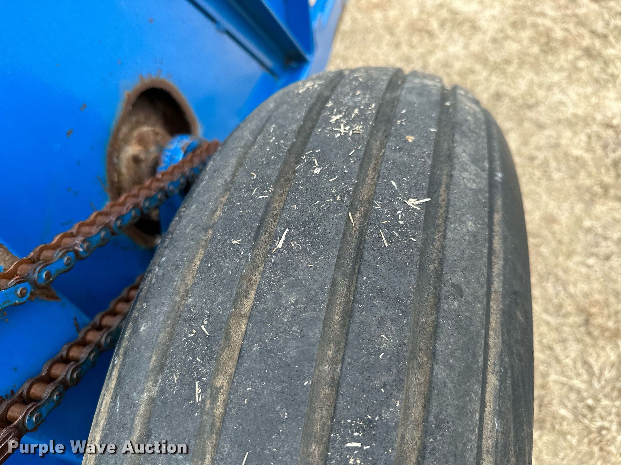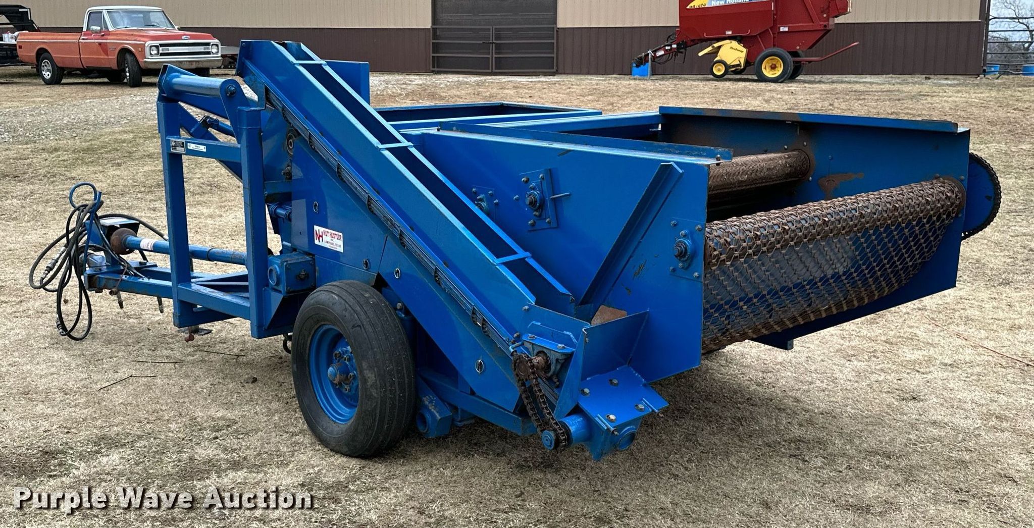 Nut Hustler 8090 nut harvester. Serial: NH80908945. Features Header PTO: 540, Auger: 5" diameter, Pickup width: 5', Hydraulic lift. Tires Size: 9.5L-15. Skiatook, OK 74070