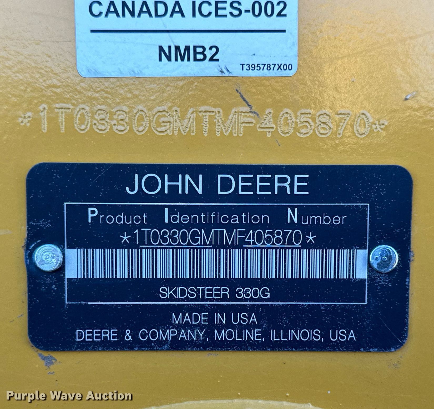 Purple Wave is selling a used Skid Steer Loader in Kansas. This item is a 2021 John Deere 330G skid steer loader with the following: Hours: 164 on meter, Serial: 1T0330GMTMF405870