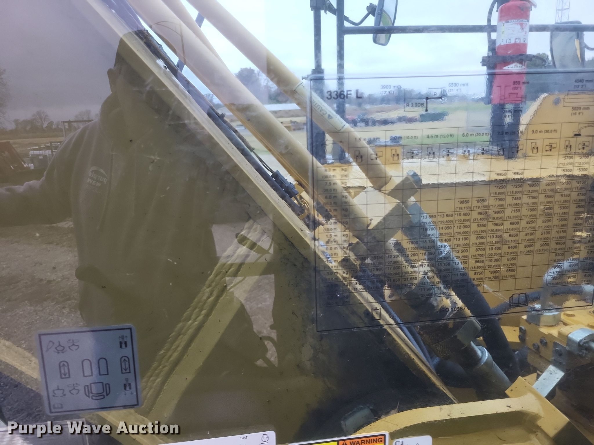 2016 Caterpillar 336FL long reach excavator. Hours: 9,498 on meter, Serial: CAT0336FVTZA00527, Unit #: 336-D. Engine Caterpillar C9.3 Acert , Displacement: 9.3L, Cylinders: 6, Fuel type: Diesel, HP: 318. Transmission Hydrostatic, Two speed travel. Operators station Enclosed cab, AC, Heat, Pattern changer. Features Counter weights, Boom Jewell Diamond Series, Standard, Stick Jewell Diamond Series, Stick length: 27' 6", Long reach, Overall length: 65', Bucket Width: 72", Cutting edge: Weld-on. Tracks Width: 33.5", Steel, Grouser pads: Triple. Notes Service records available upon request to [email protected]. Little River Drainage District. 2889 State Hwy A. Wardell, MO 63879