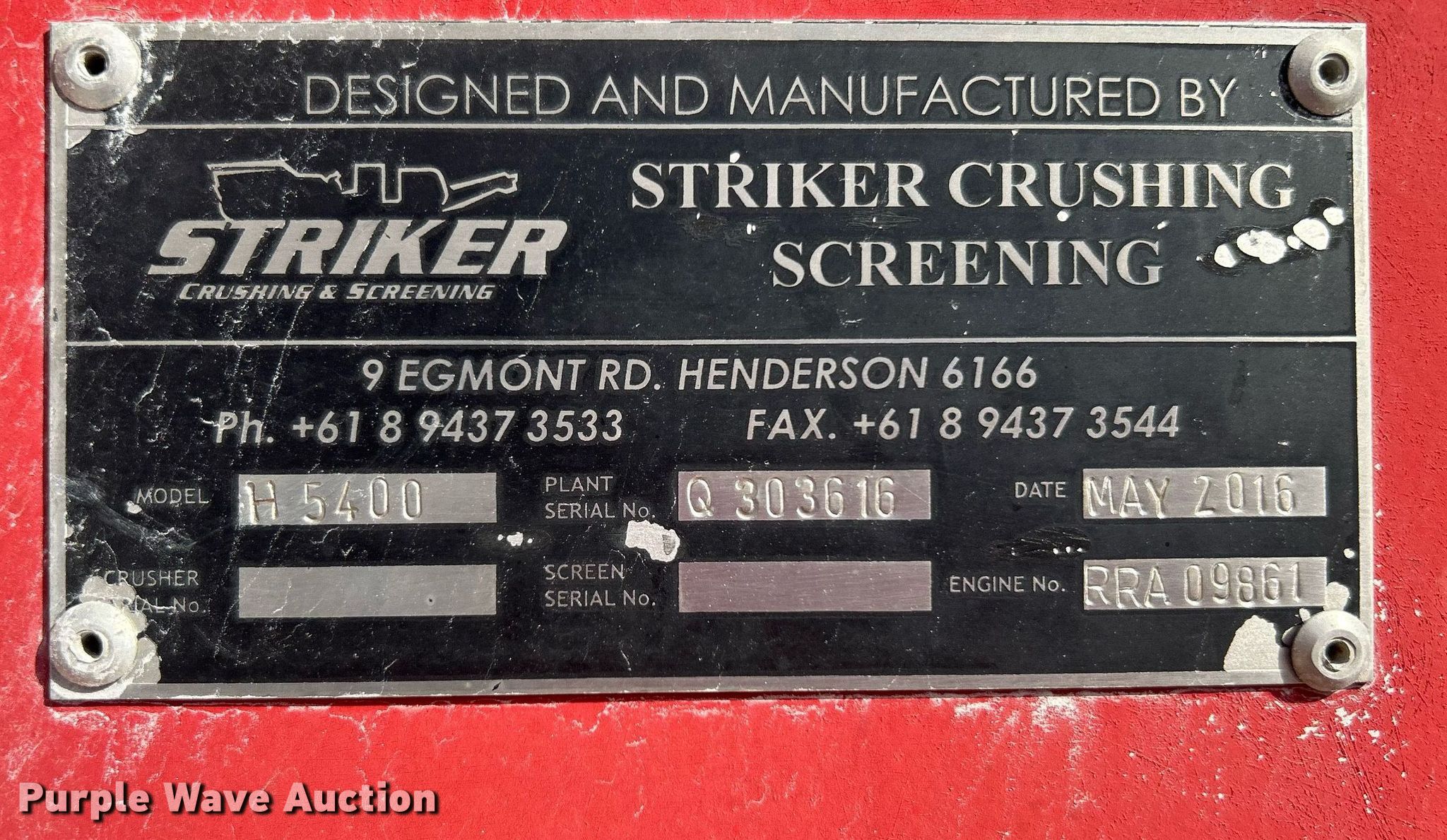 2016 Striker Crushing & Screening H5400 crusher has sold in Gore, Oklahoma for $89100. Item DL7142 sold on December 28th, 2023.
