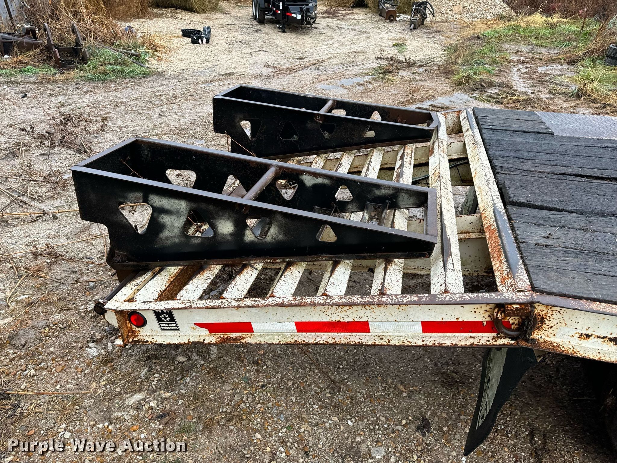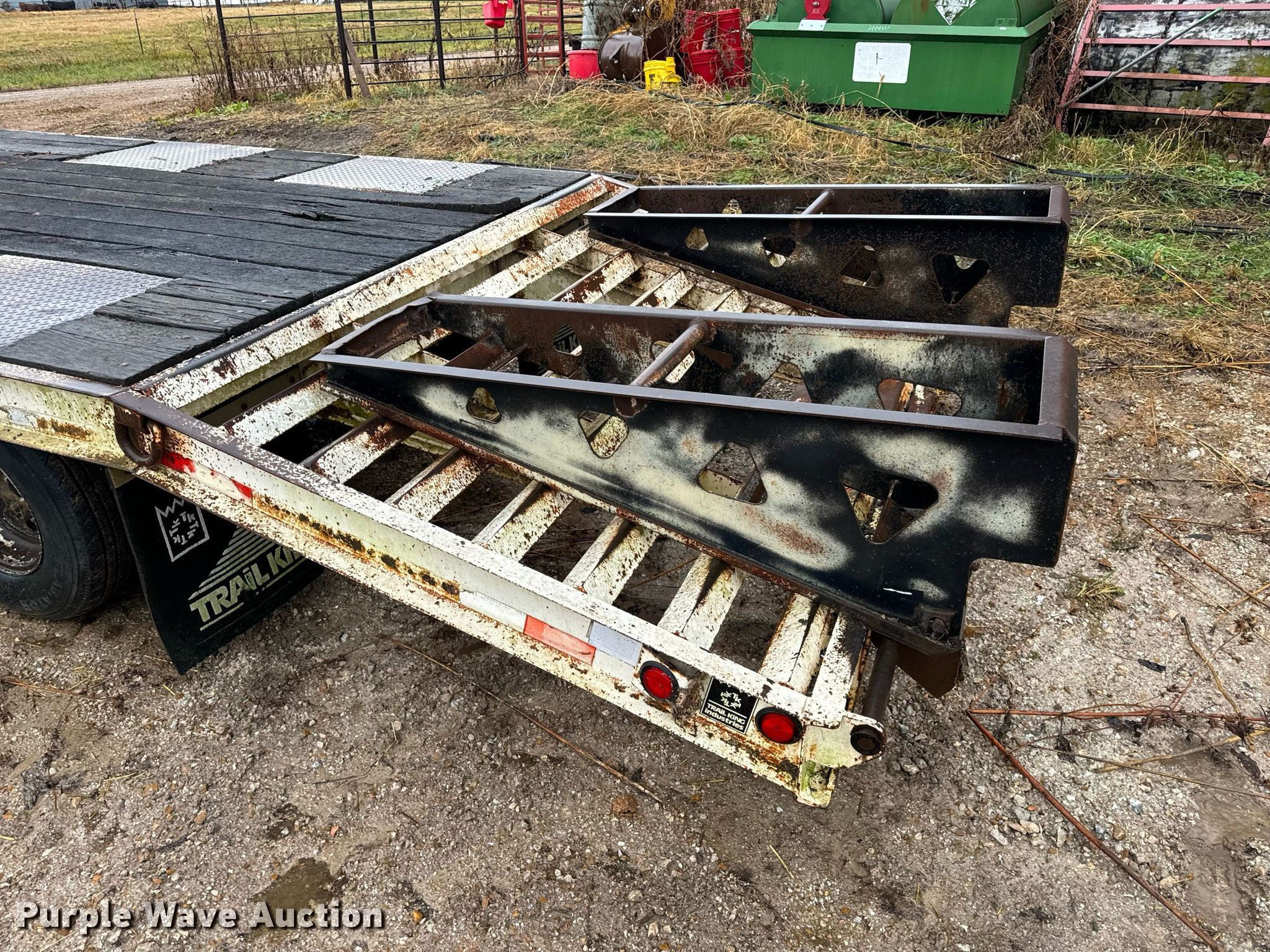 2000 Trail King TK20-2400 equipment trailer. VIN: 1TKC02428YM111364. Dimensions Overall: 30' L x 96" W, Deck: 19' L x 96" W, Tail length: 5', Ramps: Manual Length: 5'. Features Deck type: Wood. Chassis Hitch: Pintle, Landing gear: Single, Suspension: Spring, Brakes: Air, Axles: Tandem, GVWR: 25,950 lbs, GAWR: 10,000 lbs. Tires Steel wheels, Size: ST225/90R16. Missouri title. Title distribution may be delayed up to 14 days from verification of funds. 41168 High Point Rd. Russellville, MO 65074