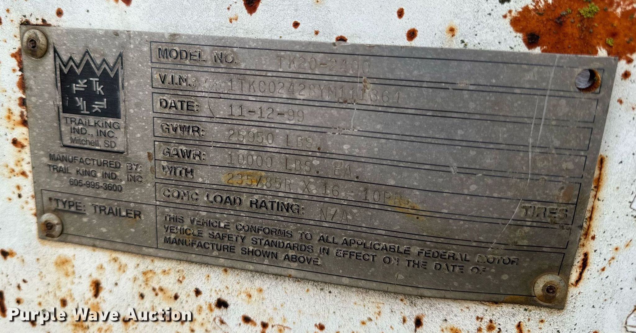 Purple Wave is selling a used Equip. Trailer in Missouri. This item is a 2000 Trail King TK20-2400 equipment trailer with the following: VIN: 1TKC02428YM111364