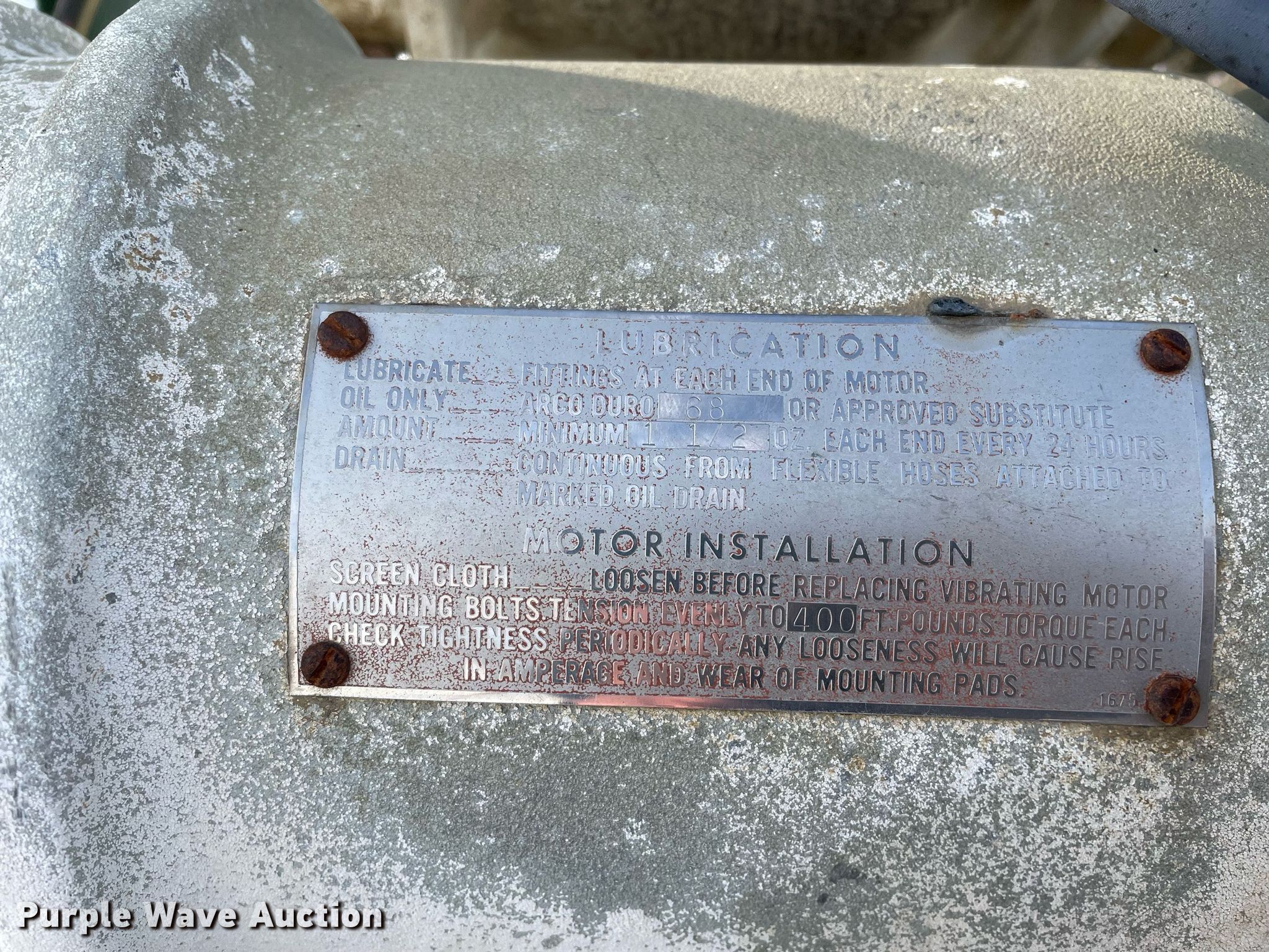 Derrick Dewatering screen. Electric Motor. Derrick 36/20 Serial: 22178, HP: 1.5, Volts: 460, Phase: Three. Features Screen deck Length: 8', Width: 4', Decks: Single, Vibrating. Notes Additional screens included. Alliance Materials Inc.. 13134 Galt Rd. Sterling, IL 61081
