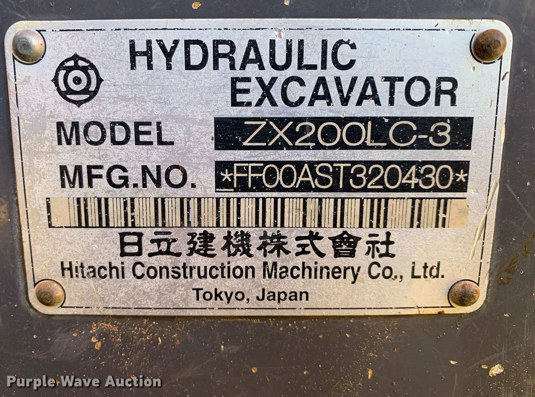 Purple Wave is selling a used Hydraulic Excavator in Texas. This item is a 2009 Hitachi ZX200LC-3 excavator with the following: Hours: 7,210 on meter, Serial: FF00AST320430