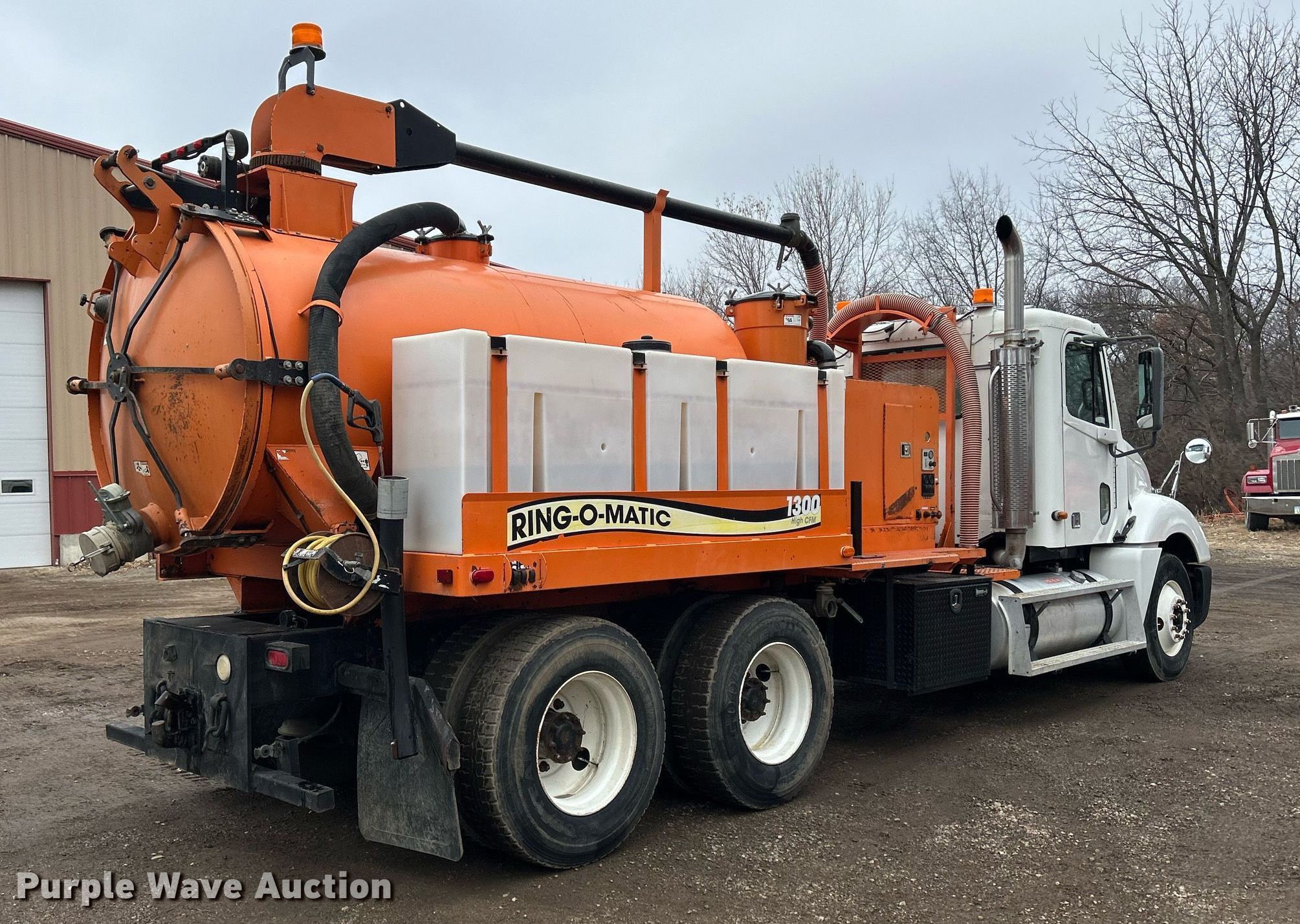 2004 Freightliner Columbia vacuum truck. Miles: 719,683 on odometer, Hours: 21,255 on meter, VIN: 1FUJA6CK74PM13184. Engine Detroit Diesel Series 60, Displacement: 12.7L, Cylinders: 6, Fuel type: Diesel, Engine brake. Transmission Manual, Speed: 10. Chassis Axles: Tandem, Suspension: Air, Brakes: Air, GVWR: 52,000 lbs, Wheelbase: 234". Interior AC, Heat, Cruise control, Brake controller. Features Tank bed 2011 Ring-O-Matic 1300 Vac/Water, Serial: 1300SJSMB007H, Capacity: 1,300 gallons, Top hatches: 1, Rear outlet: 7", Engine Caterpillar C2.2, Cylinders: 4, Fuel type: Diesel, Hours: 777, Vacuum pump Gardner Denver GAELARA0188, Serial: S343899, Hose reel Rear, Manual, (2) Water tanks Capacity: 250 gallons. Tires Size: 11R22.5. Iowa title. Title distribution may be delayed up to 14 days from verification of funds. Tatroe Trenching. 1515 Horton Road. Waverly, IA 50677
