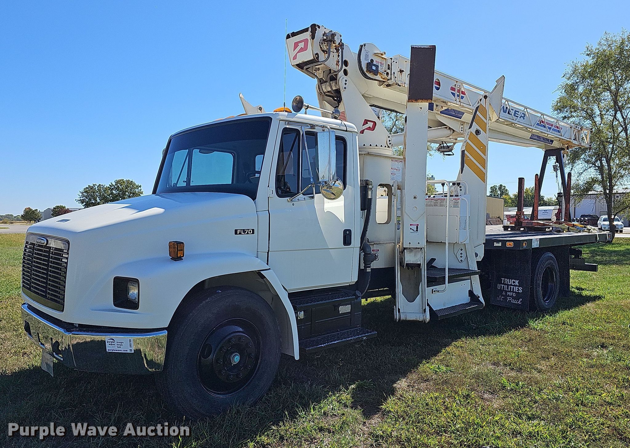 Purple Wave is selling a used Crane Truck in Kansas. This item is a 1998 Freightliner FL70 crane truck with the following: Miles: 34,506 on odometer, Hours: 3,363 on meter, VIN: 1FV6HFBA7WH894735
