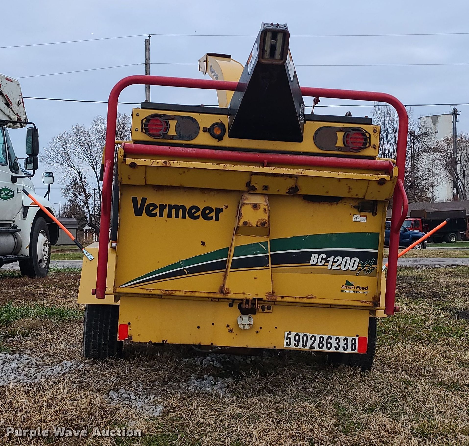 2013 Vermeer BC1200XL wood chipper. Hours: 2,311 on meter, VIN: 1VR7141Y8D1001064. Engine Cylinders: 4, Fuel type: Diesel. Features Auto feed. Trailer 14' L x 84" W, Suspension: Spring, Brakes: Electric, Axles: Single, Tire size: 244/75R16. This is worksite support equipment and will not come with a title. Transfer of ownership documentation will be a bill of sale. Greenworks Tree & Lawn Care. 205 Jane Street. Hardin, MO 64035