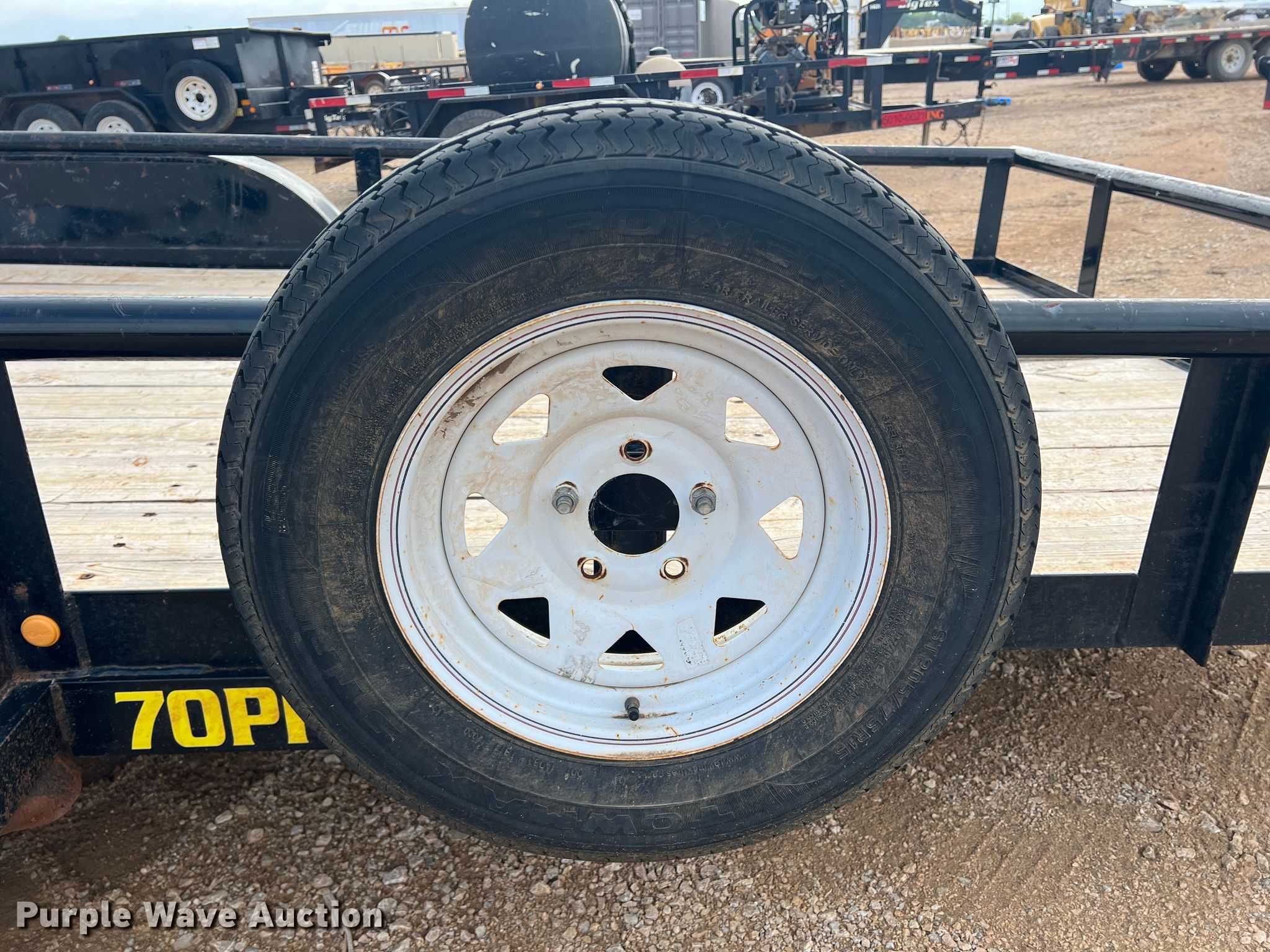 2019 Big Tex 70PI-16XBK utility trailer. VIN: 16VPX1623K2053800, Unit #: 1039. Dimensions Overall: 19' L x 96" W, Deck: 16' L x 84" W, Ramps: Manual Length: 4'. Features Deck type: Wood. Chassis Landing gear: Single, Suspension: Spring, Brakes: Electric, Axles: Tandem, GVWR: 7,000 lbs, GAWR: 3,500 lbs. Tires Steel wheels, Size: 205/75R15. Notes Landing gear bent. Texas title. Title distribution may be delayed up to 14 days from verification of funds. RES Renewable Energy Systems. 6011 Farm to Market 920. Weatherford, TX 76088