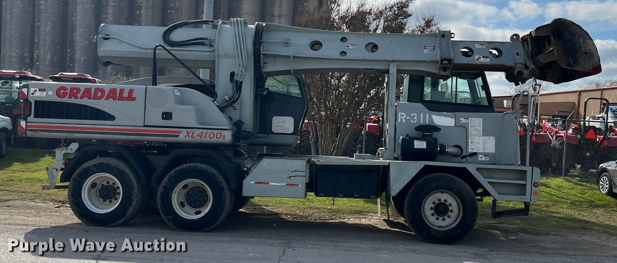 Purple Wave is selling a used Wheeled Excavator in Texas. This item is a Gradall XL4100 II wheeled excavator with the following: Miles: 52,484 on odometer, Hours: 9,871 on meter, Hours: 8,157 on second meter, Serial: 4100124