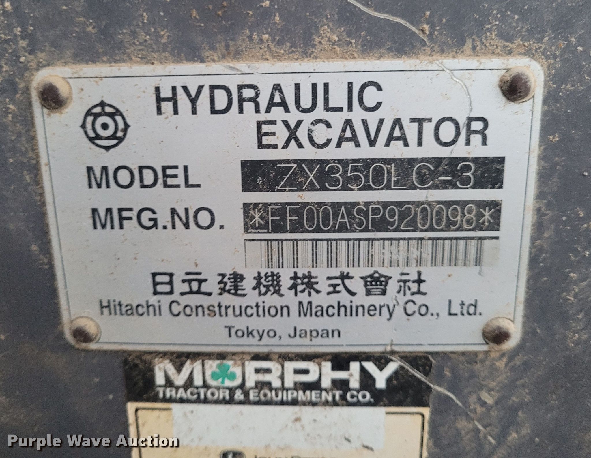Purple Wave is selling a used Hydraulic Excavator in Kansas. This item is a 2007 Hitachi ZX350LC 3 excavator with the following: Hours: 10,257 on meter, Serial: FF00ASP920098