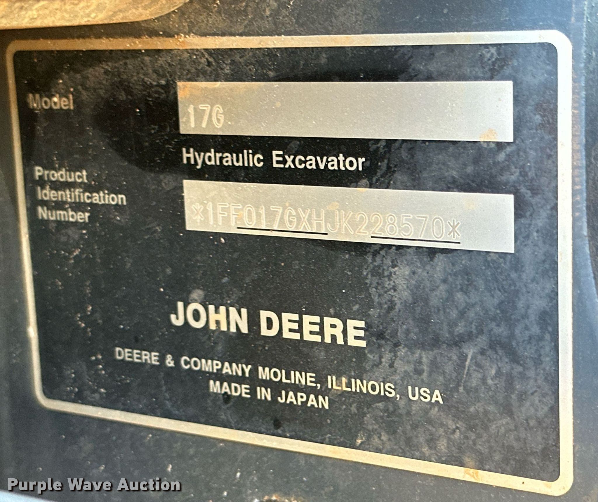 • EI0533 image for item EI0533 2019 John Deere 17G  mini excavator