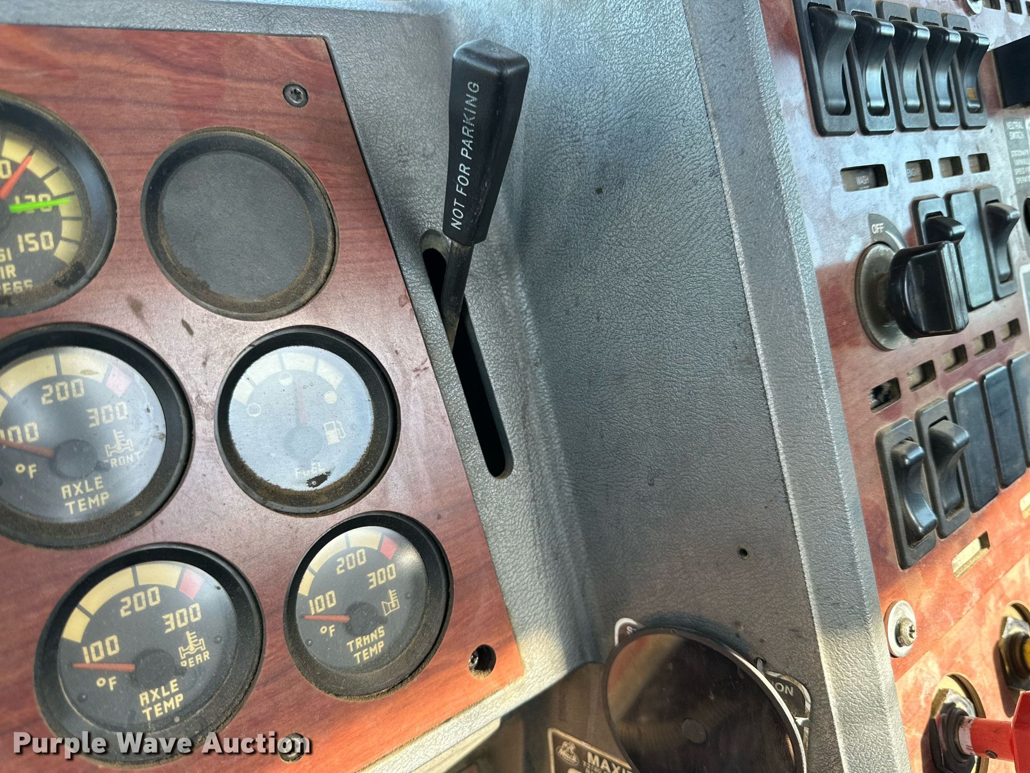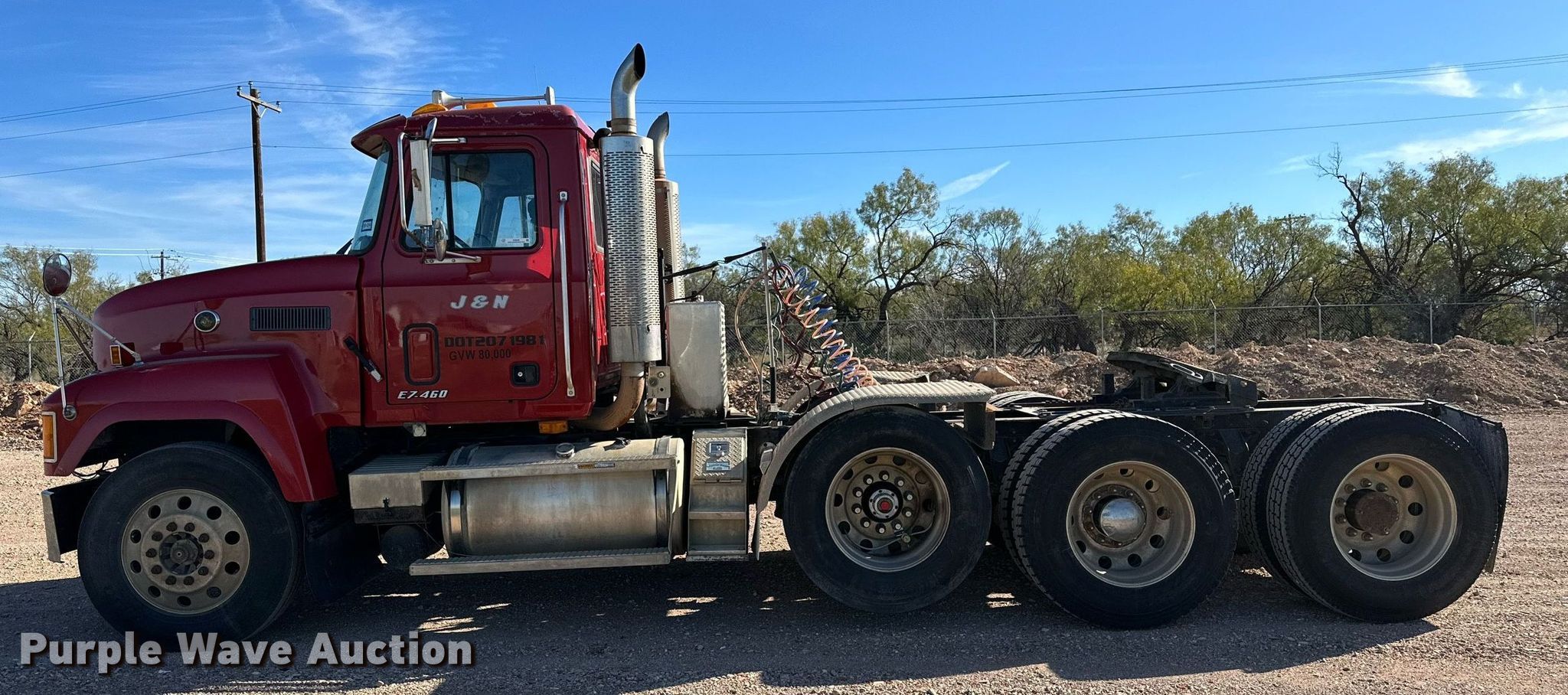 1999 Mack CH613 semi truck. Miles: 554,954 on odometer, Hours: 22,035 on meter, VIN: 1M1AA18Y8XW116541. Engine Displacement: 12.0L, Cylinders: 6, Fuel type: Diesel, Engine brake. Transmission Manual, Speed: 18. Chassis Axles: Triple, Pusher axle, Suspension: Air, Brakes: Air, PTO, Wet kit. Interior AC, Heat, Cruise control, Air ride cab. Features Deck plate: Aluminum, Fifth wheel type: Air operated, Sliding, Fuel tank: Dual. Tires Size: 11R24.5, Lift axle: 11R24.5. Texas title. Title has a lien that will be released following the close of the auction. Title distribution may be delayed up to 30 days from verification of funds. J&N Utilities. 6849 East Highway 80. Abilene, TX 79601