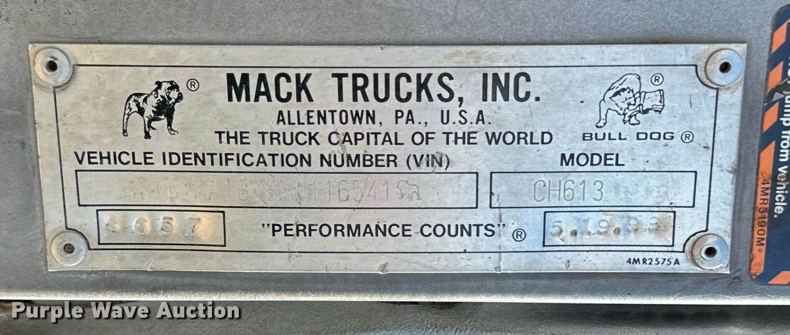 Purple Wave is selling a used Truck Tractor in Texas. This item is a 1999 Mack CH613 semi truck with the following: Miles: 554,954 on odometer, Hours: 22,035 on meter, VIN: 1M1AA18Y8XW116541