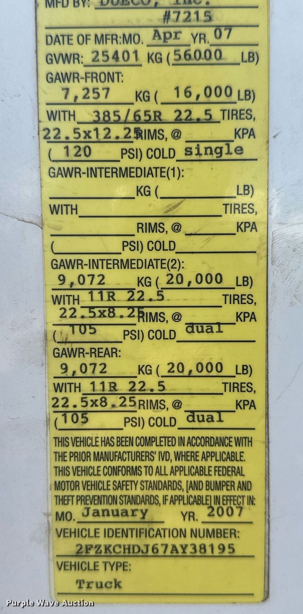 - Front: 385/65R22.5