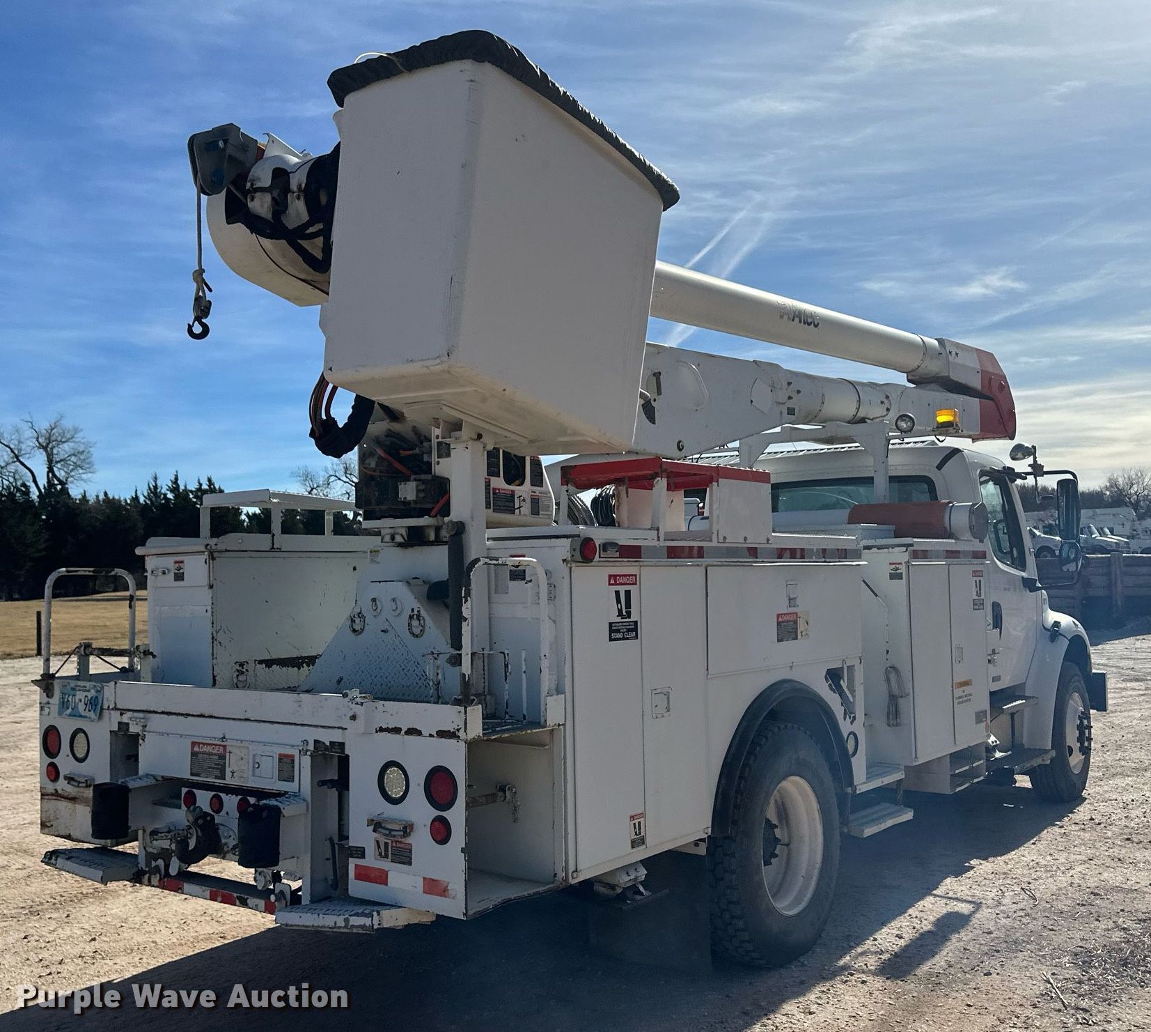 Purple Wave is selling a used Bucket Truck in Oklahoma. This item is a 2005 Freightliner Business Class M2 bucket truck with the following: Miles: 125,718 on odometer, Hours: 14,491 on meter, VIN: 1FVACYDCX5HV58224