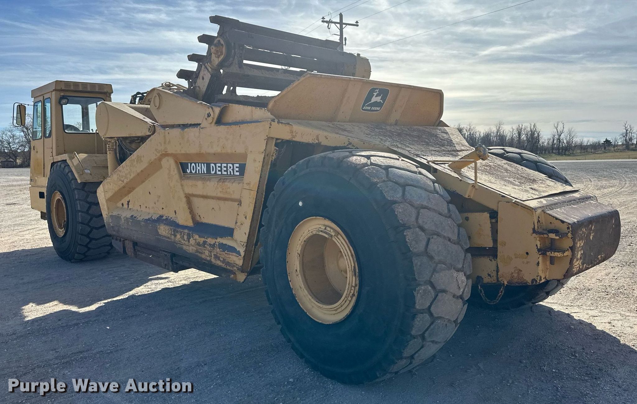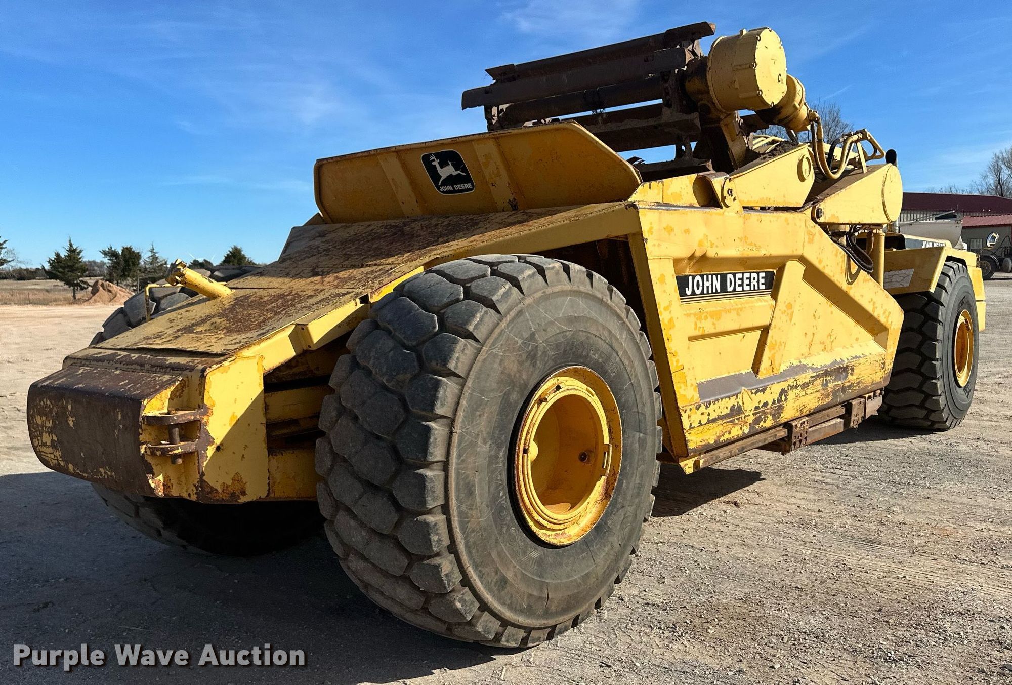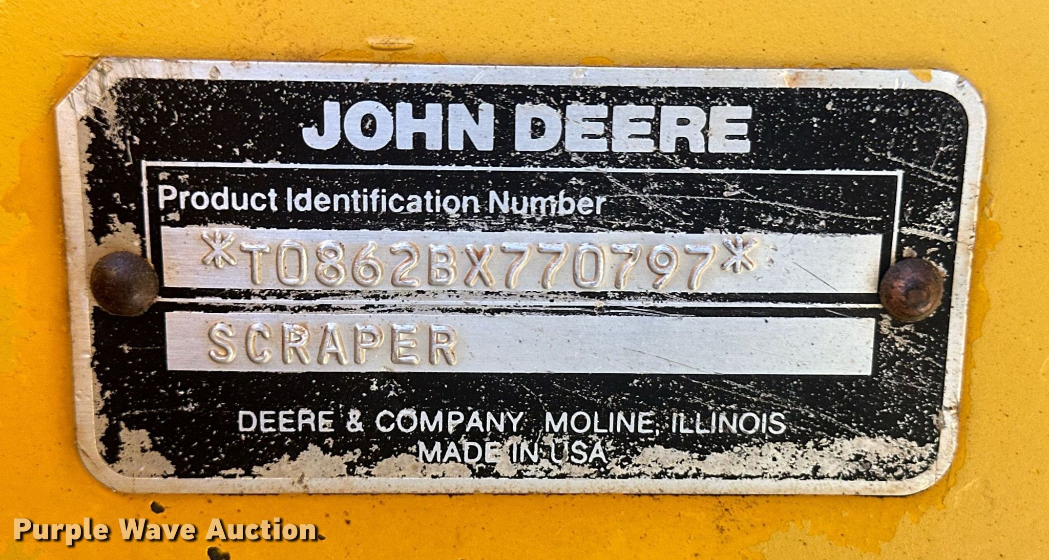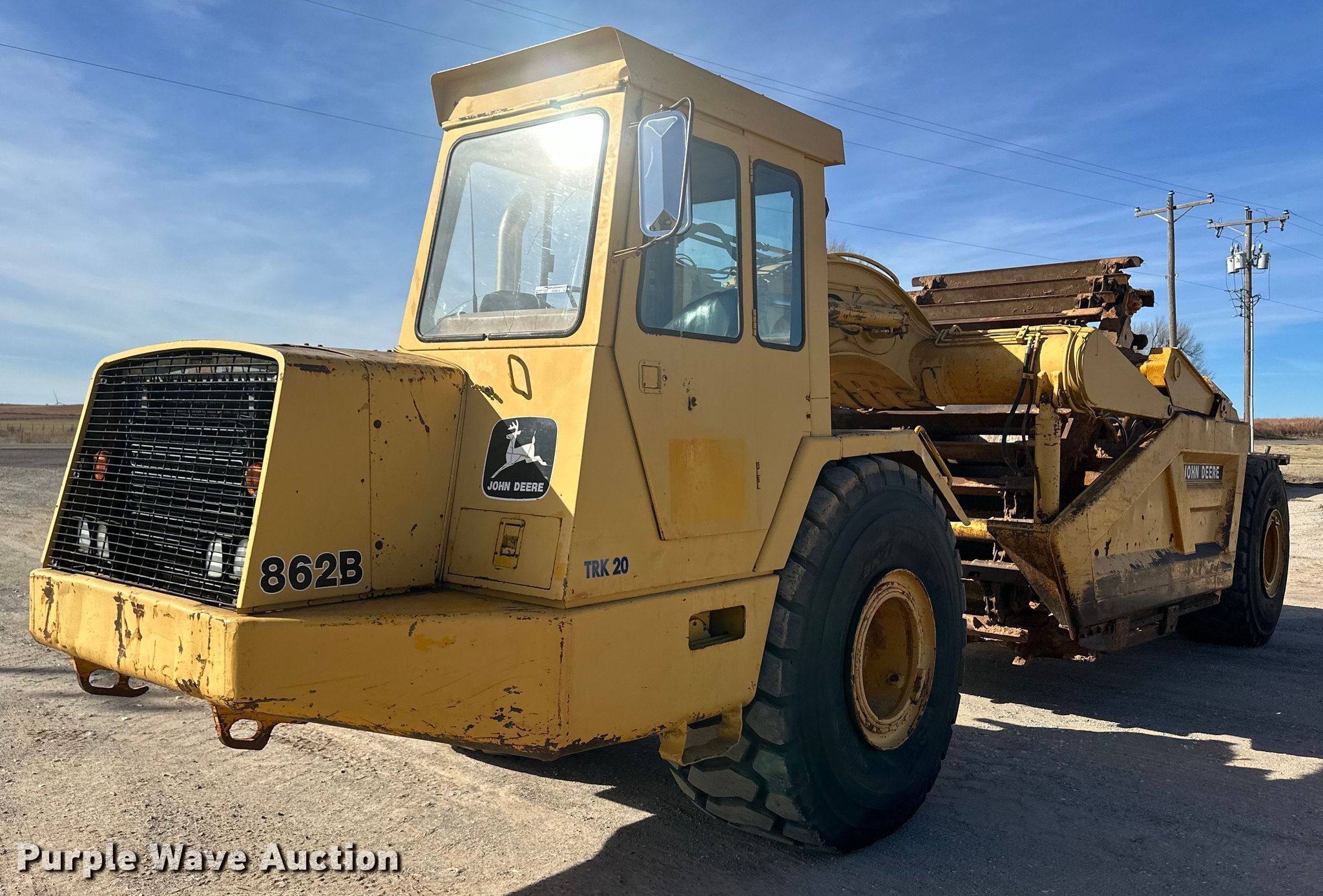 Purple Wave is selling a used Elevating Scraper in Oklahoma. This item is a 1990 John Deere 862B elevating scraper with the following: Hours: 13,075 on meter, Serial: T0862BX770797