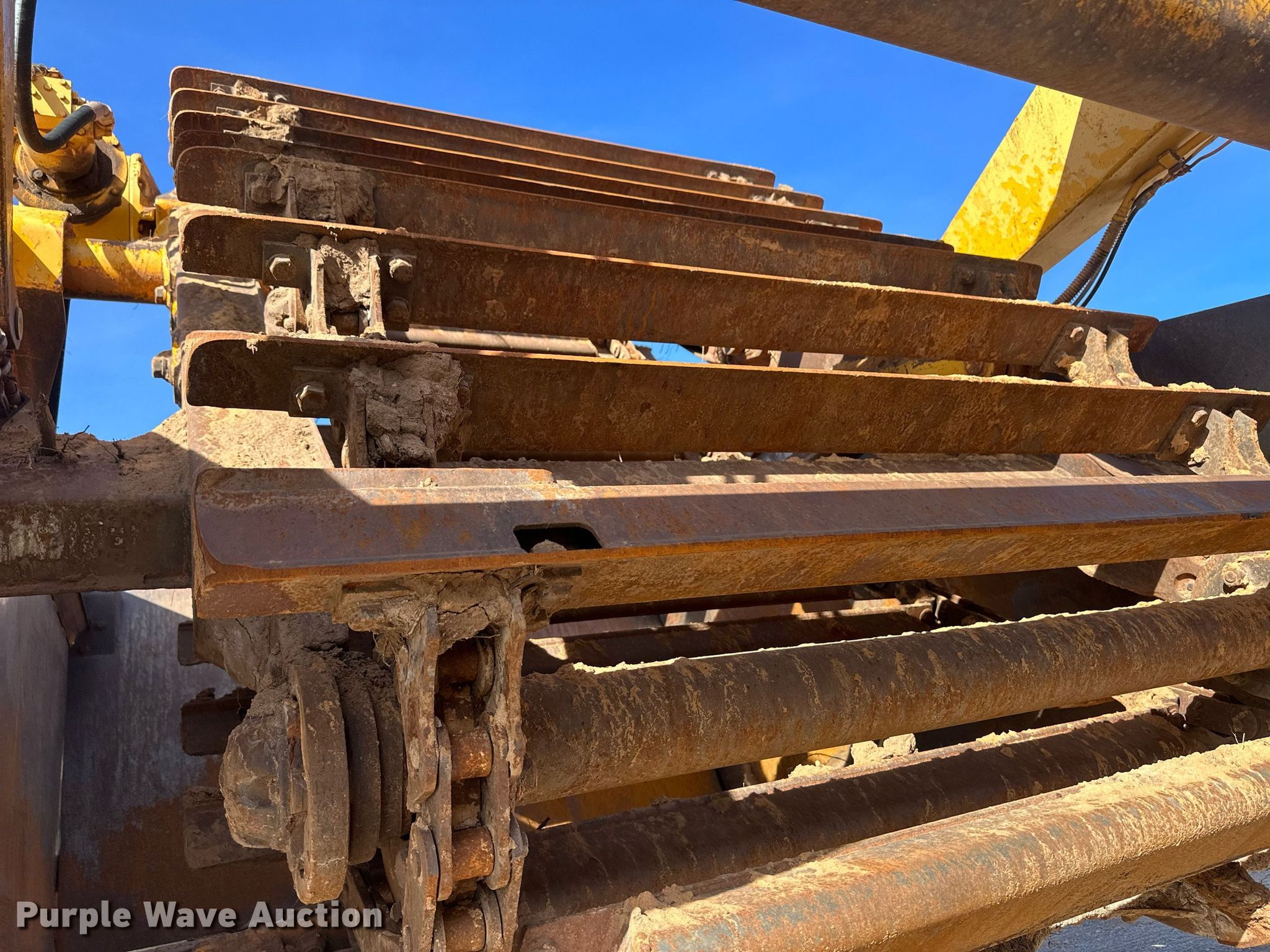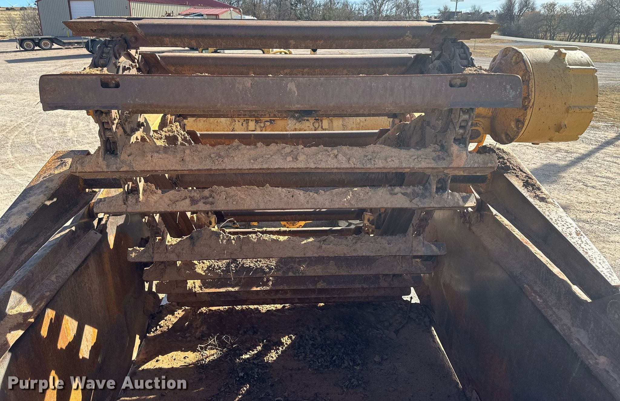 1990 John Deere 862B elevating scraper. Hours: 13,075 on meter, Serial: T0862BX770797. Engine John Deere, Cylinders: 6, Fuel type: Diesel. Transmission Powershift, 6F - 1R. Chassis Brakes: Air. Operators station Enclosed cab, AC, Heat. Features Elevator reverse, Hydraulic lift, Scraper controls: Lever controls No. of controls: 3, Rear push block. Tires Size: 29.5R25. Custom Energy Services. Sharon, OK 73857