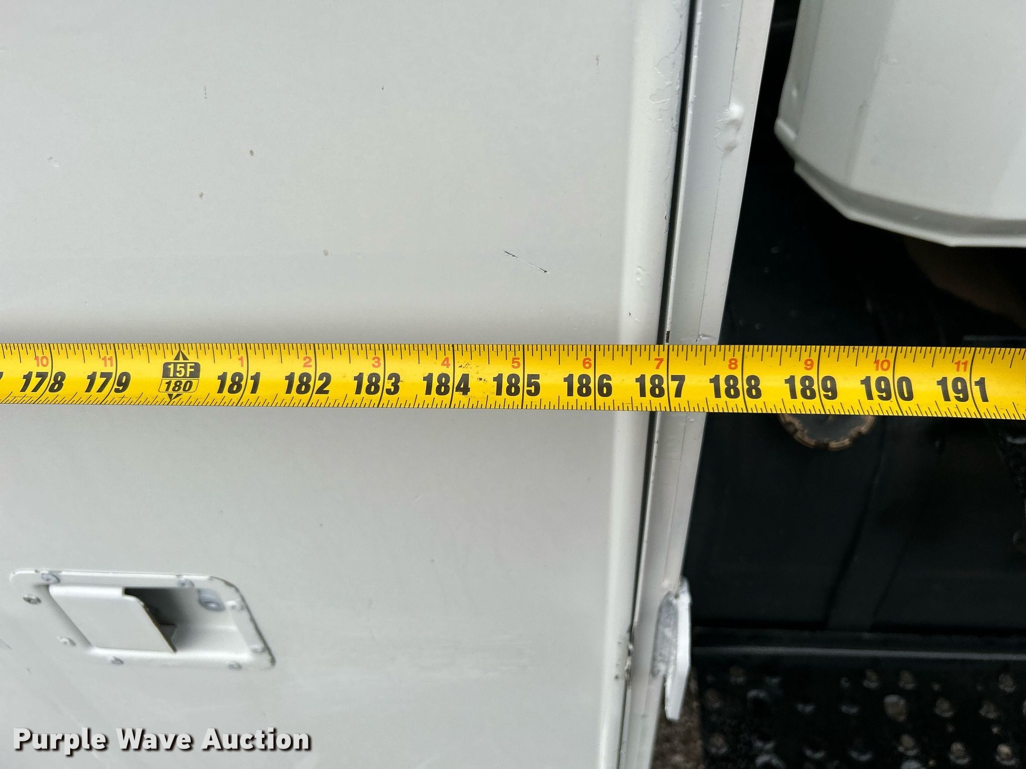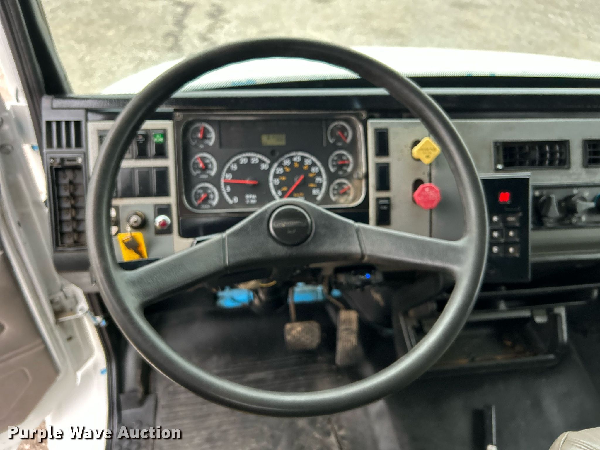 2003 Freightliner FL70 utility / service truck. Miles: 78,323 on odometer, Hours: 6,143 on meter, VIN: 1FVABTBS93DK67864. Engine Cummins ISC, Displacement: 8.3L, Cylinders: 6, Fuel type: Diesel. Transmission Automatic. Chassis Axles: Single, Suspension: Spring, Brakes: Air, GVWR: 33,000 lbs. Interior AC, Heat, Cruise control, Brake controller. Features Bed Dakota Bodies , 11' L x 95" W. Tires Size: 11R22.5. Oklahoma title. Title distribution may be delayed up to 14 days from verification of funds. 15107 North 137th East Avenue. Collinsville, OK 74021