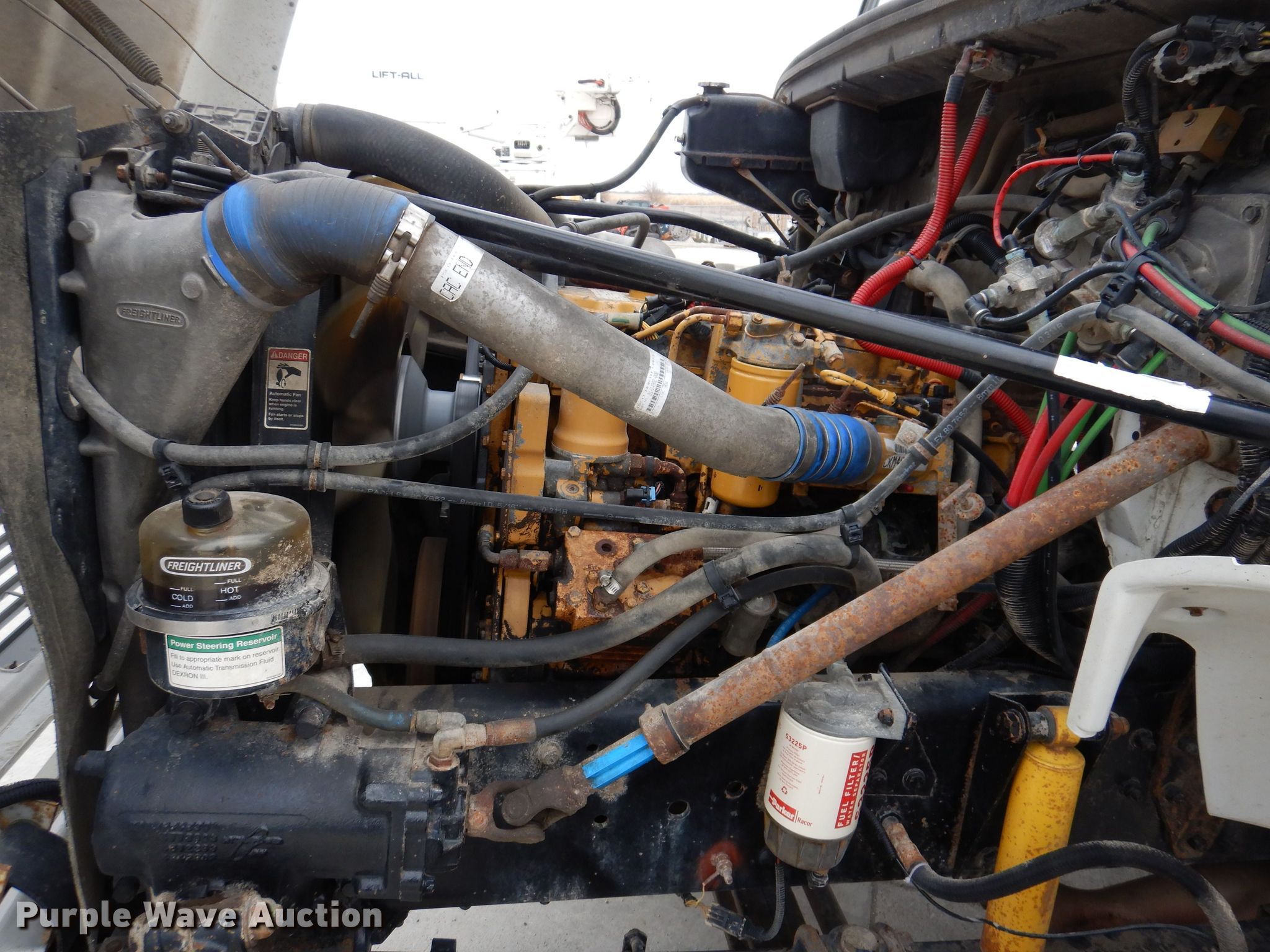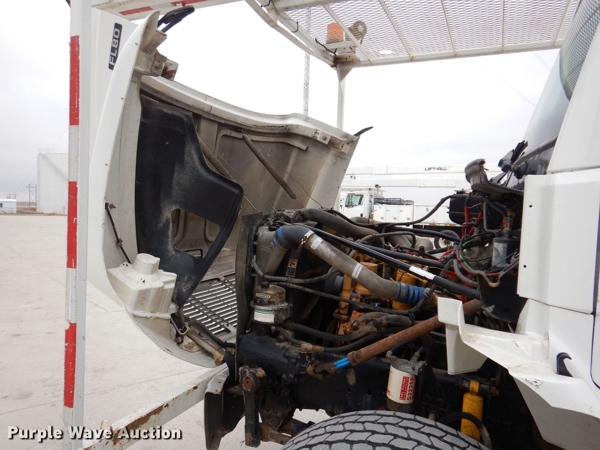 2003 Freightliner FL80 bucket truck. Miles: 146,639 on odometer, VIN: 1FVHBXAK83HJ03716. Engine Caterpillar 3126, Serial: CKM49368, Displacement: 7.2L, Cylinders: 6, Fuel type: Diesel. Transmission Allison, Automatic. Chassis Axles: Tandem, Suspension: Spring, Brakes: Air, PTO, GVWR: 58,000 lbs. Interior AC, Heat, Cruise control, Auxiliary controls, Brake controller. Features Bed Astoria, Serial: 2576-022, 21' 6" L x 96" W, Boom 2002 Lift-All LM-75-2MS, Serial: 7364050275LM, Boom length: 65', Mast height: 10', Maximum lift capacity: 600 lbs, Maximum lift height: 75', Boom type: Articulating, Insulated, Man basket, Boom controls Platform/ basket, Material handler. Tires Front: 385/65R22.5, Rear: 11R22.5. Notes Sub frame missing, Oil leak, Subframe rust damage, failed inspection. Iowa title. Title distribution may be delayed up to 14 days from verification of funds. Central Iowa Power Cooperative. 1632 Rea Road. Creston, IA 50801