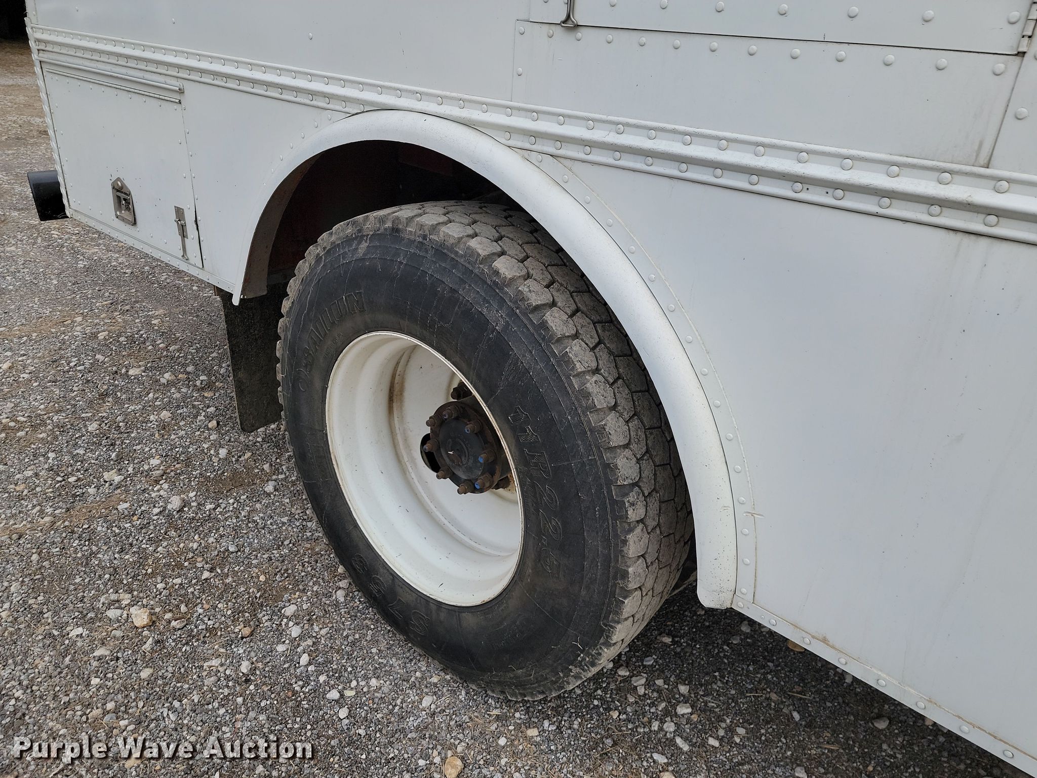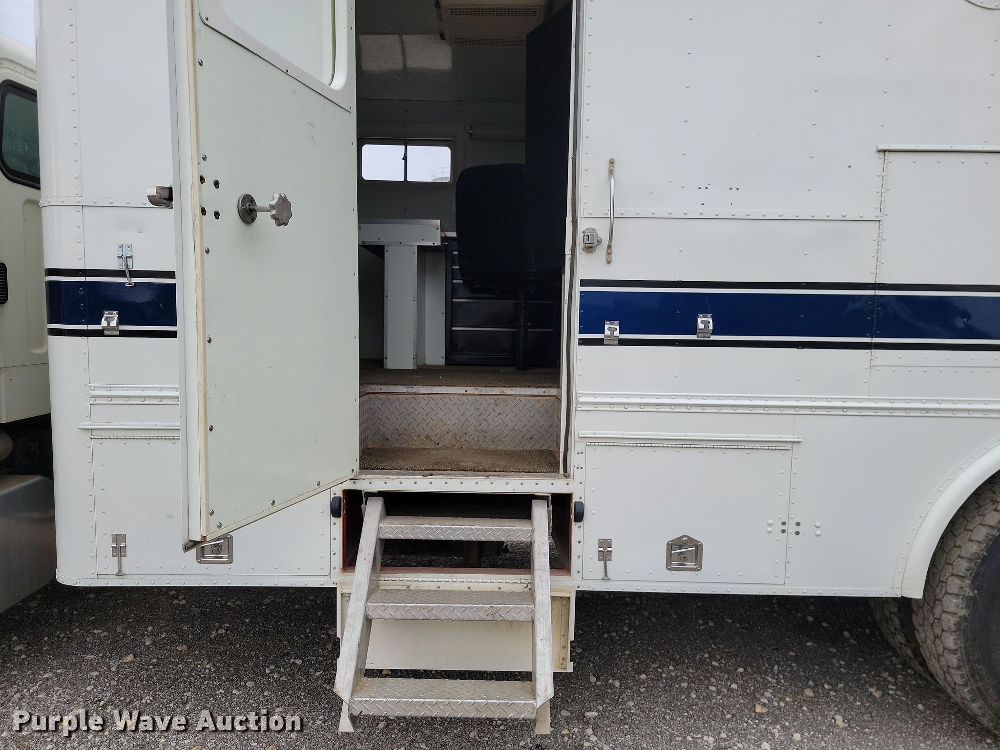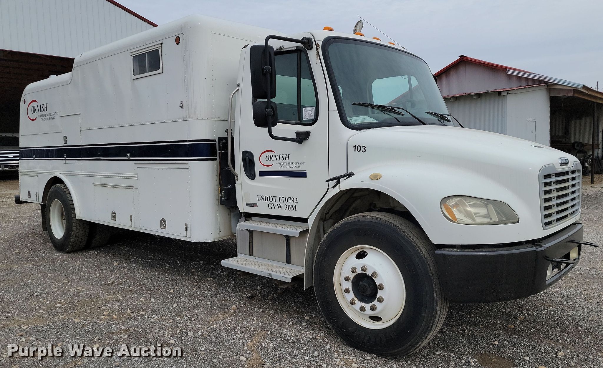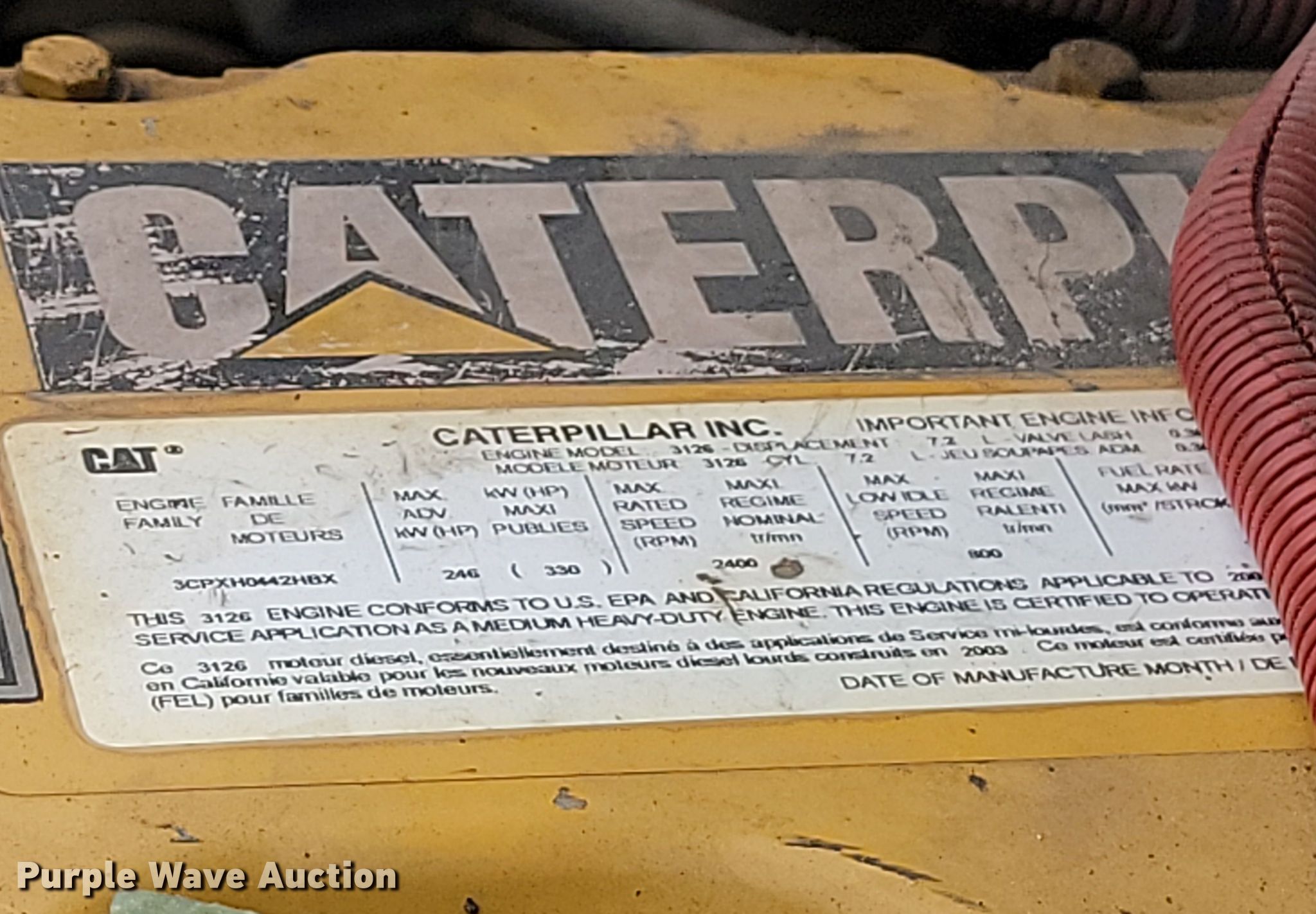 2004 Freightliner M106 pulling truck. Miles: 226,976 on odometer, Hours: 13,550 on meter, VIN: 1FVACXAK24HM20858, Unit #: 103. Engine Catepillar 3126, Serial: 3CPXH0442HBX, Displacement: 7.2L, Cylinders: 6, Fuel type: Diesel, HP: 330, kW: 246. Transmission Manual, Speed: 6. Chassis Axles: Single, Suspension: Spring, Brakes: Air, PTO, GVWR: 33,000 lbs.. Interior AC, heat. Features Bed dimensions: 19' L x 90" W, Monitors included, Coleman Mack AC unit, IMS engineered equipment products, HP laptop and software included, Approx. 10,000' of cable, Onboard generator Hours: 94. Tires Size: 11/R22.5. Kansas title. Title distribution may be delayed up to 14 days from verification of funds. Laymon Wireline. Yates Center, KS 66783