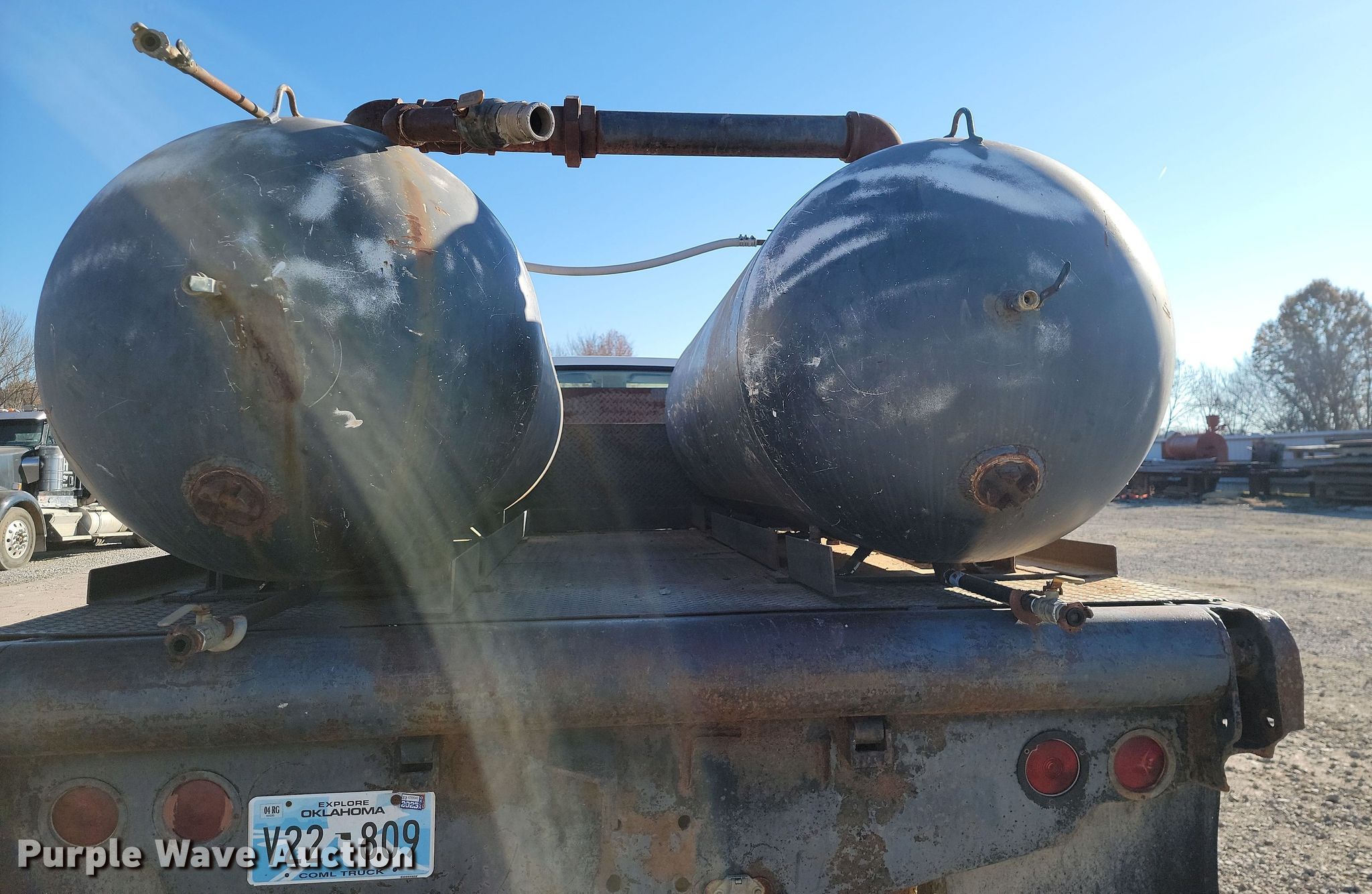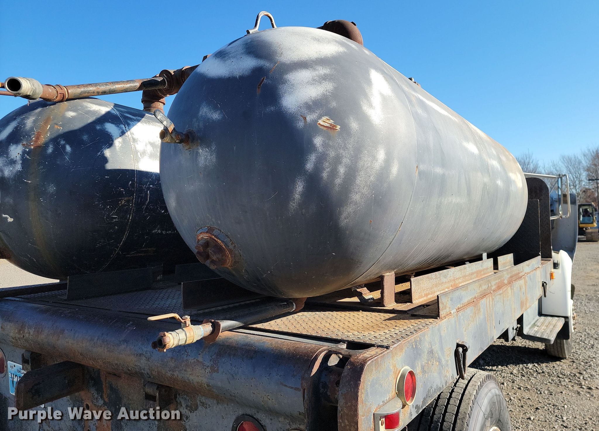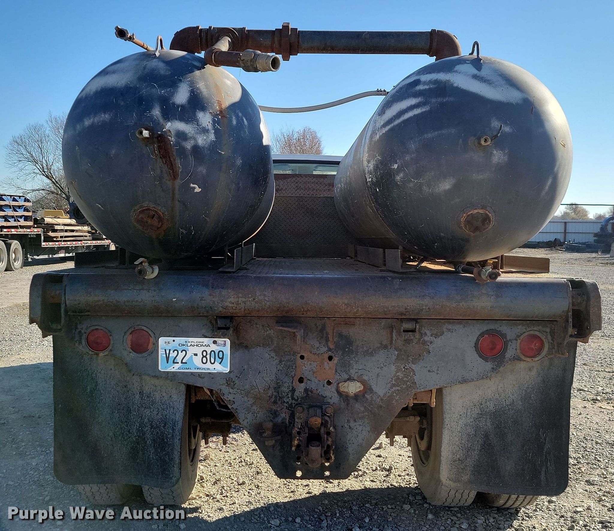 1998 Ford F700 flatbed truck. Miles: 164,045 on odometer, VIN: 1FDNF70J7WVA00381. Engine Ford, Displacement: 7.0L, Cylinders: 8, Fuel type: Gas. Transmission Automatic. Chassis Suspension: Spring over walking beam, Brakes: Air, GVWR: 26,000 lbs., Wheelbase: 255". Features Flatbed 12' L x 93" W, (2) pressurized water tanks Capacity: approx.1000 gallons. Tires Size: 10R22.5. Oklahoma title. Title distribution may be delayed up to 14 days from verification of funds. H&H Road Boring Company, LLC. 14191 East 580 Road. Inola, OK 74036