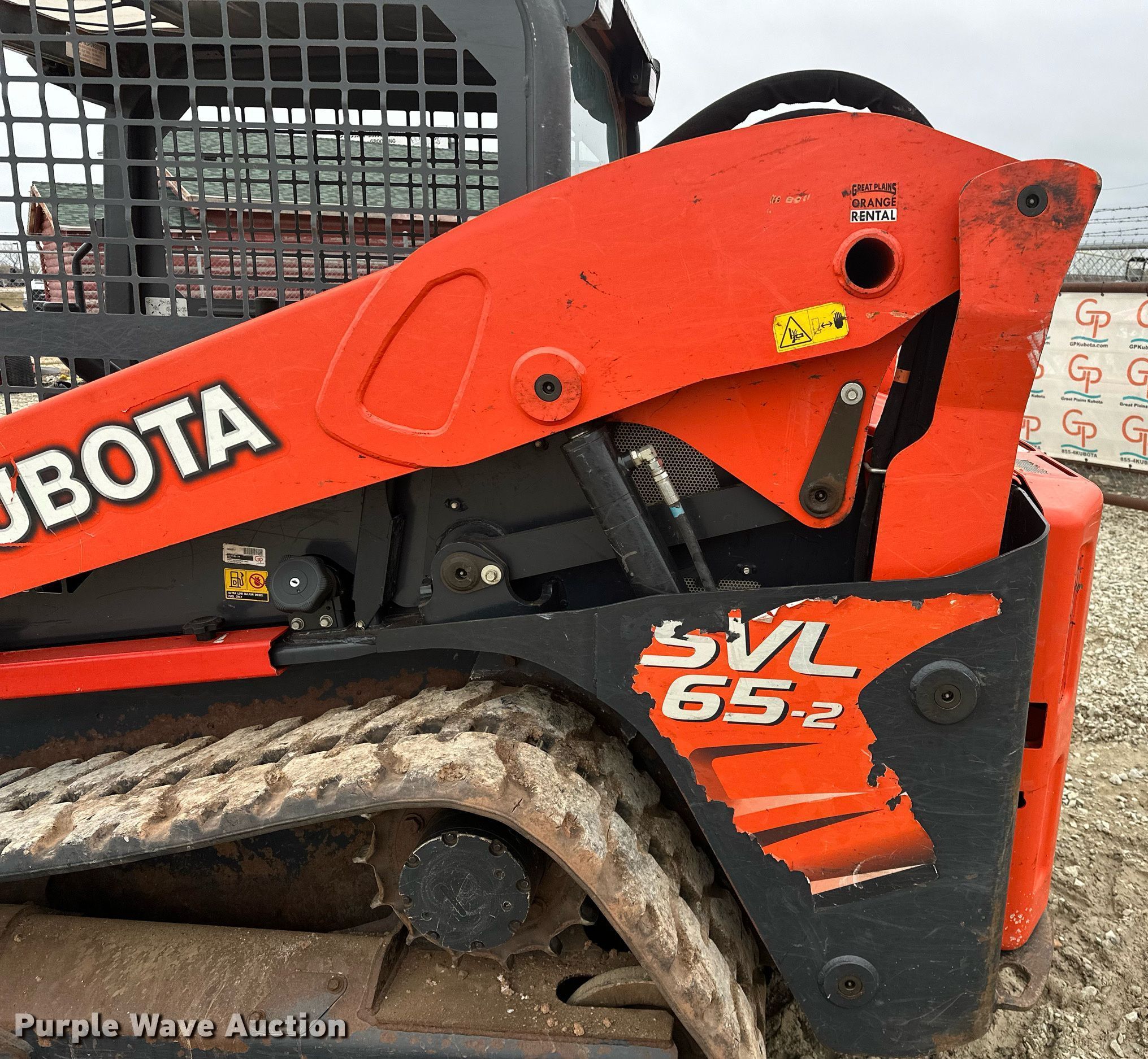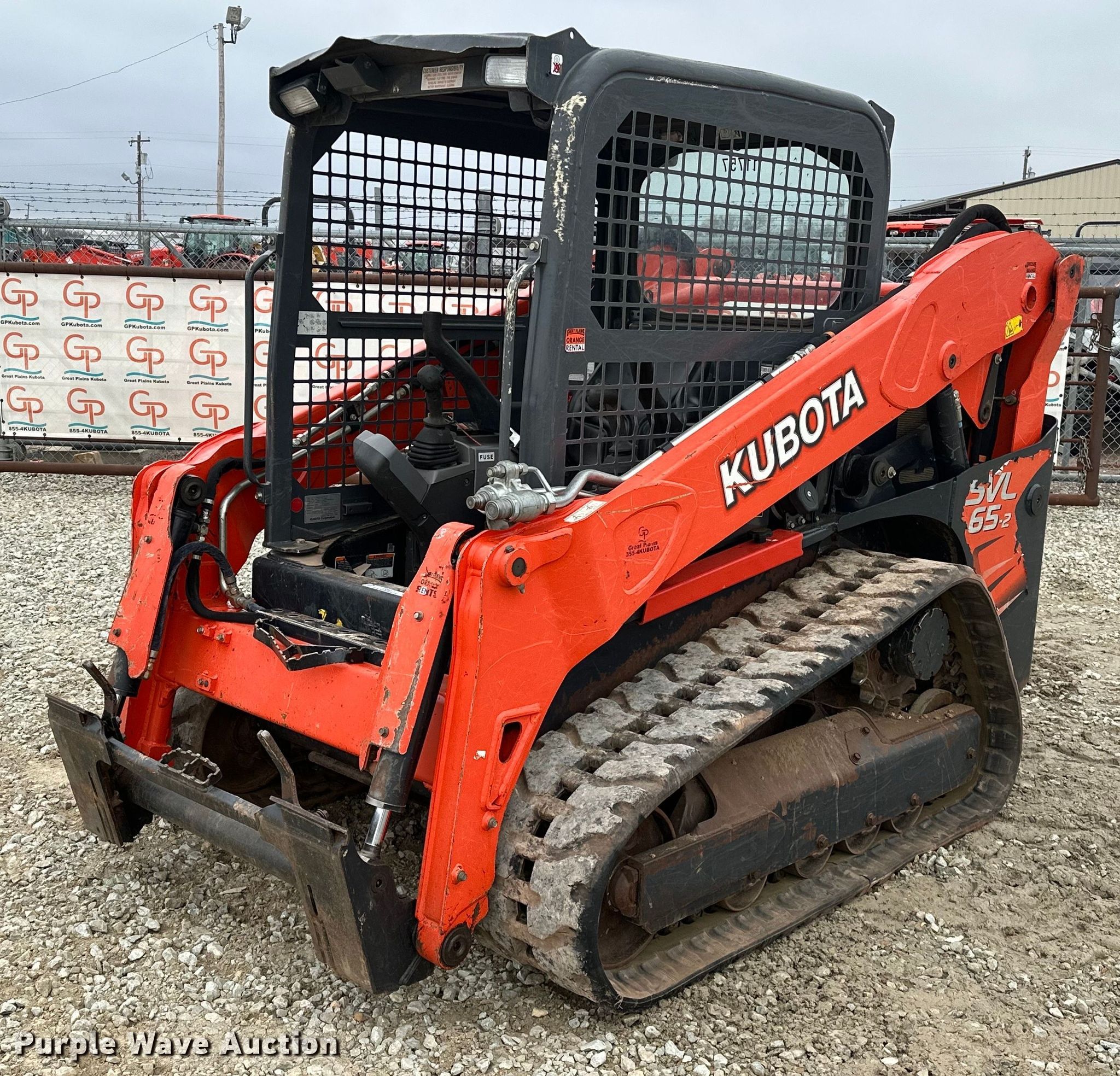 Purple Wave is selling a used Tracked Skid Steer Loader in Oklahoma. This item is a 2019 Kubota SVL65-2 tracked skid steer loader with the following: Serial: KBCC0651VK1G11757, Hours: 1,489 on meter