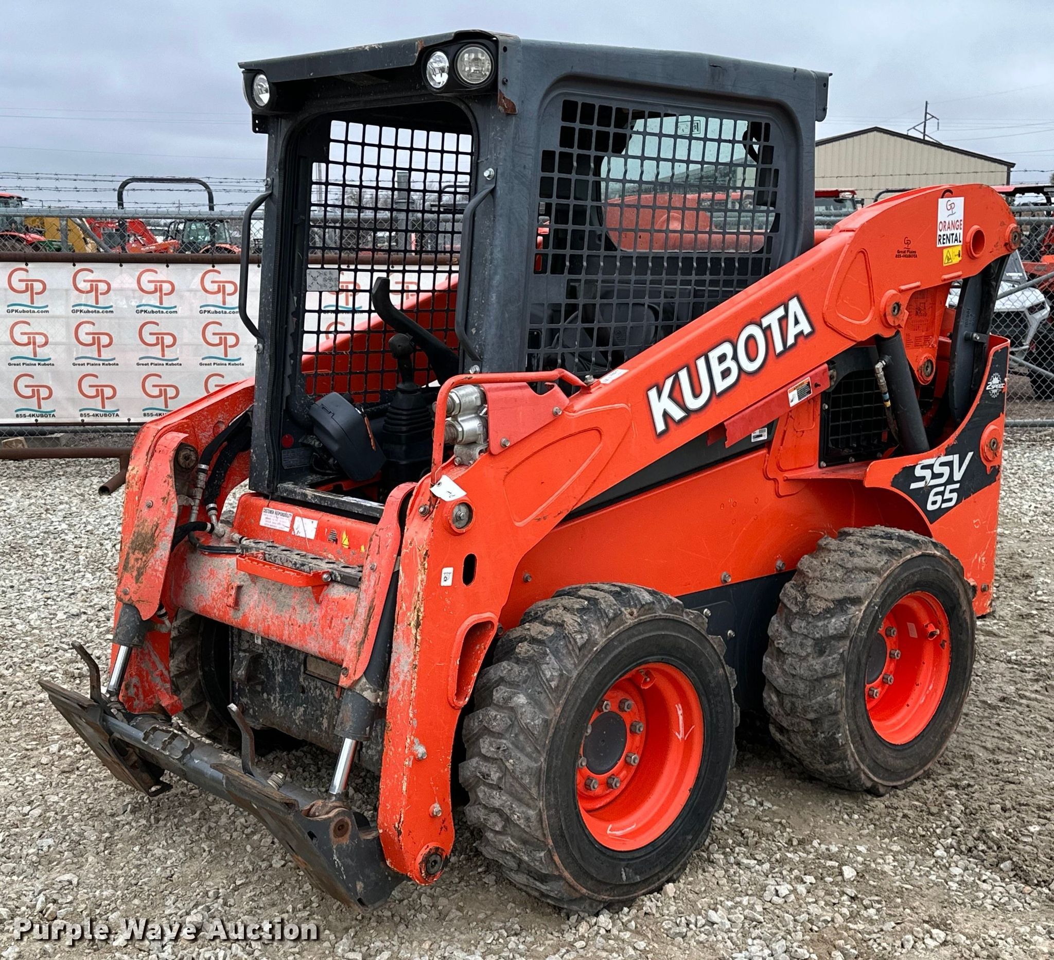 Purple Wave is selling a used Skid Steer Loader in Oklahoma. This item is a 2017 Kubota SSV65 skid steer loader with the following: Hours: 1,012 on meter, Serial: 13890