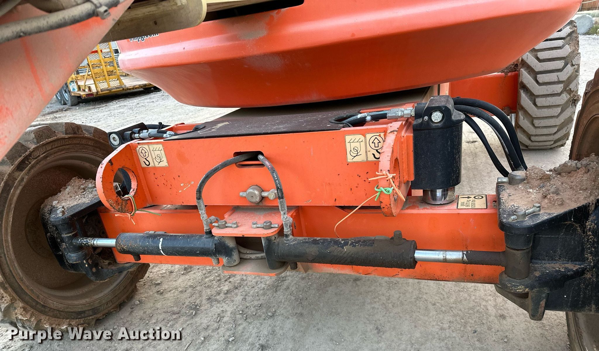 2014 JLG 600AJ boom lift. Hours: 2,908 on meter, Miles or hours may vary, unit still in use, Serial: 0300185144. Engine Cylinders: 4, Fuel type: Diesel. Chassis Four wheel drive. Features Articulating boom, Rough terrain, Maximum lift capacity: 750 lbs, Maximum reach length: 39' 9", Maximum lift height: 60', Platform: 96" L x 36" W, AC power outlet, Controls: Platform, Ground, Platform rotation: Hydraulic, Safety alarm. Tires Tire size: 355/55D625, Foam filled. Tulsa, OK 74132
