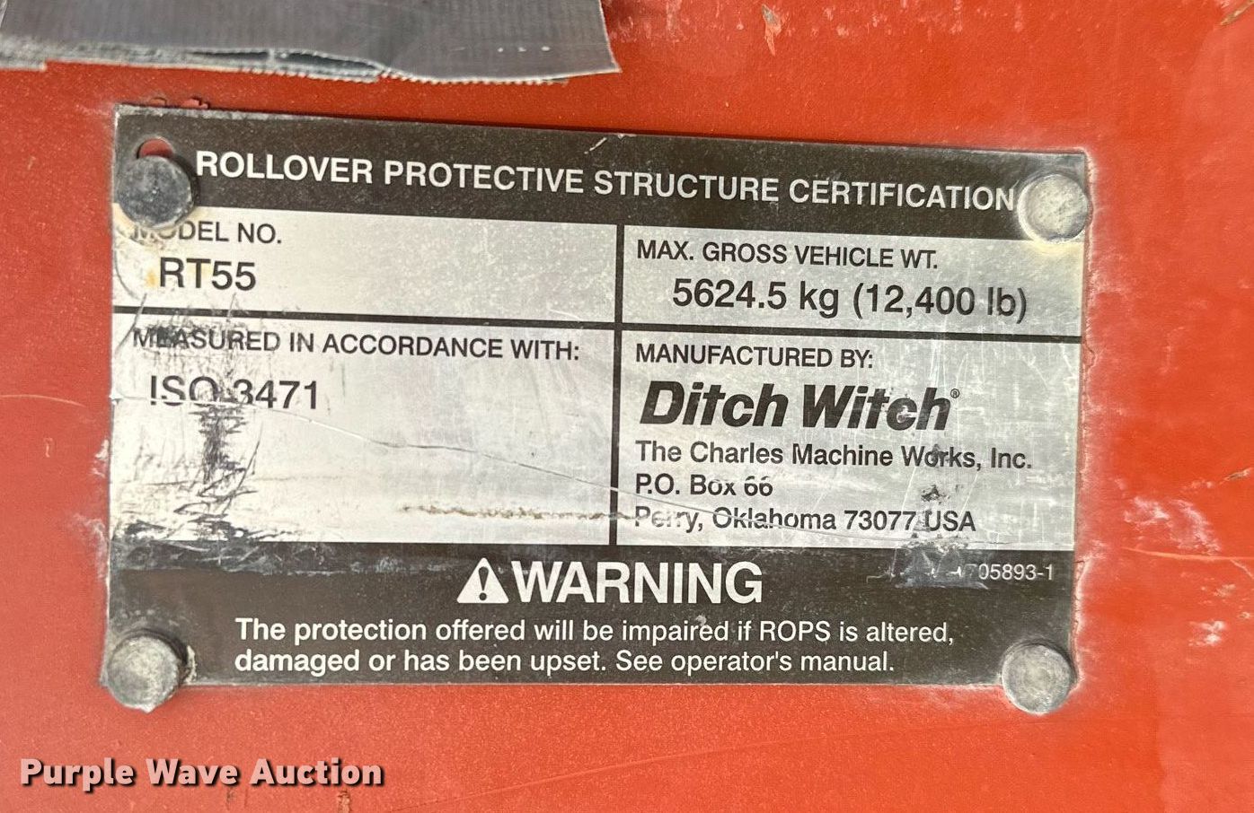 Purple Wave is selling a used Trencher or Rock Saw in Oklahoma. This item is a 2015 Ditch Witch RT55 rock saw with the following: Hours: 683 on meter, Serial: CMWRT55HPF0000738