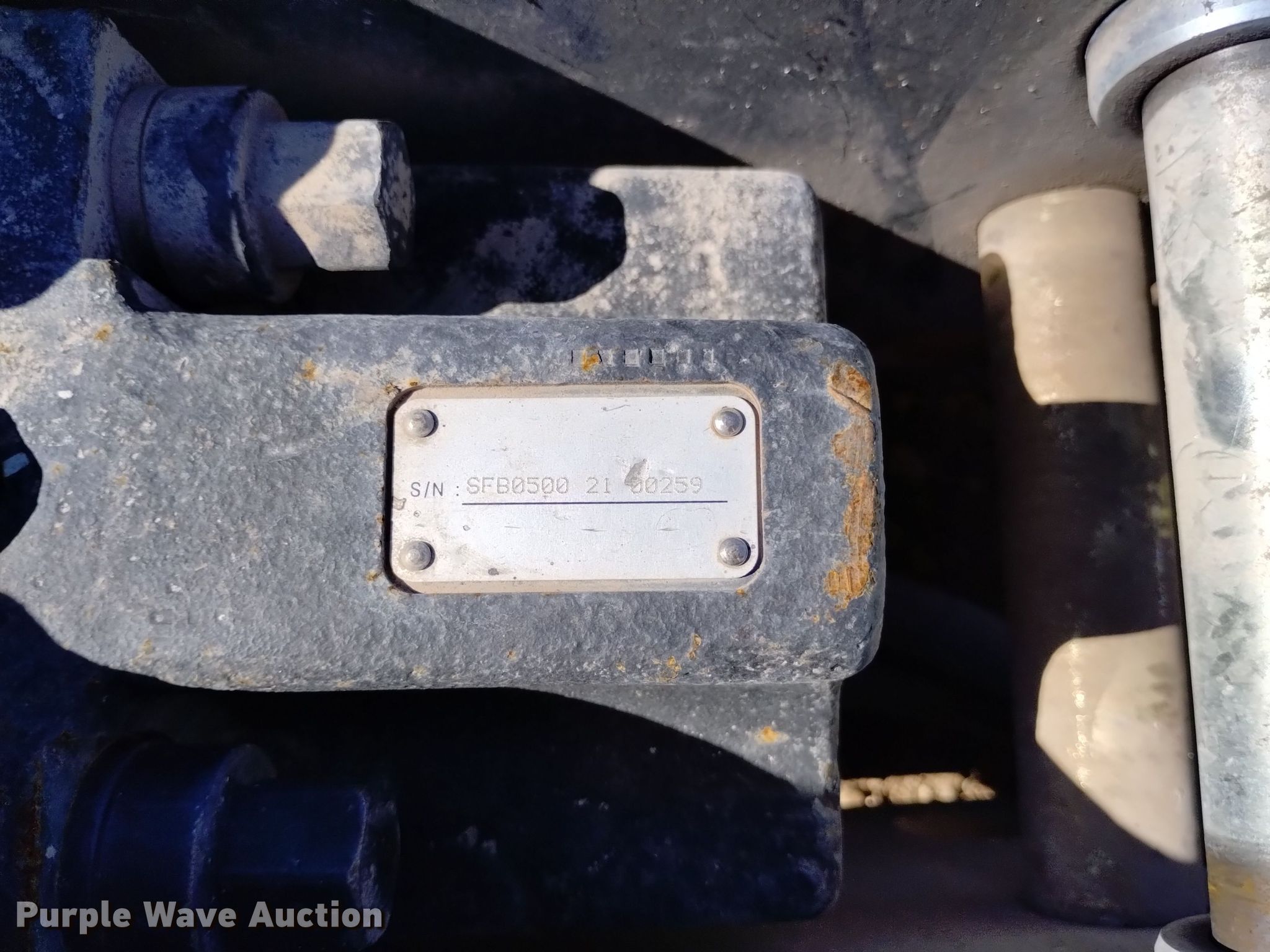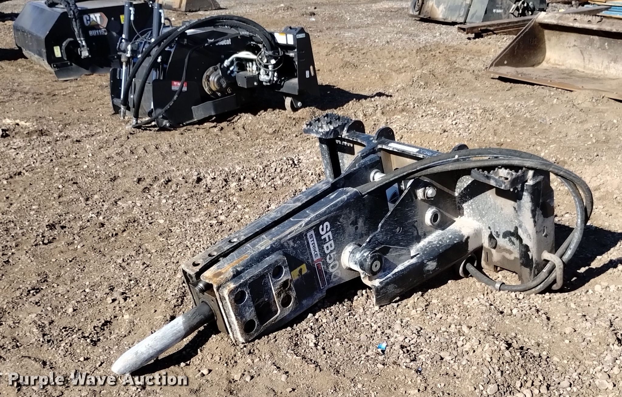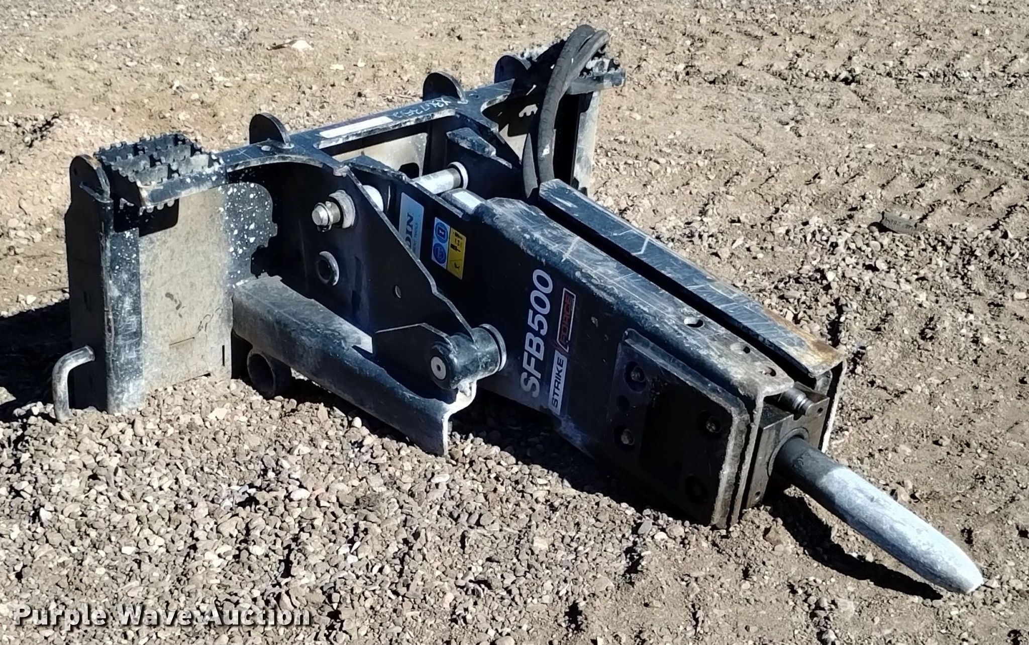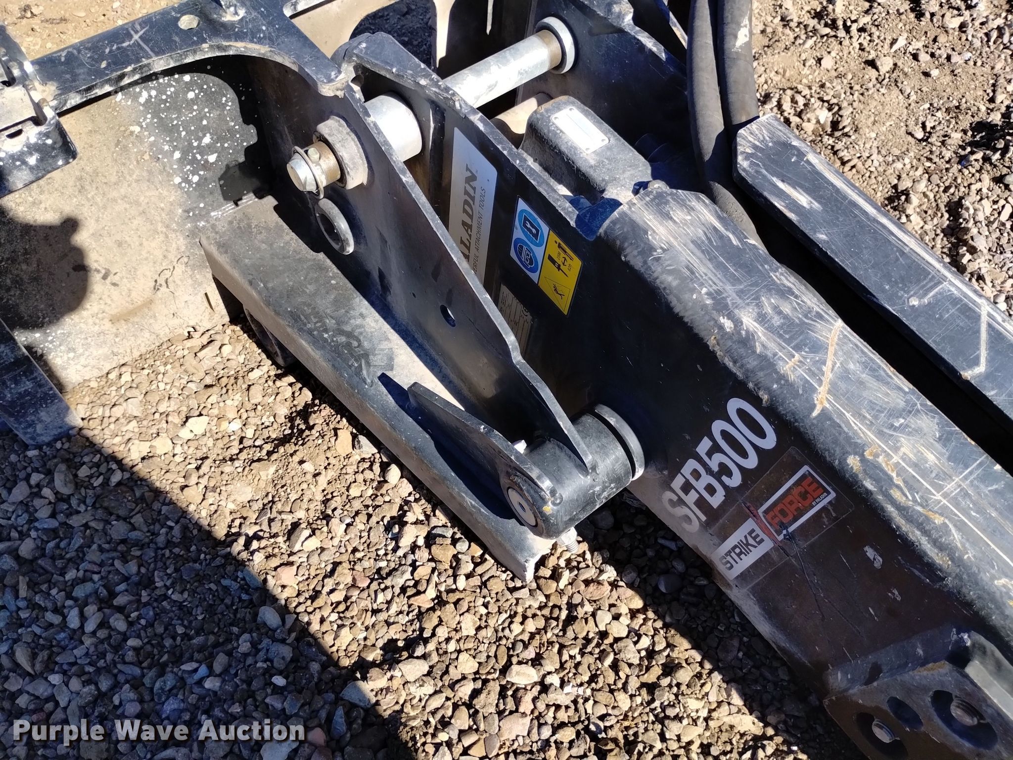 Purple Wave is selling a used Skid Steer Attach. in Arizona. This item is a Paladin SFB500 skid steer breaker with the following: Serial: SFB5002100259, 14" L tool bit, Diameter: 2.63", 10 to 22gpm oil flow required