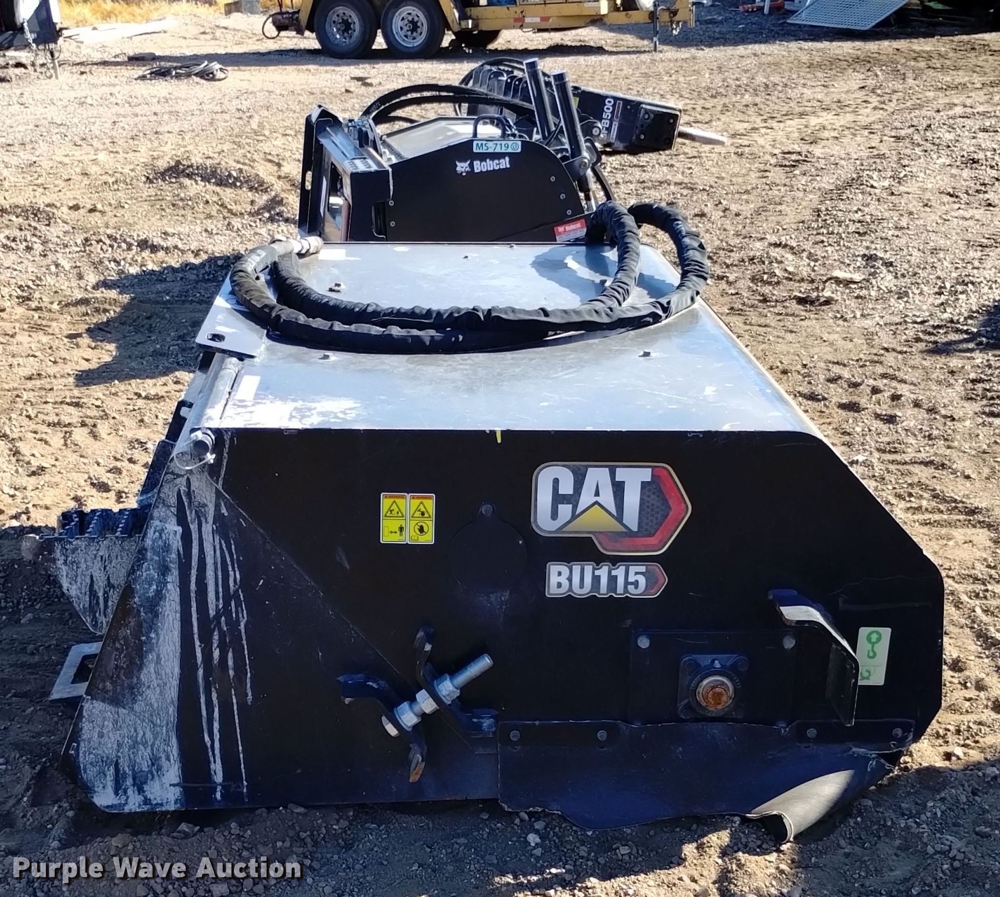 Purple Wave is selling a used Skid Steer Attach. in Arizona. This item is a 2021 Caterpillar BU115 skid steer sweeper with the following: Serial: P6300237, Width: 63"