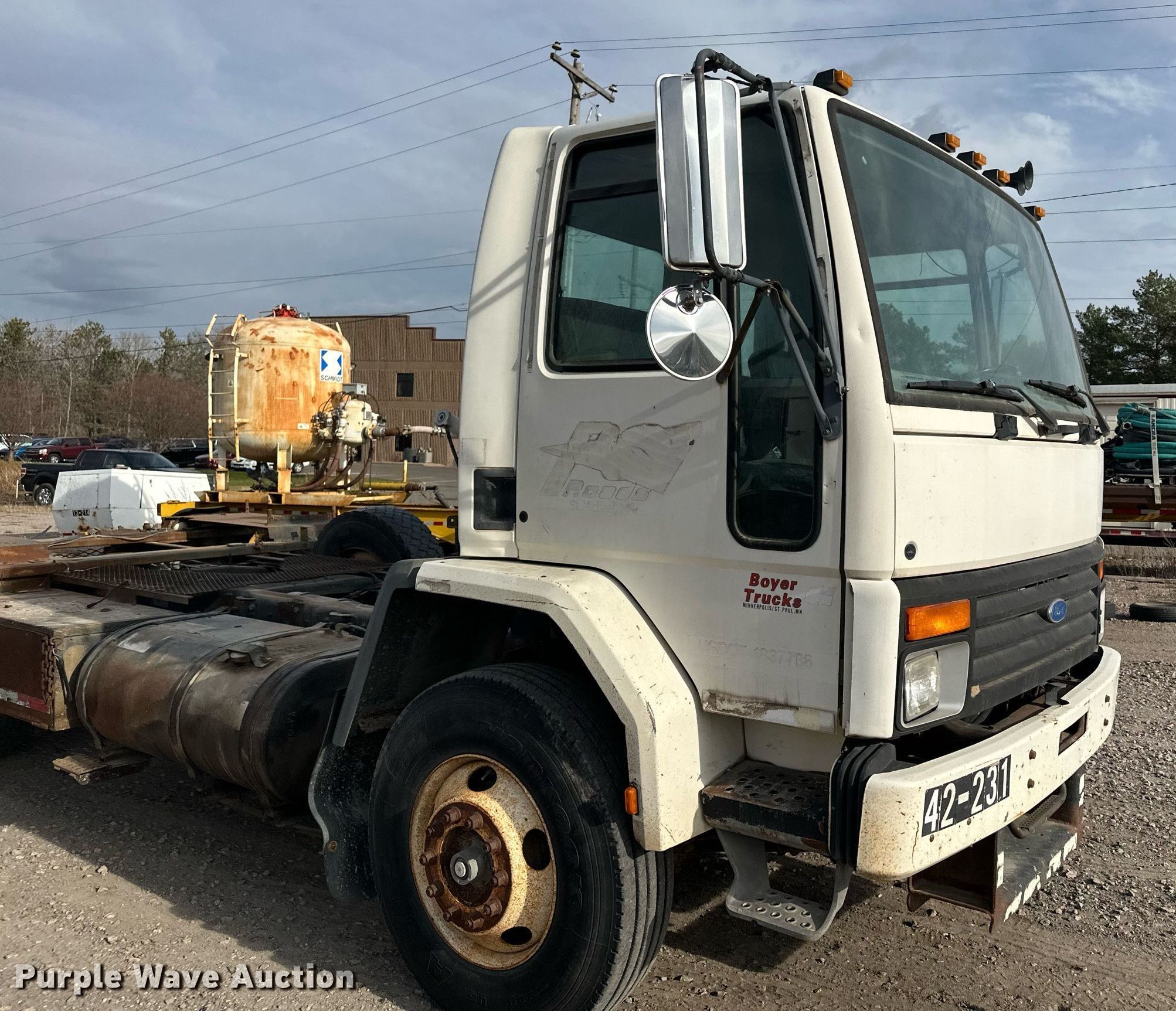 Purple Wave is selling a used Truck Chassis in Minnesota. This item is a 1996 Ford CF8000 truck cab and chassis with the following: Miles: 76,143 on odometer, VIN: 1FDXH81E2TVA30555, Unit #: 42-231