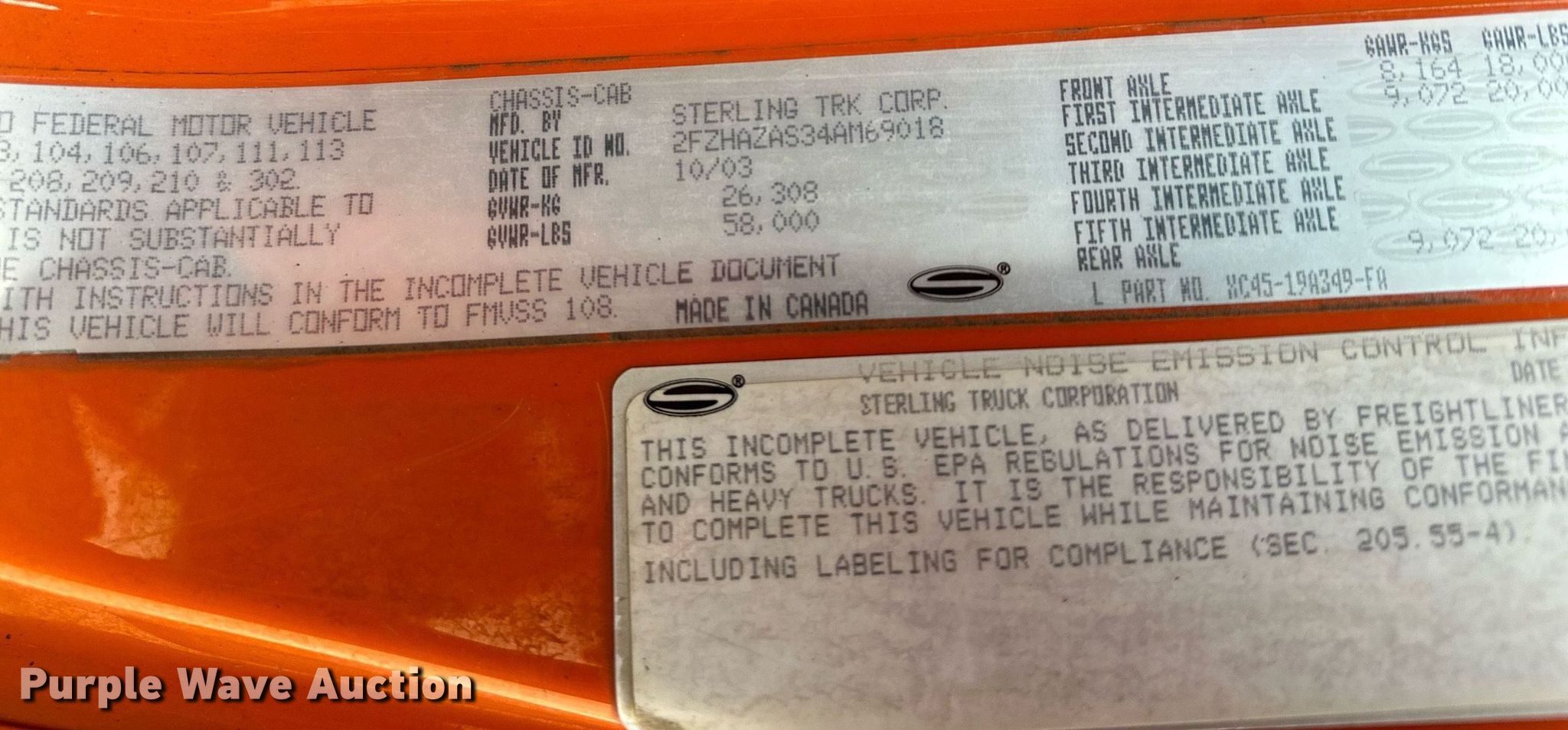 Purple Wave is selling a used Construction Dump Truck in Minnesota. This item is a 2004 Sterling L9500 dump truck with the following: Miles: 201,486 on odometer, Hours: 9,701 on meter, VIN: 2FZHAZAS34AM69018