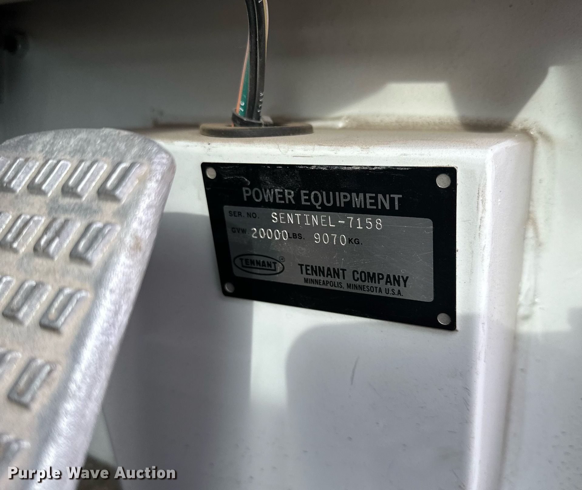 Purple Wave is selling a used Sweeper in Minnesota. This item is a Tennant Sentinel sweeper with the following: Miles: 8,052 on odometer, Hours: 2,013 on meter, Serial: 7158