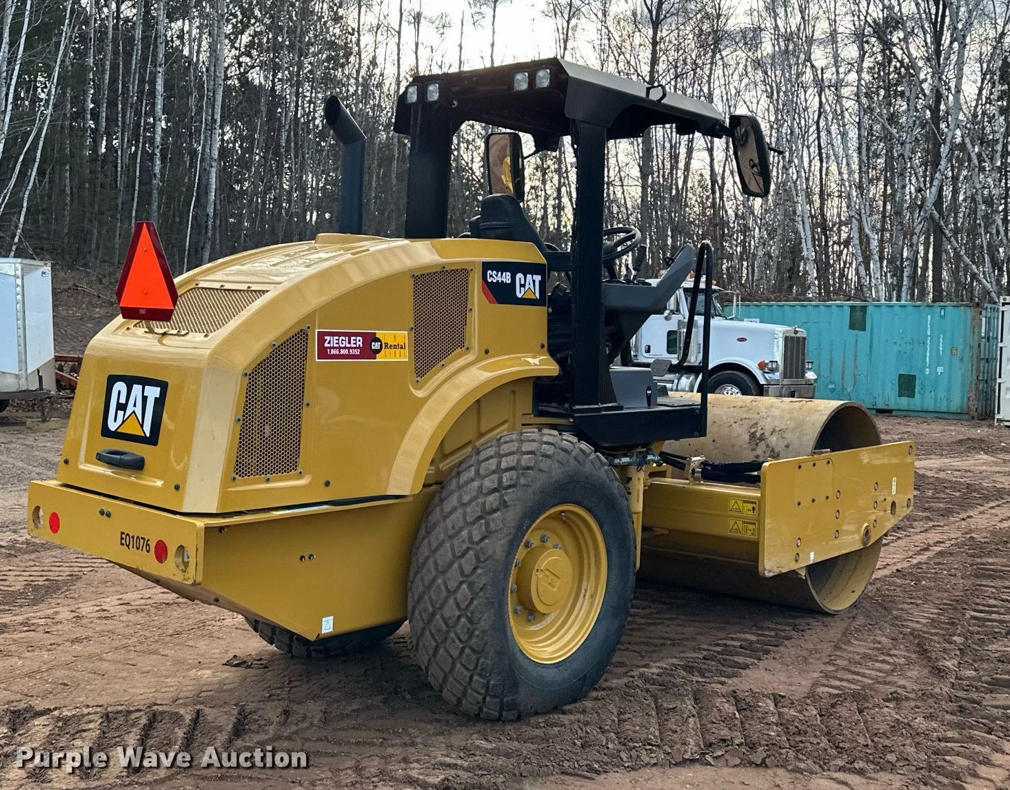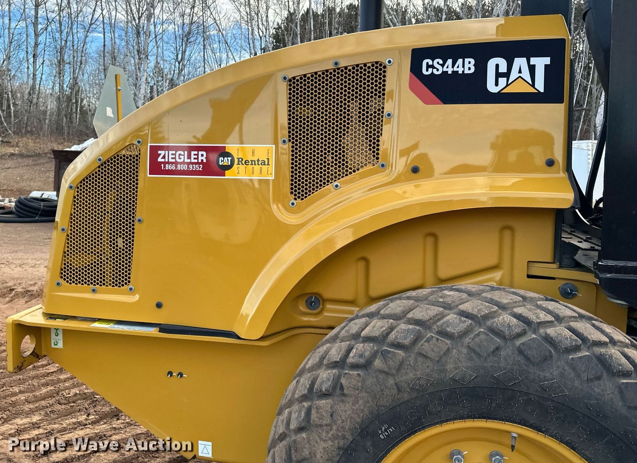 Purple Wave is selling a used Single Drum Roller Compactor in Minnesota. This item is a 2021 Caterpillar CS44B single drum vibratory roller with the following: Hours: 496 on meter, Serial: CATCS44BH4G300556