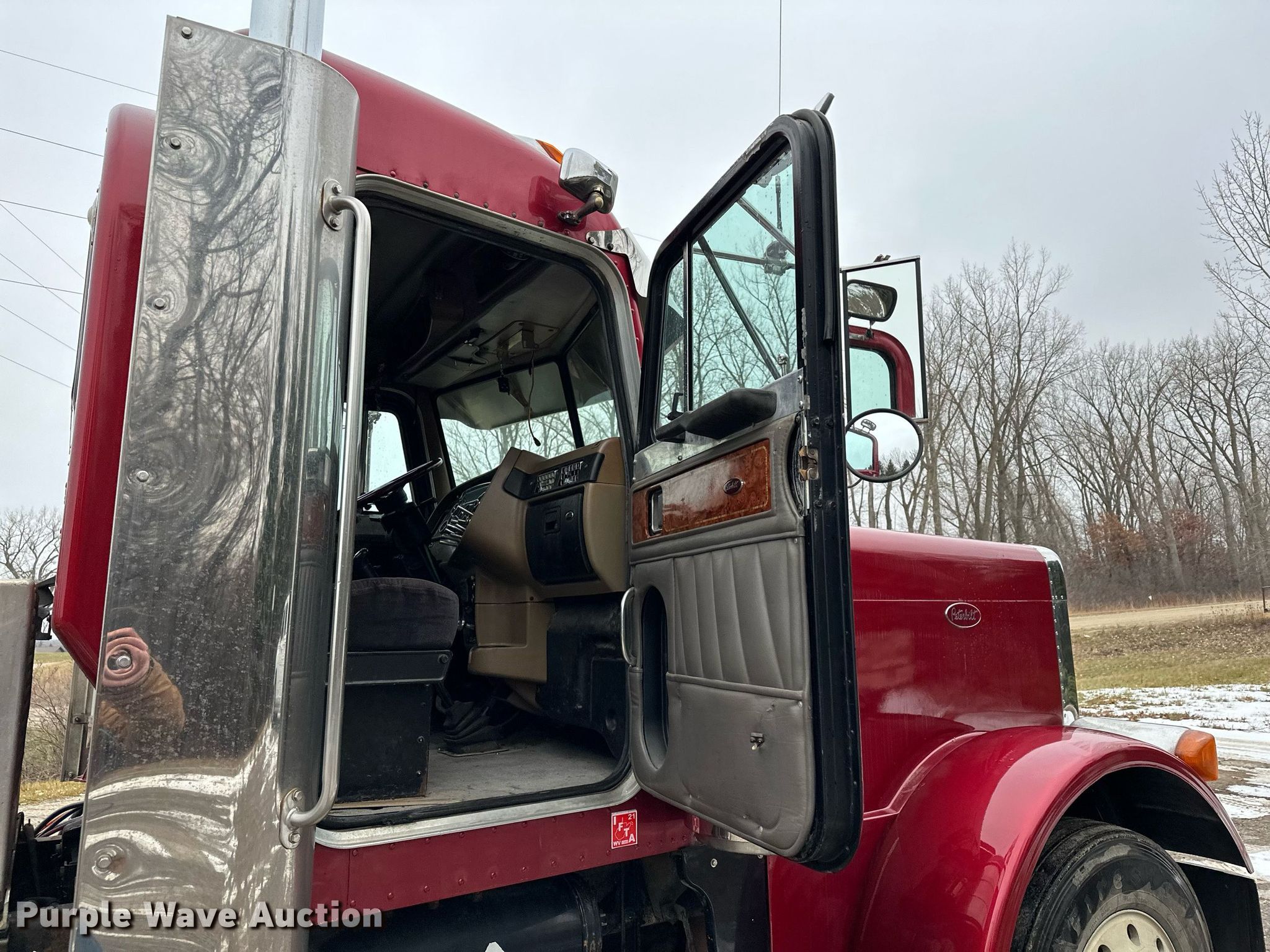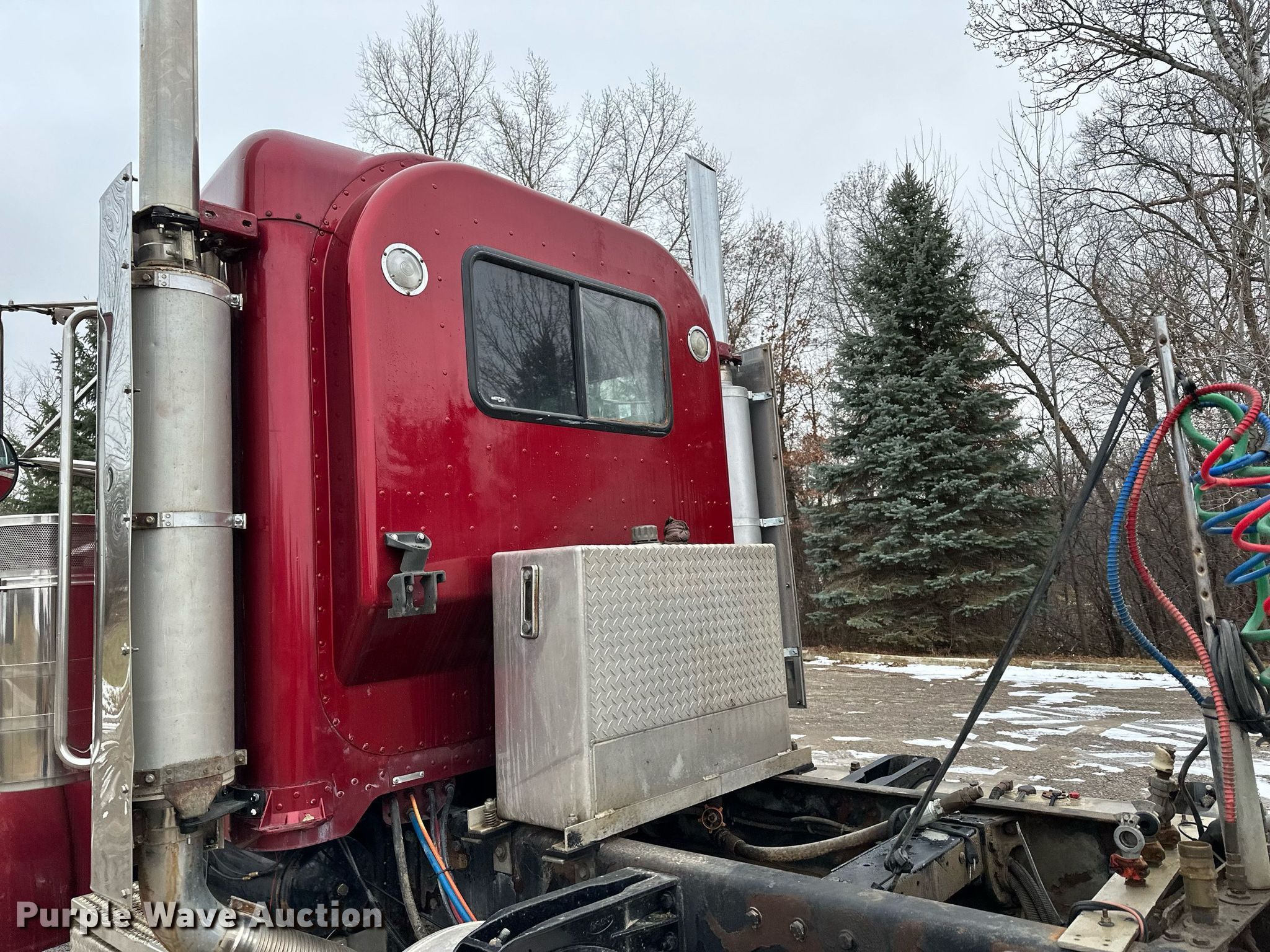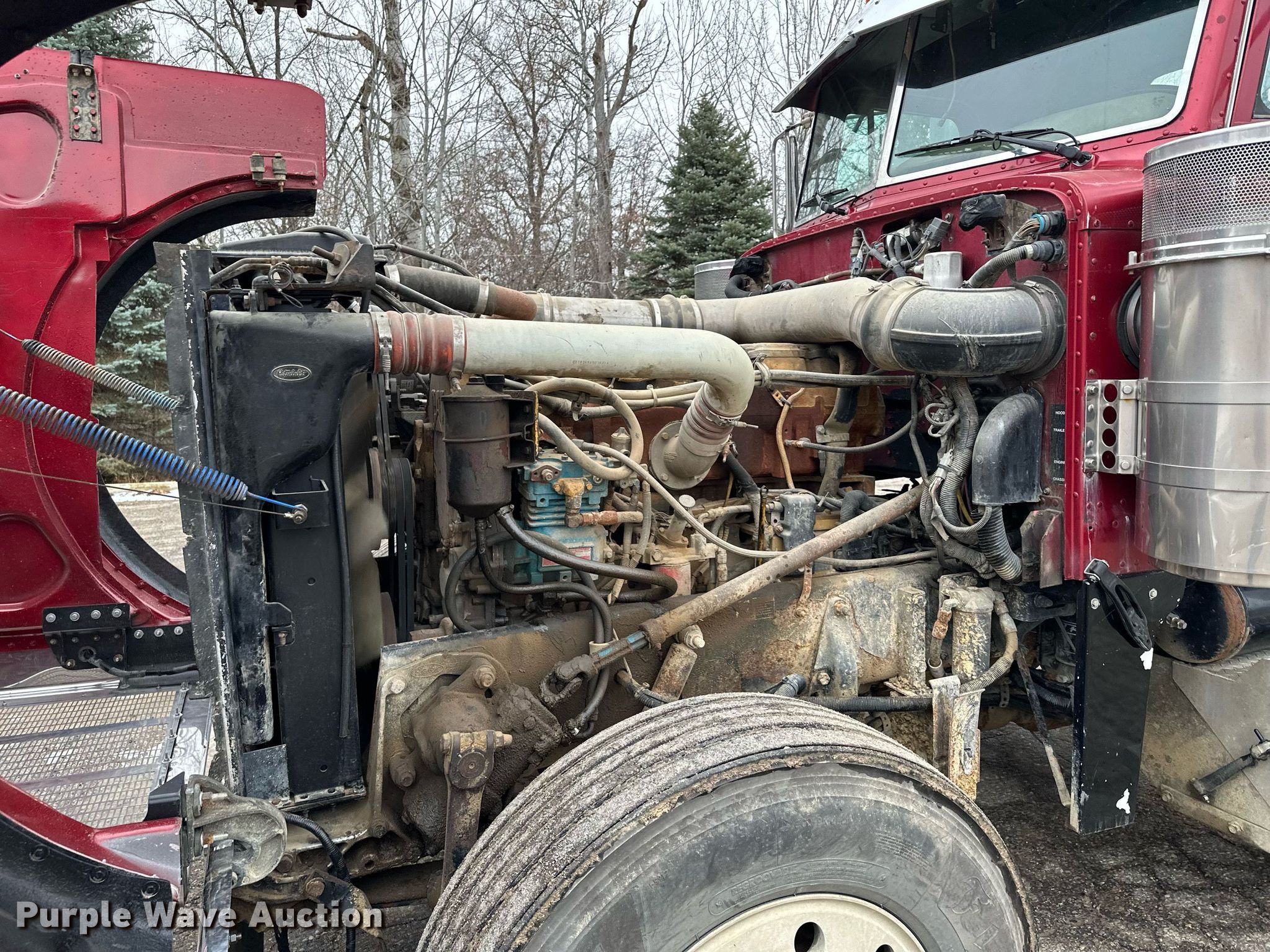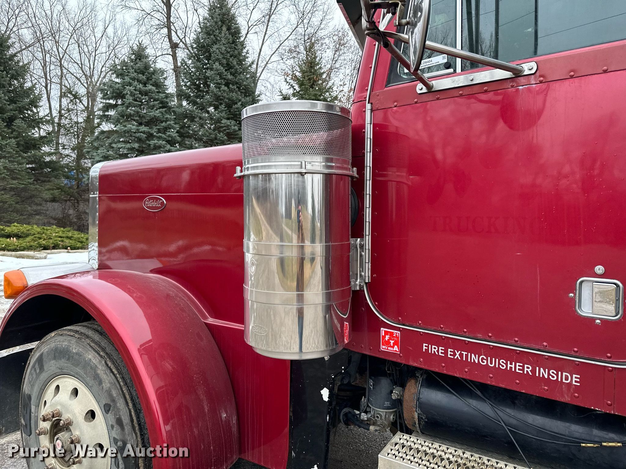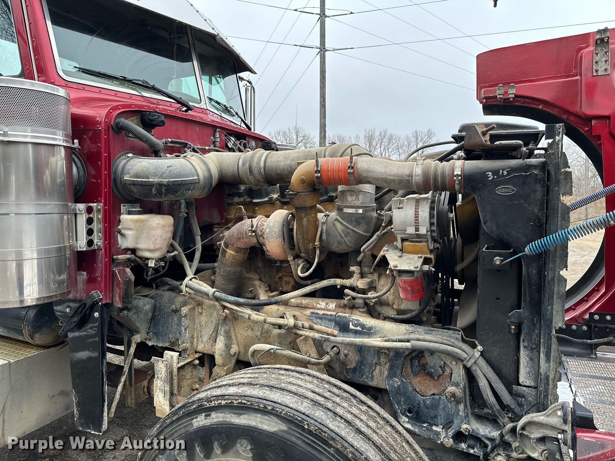 2001 Peterbilt 379 semi truck. Miles: 897,640 on odometer, VIN: 1XP5DB9X61D551080. Engine Caterpillar C15, Displacement: 14.6L, Cylinders: 6, Fuel type: Diesel, Engine brake. Transmission Manual, Speed: 13. Chassis Axles: Tandem, Differential lock: Inter-axle, Suspension: Air, Brakes: Air, PTO, Wet kit, GVWR: 50,000 lbs FAWR: 12,000 lbs, RAWR: 19,000 lbs. Interior AC, Heat, Power locks, Cruise control, Air ride cab. Features Deck plate: Steel, Fifth wheel type: Air operated, Sliding, Fuel tank: Dual. Tires Size: 11R-22.5. Notes Dash warning indicator: Check engine. Minnesota title. Title distribution may be delayed up to 14 days from verification of funds. Fitzgerald Excavating & Trucking. 21432 350th St. Goodhue, MN 55027