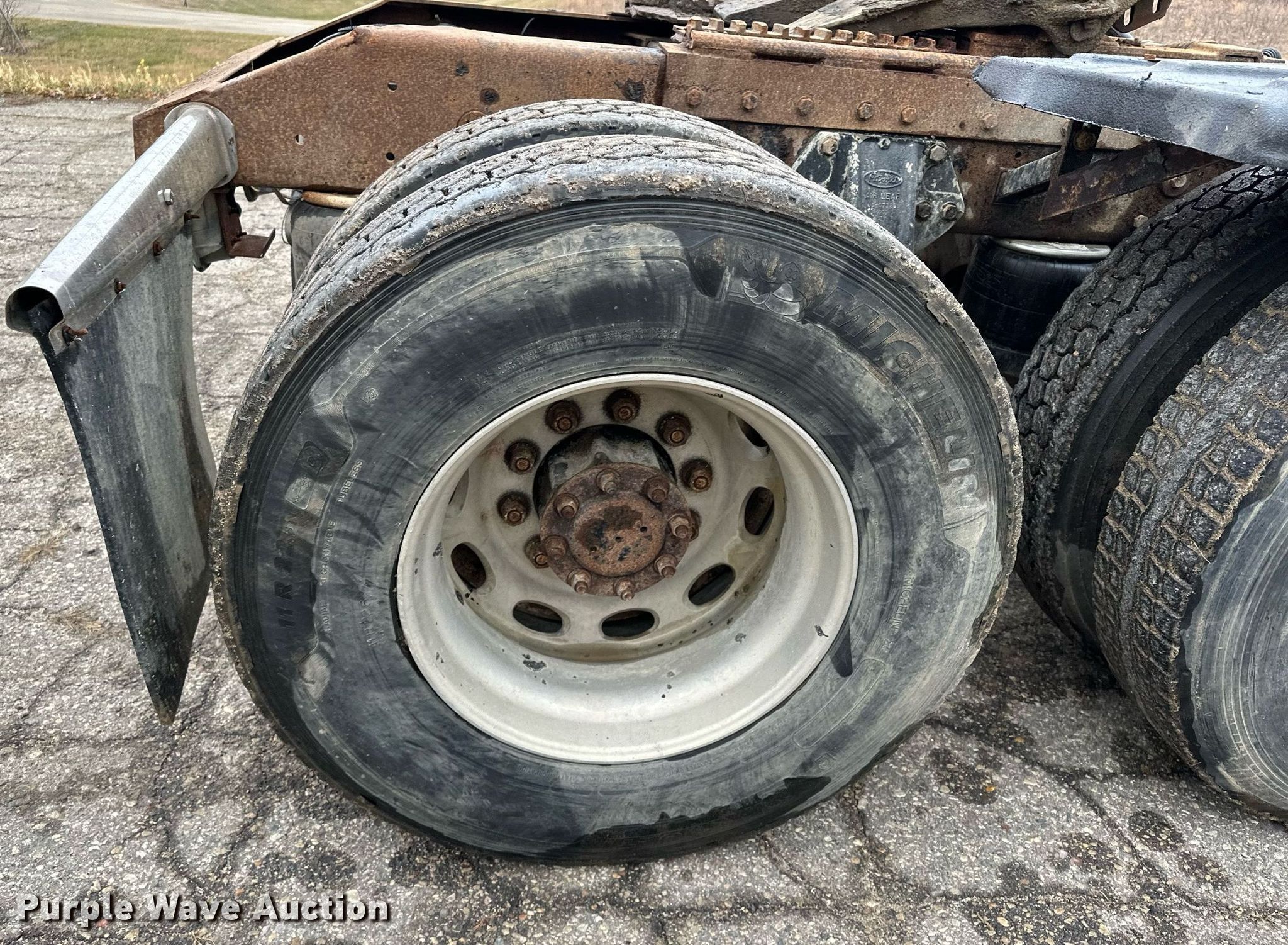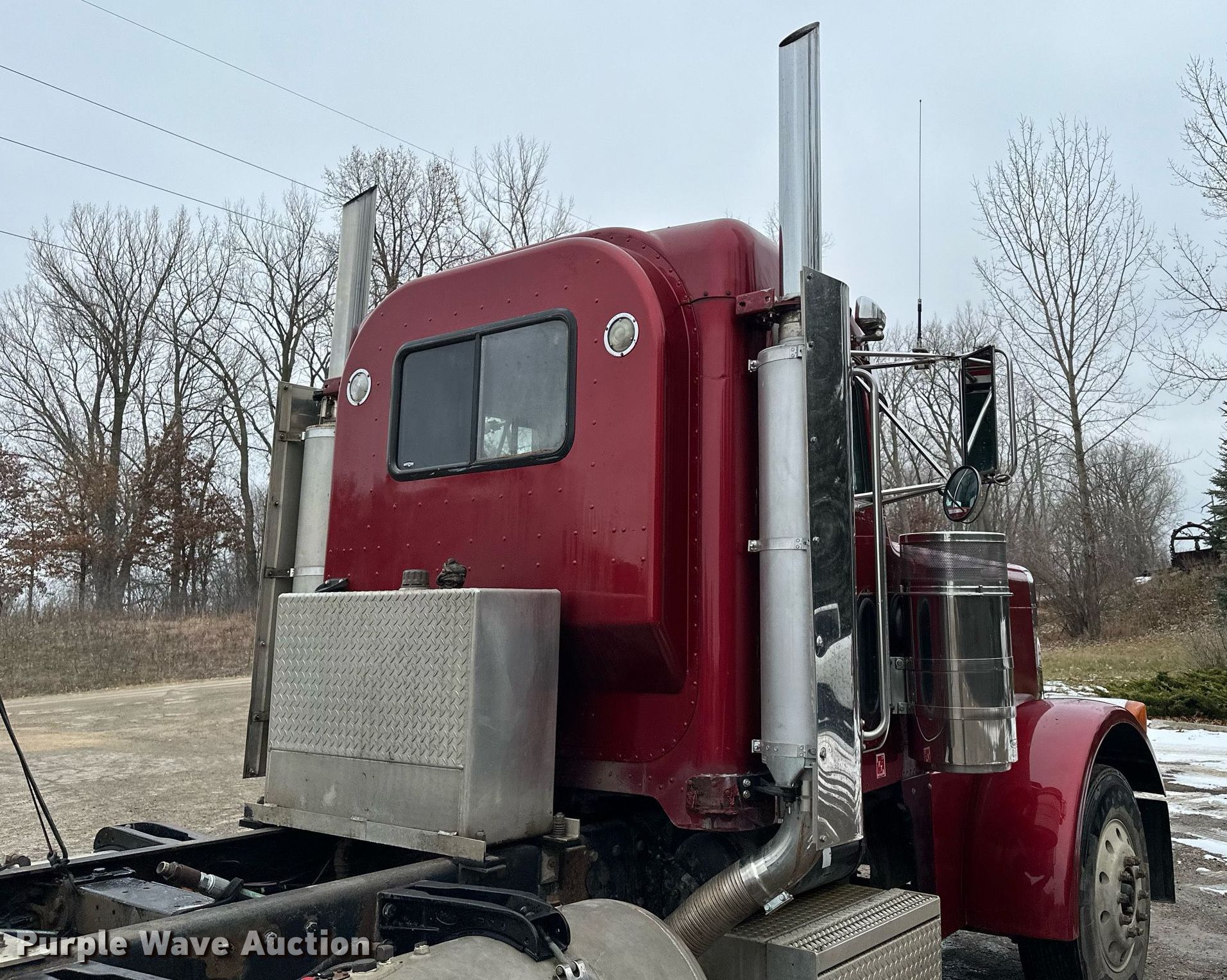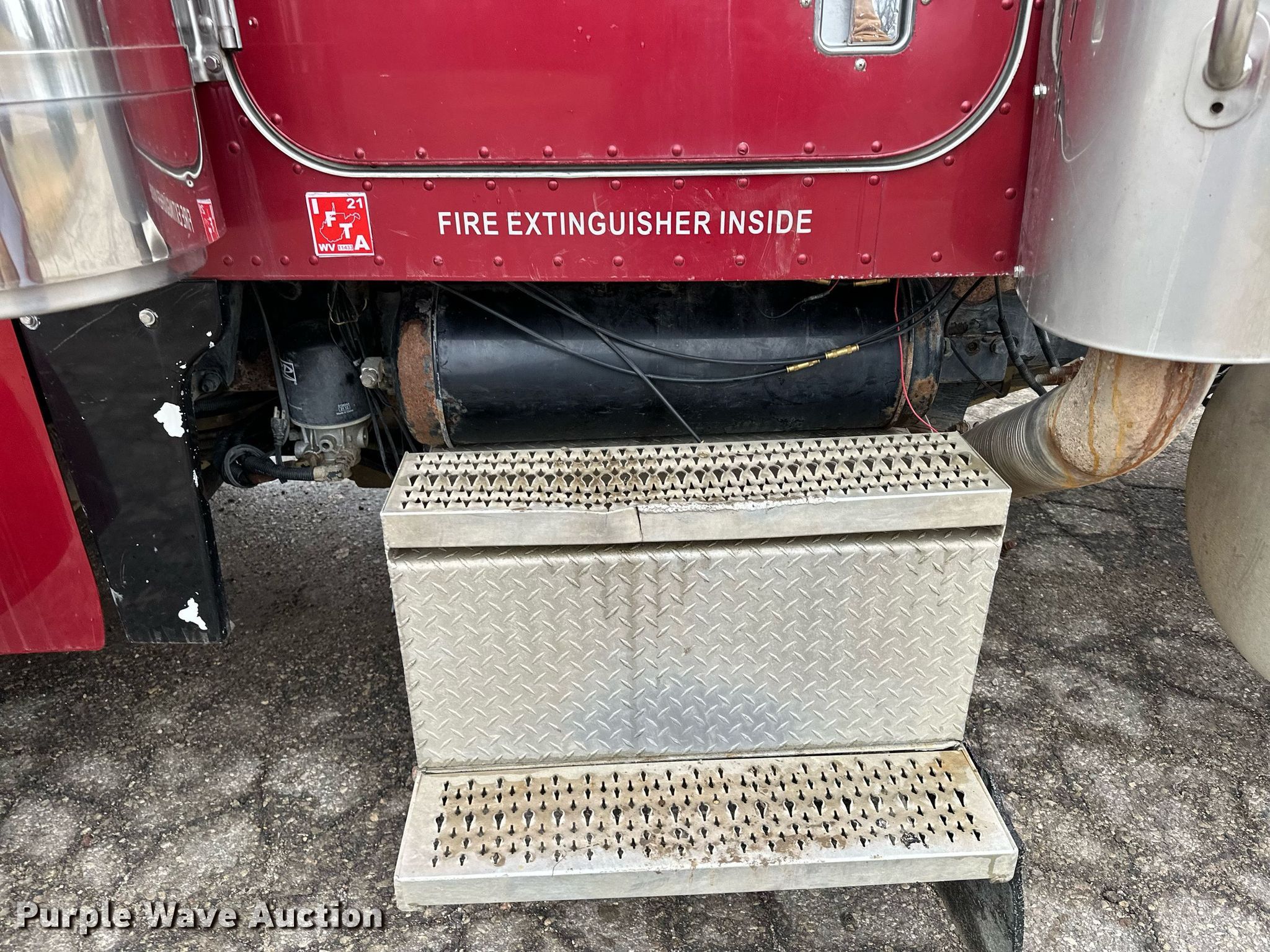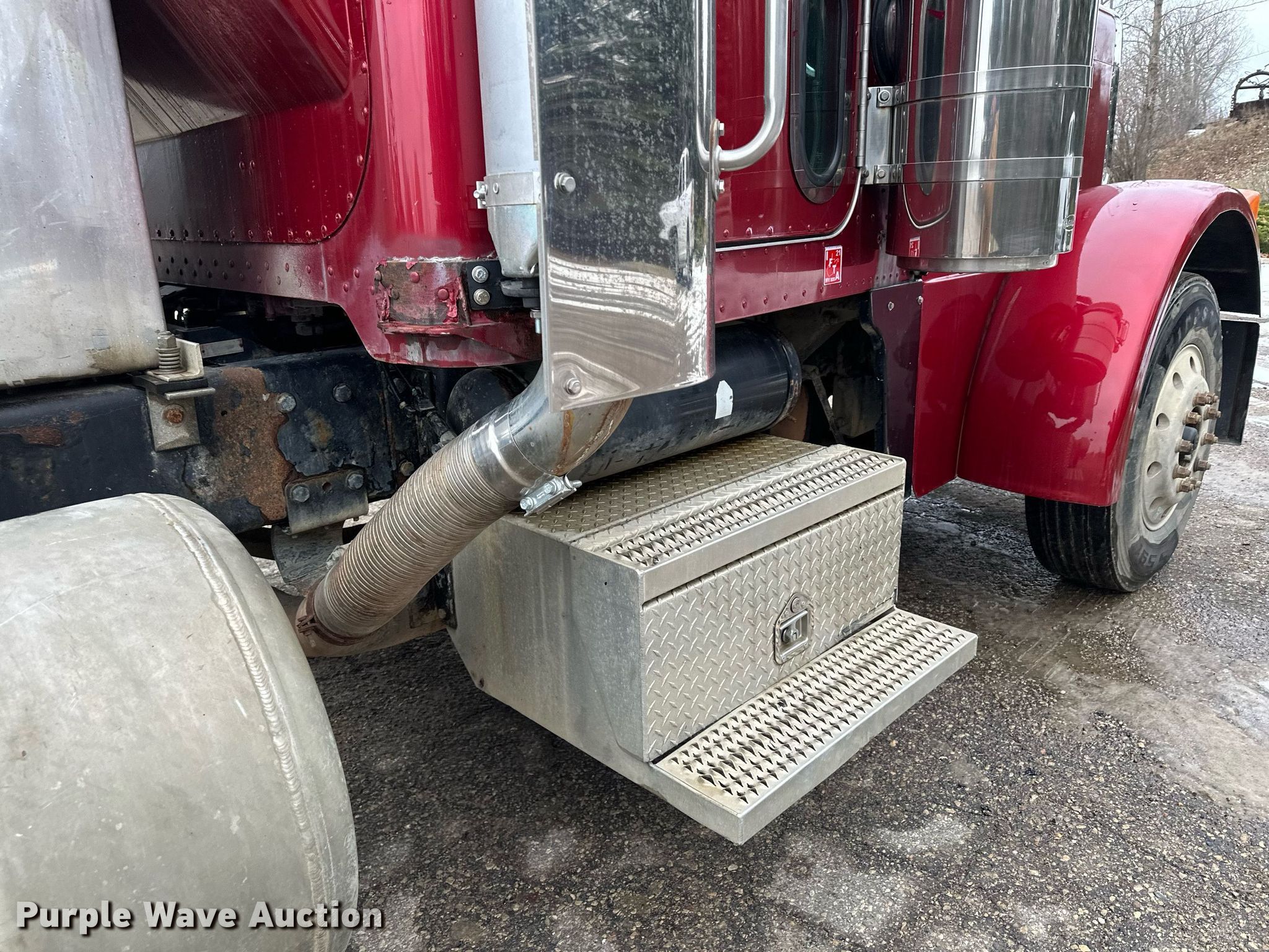 2001 Peterbilt 379 semi truck. Miles: 897,640 on odometer, VIN: 1XP5DB9X61D551080. Engine Caterpillar C15, Displacement: 14.6L, Cylinders: 6, Fuel type: Diesel, Engine brake. Transmission Manual, Speed: 13. Chassis Axles: Tandem, Differential lock: Inter-axle, Suspension: Air, Brakes: Air, PTO, Wet kit, GVWR: 50,000 lbs FAWR: 12,000 lbs, RAWR: 19,000 lbs. Interior AC, Heat, Power locks, Cruise control, Air ride cab. Features Deck plate: Steel, Fifth wheel type: Air operated, Sliding, Fuel tank: Dual. Tires Size: 11R-22.5. Notes Dash warning indicator: Check engine. Minnesota title. Title distribution may be delayed up to 14 days from verification of funds. Fitzgerald Excavating & Trucking. 21432 350th St. Goodhue, MN 55027