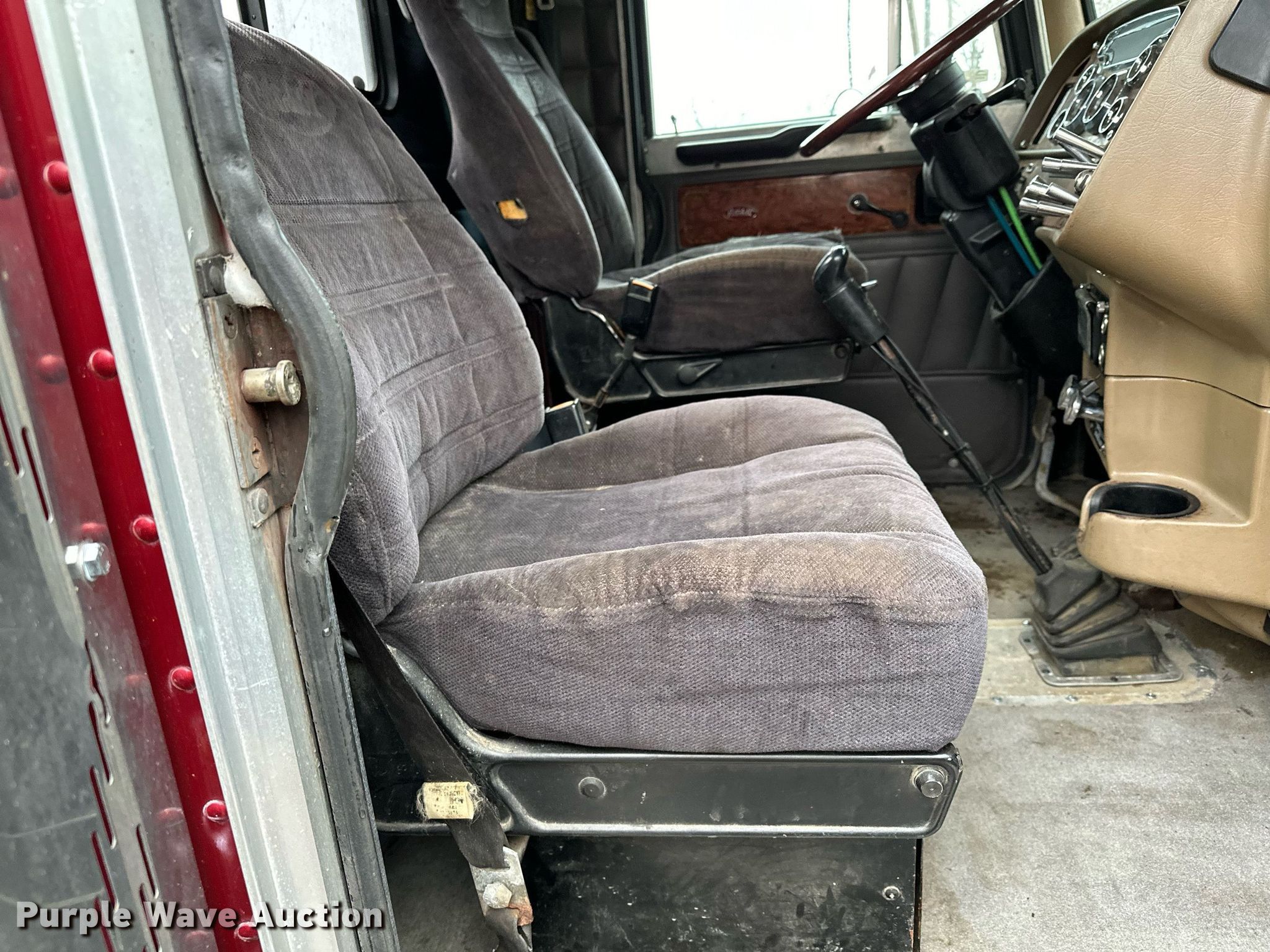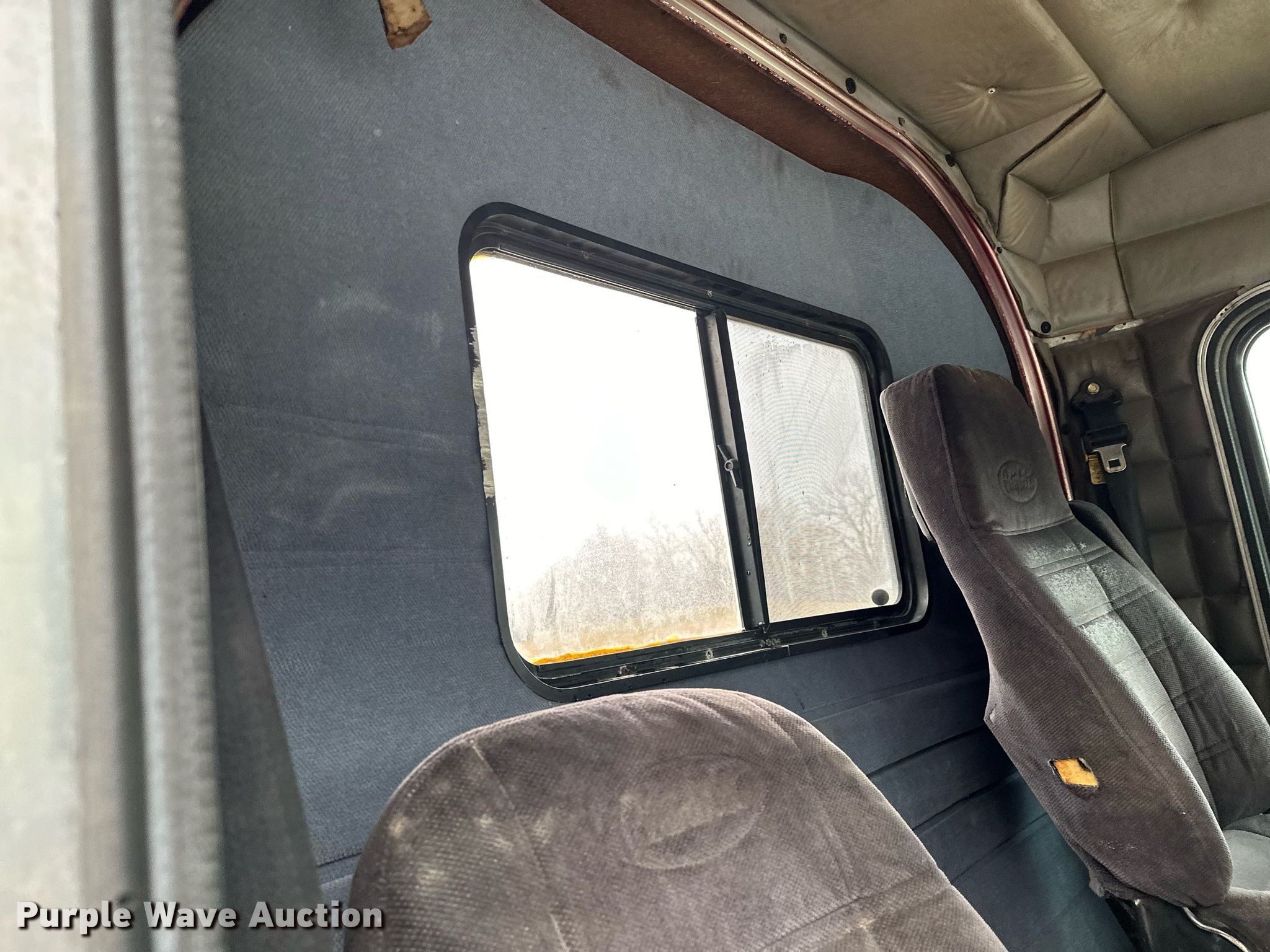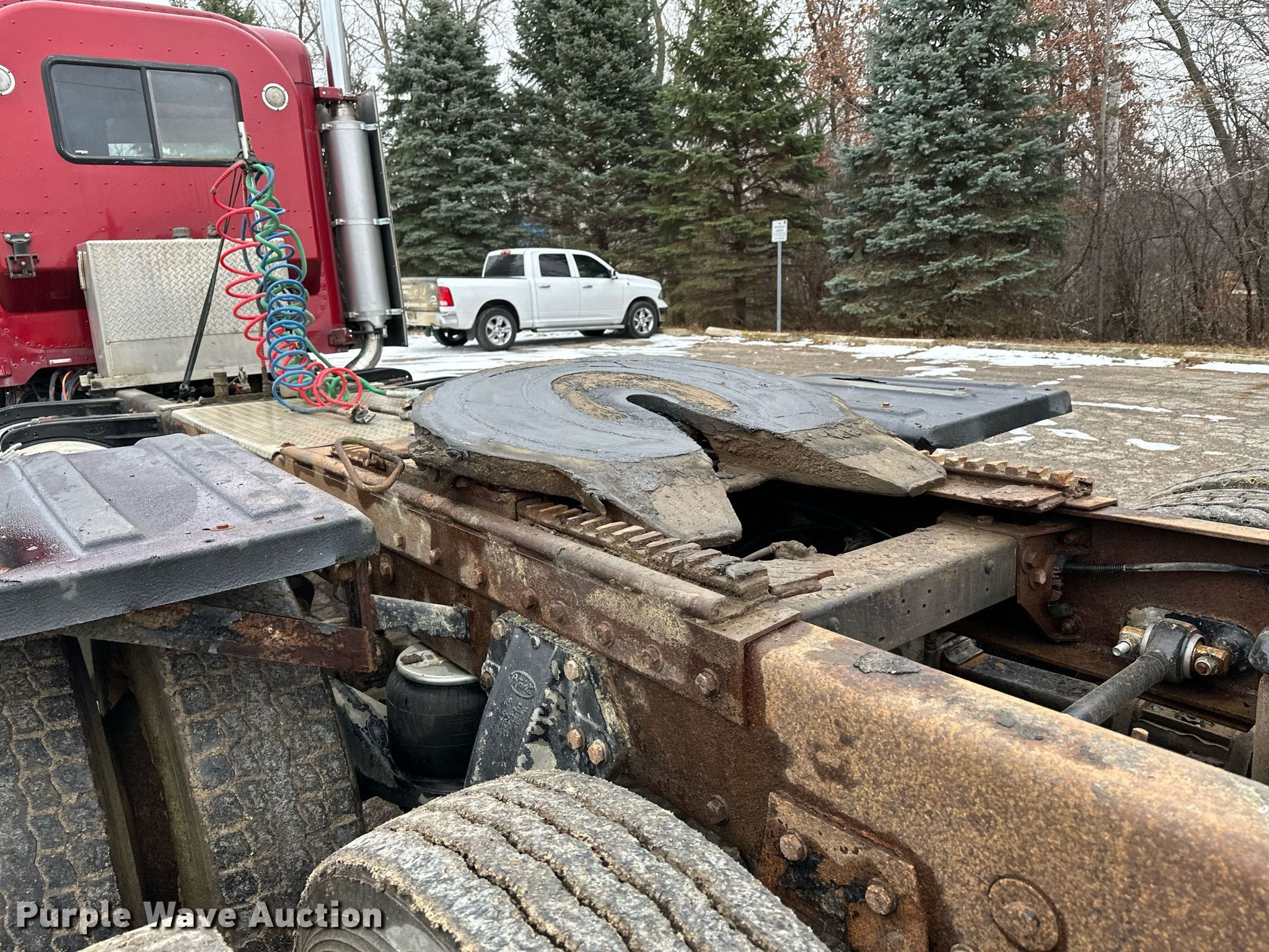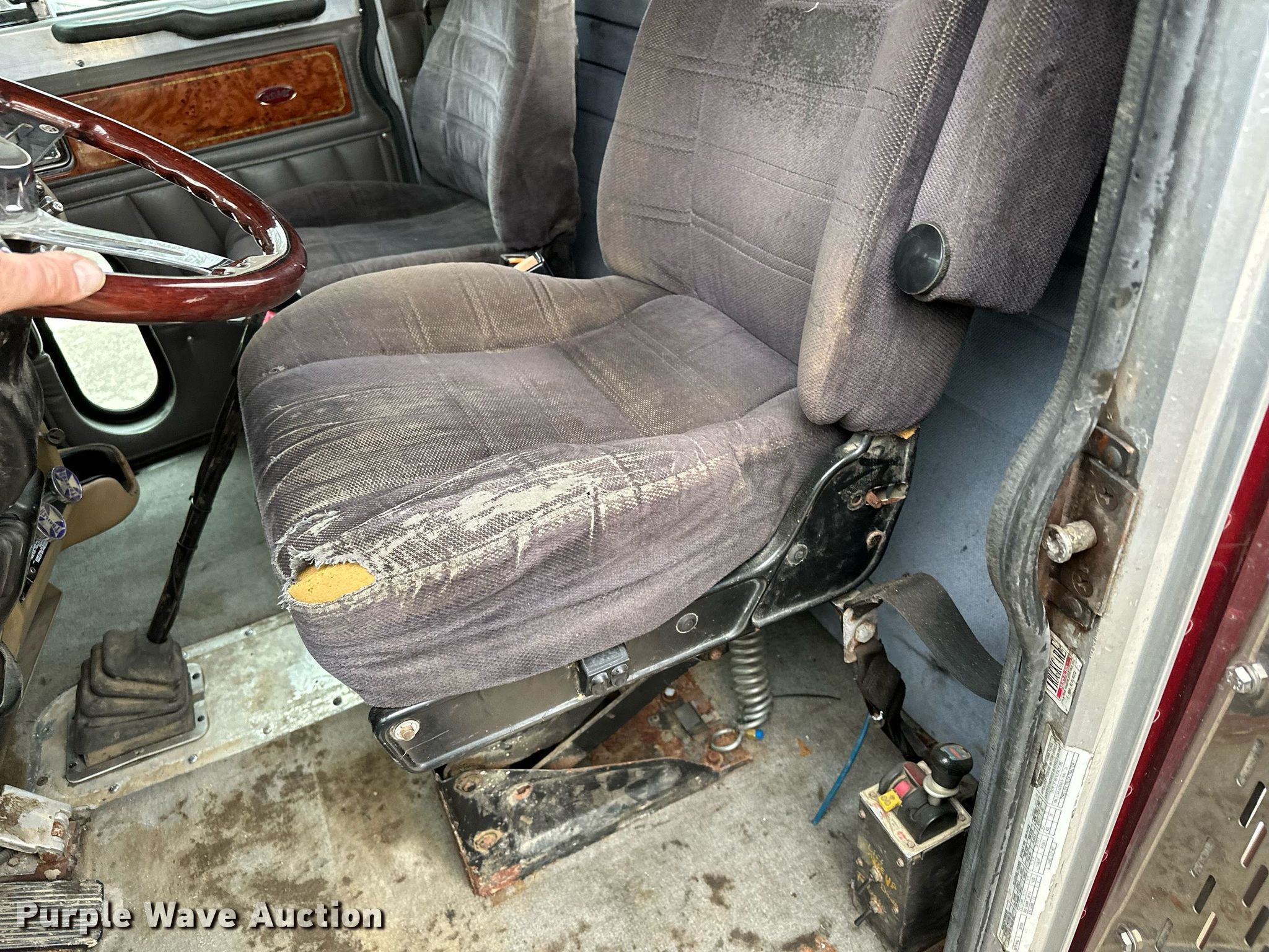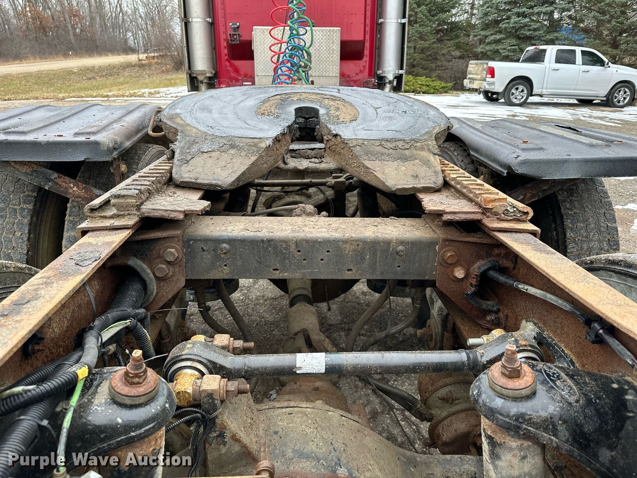 2001 Peterbilt 379 semi truck. Miles: 897,640 on odometer, VIN: 1XP5DB9X61D551080. Engine Caterpillar C15, Displacement: 14.6L, Cylinders: 6, Fuel type: Diesel, Engine brake. Transmission Manual, Speed: 13. Chassis Axles: Tandem, Differential lock: Inter-axle, Suspension: Air, Brakes: Air, PTO, Wet kit, GVWR: 50,000 lbs FAWR: 12,000 lbs, RAWR: 19,000 lbs. Interior AC, Heat, Power locks, Cruise control, Air ride cab. Features Deck plate: Steel, Fifth wheel type: Air operated, Sliding, Fuel tank: Dual. Tires Size: 11R-22.5. Notes Dash warning indicator: Check engine. Minnesota title. Title distribution may be delayed up to 14 days from verification of funds. Fitzgerald Excavating & Trucking. 21432 350th St. Goodhue, MN 55027