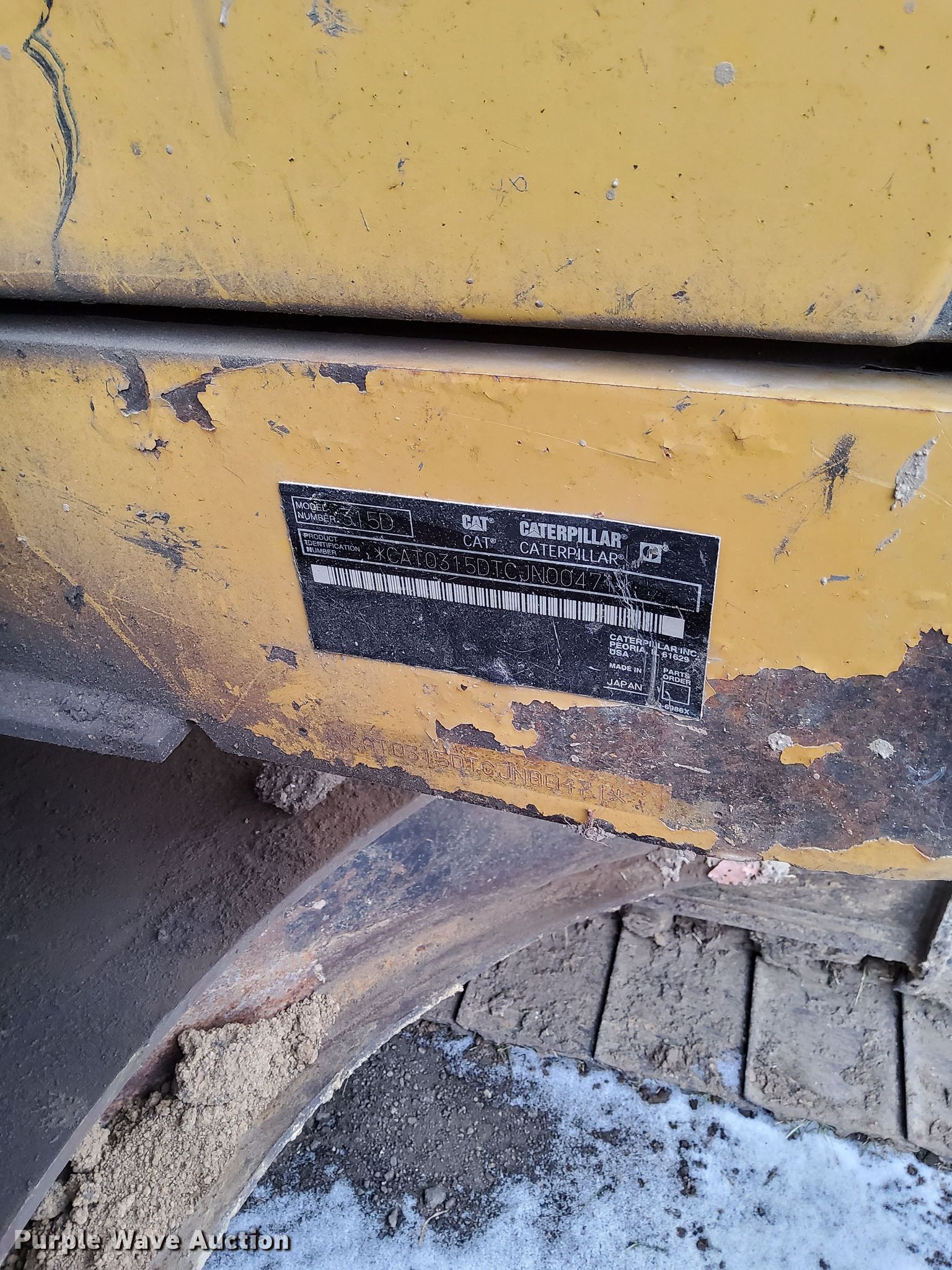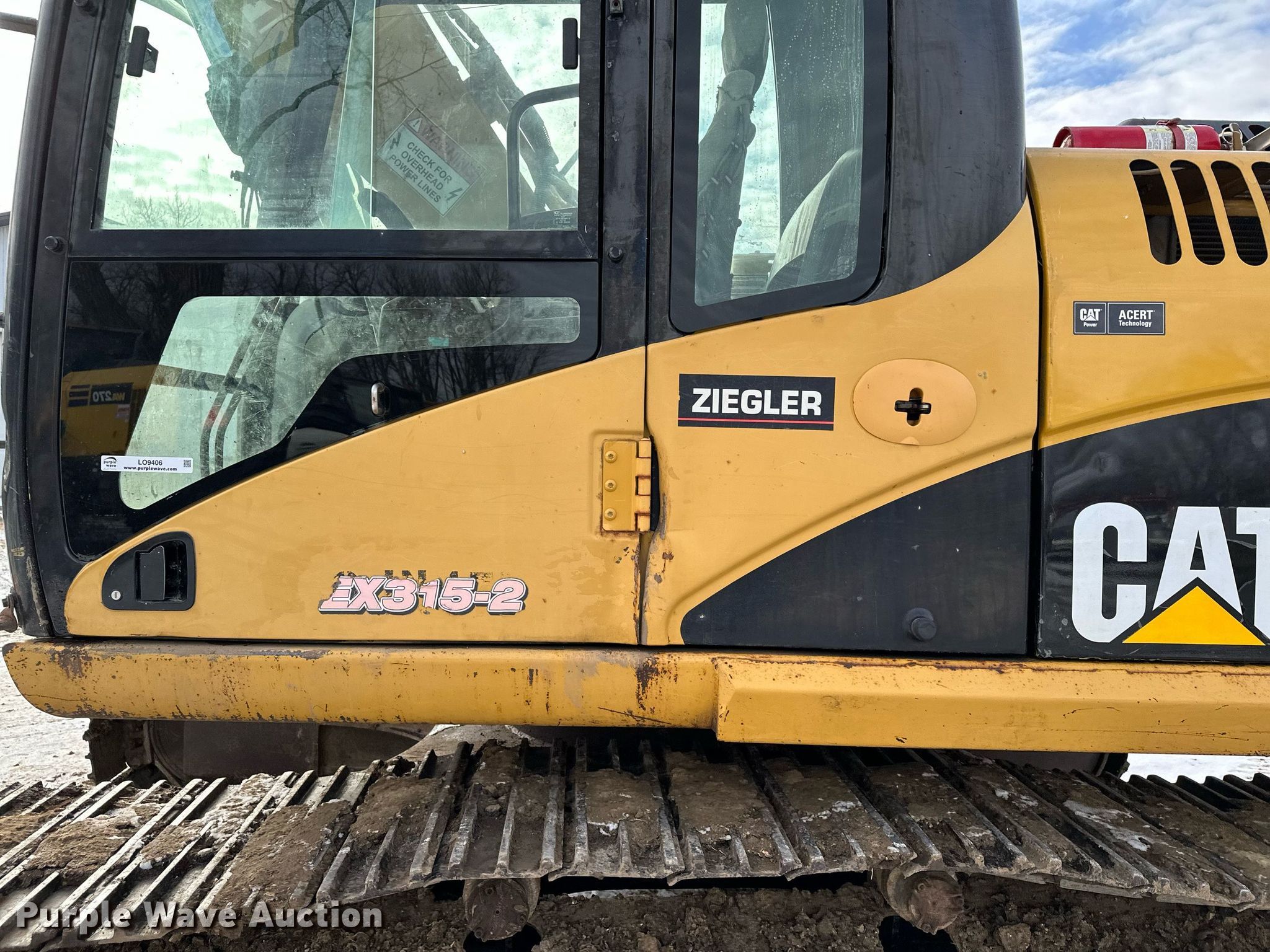 2008 Caterpillar 315D L excavator. Hours: 8,674 on meter, Serial: CATO315DTCJN00471. Engine Caterpillar C4.2 Acert, Cylinders: 4, Fuel type: Diesel. Transmission Hydrostatic, Two speed travel. Operators station Enclosed cab, AC, Heat. Features Auxiliary hydraulics Standard, Two-way, Boom Standard, Stick Stick length: 10' 2", Quick coupler: Hydraulic, Thumb: Hydraulic, Weld-on, Bucket Width: 43". Tracks Width: 23.5", Steel, Grouser pads: Triple. Notes Bucket included but not pictured. Fitzgerald Excavating & Trucking. 21432 350th St. Goodhue, MN 55027