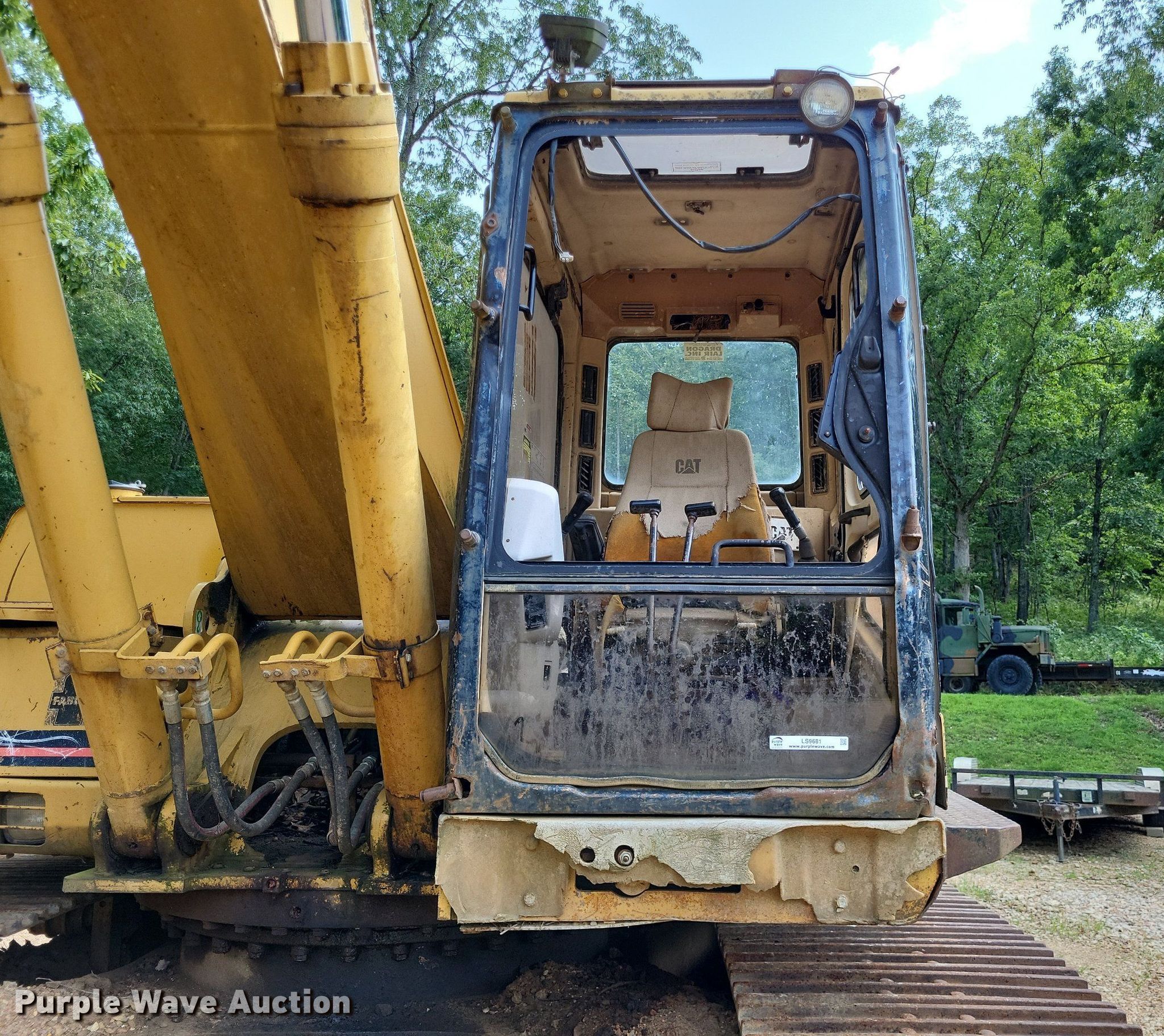 1994 Caterpillar 322L excavator. Hours: Unknown, Serial: 9RL00500. Engine Caterpillar 3116T, Cylinders: 6, Fuel type: Diesel. Transmission Hydrostatic, Two speed travel. Operators station Enclosed cab. Features Counter weights, Boom Standard, Stick Stick length: 117", Bucket Width: 50", Cutting edge: Weld-on, Teeth: 6. Tracks Width: 32", Steel, Grouser pads: Triple. Notes Glass missing/cracked, Hydraulic leak Hydraulic reservoir empty. Walker Products, Inc.. Bourbon, MO 63069