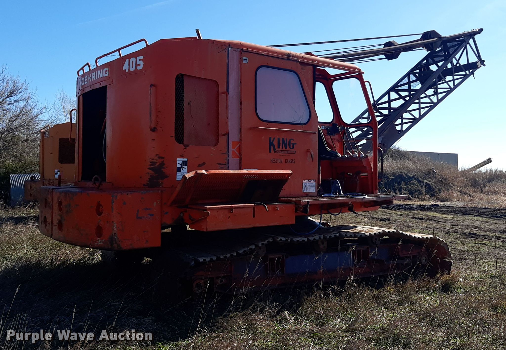 1975 Koehring 405-2A crane. Hours: 7,736 on meter, Serial: C17684, Unit #: 1. Engine Detroit Diesel, Cylinders: 4, Fuel type: Diesel. Transmission Direct-drive. Chassis Brakes: Air, Propulsion: Mechanical, Controls: Air actuated. Operators station Enclosed cab, Crane controls: Stick. Features Lattice, Maximum boom length: 65' Maximum lift capacity: 80,000 lbs. Tracks Width: 36". Notes Dead battery, Possible transmission issue, will not move, Non-operational unit. King Construction Company. 301 North Lancaster Avenue. Hesston, KS 67062