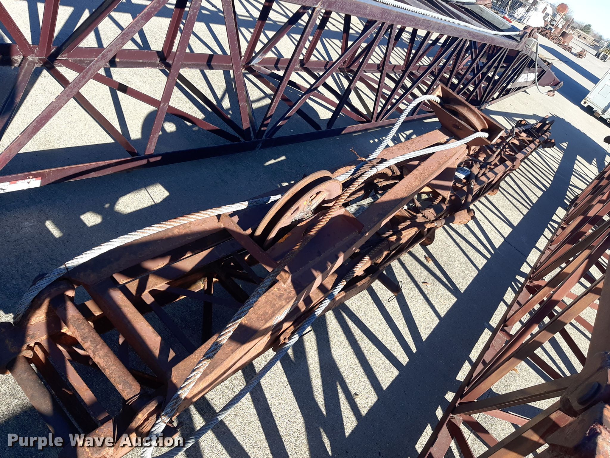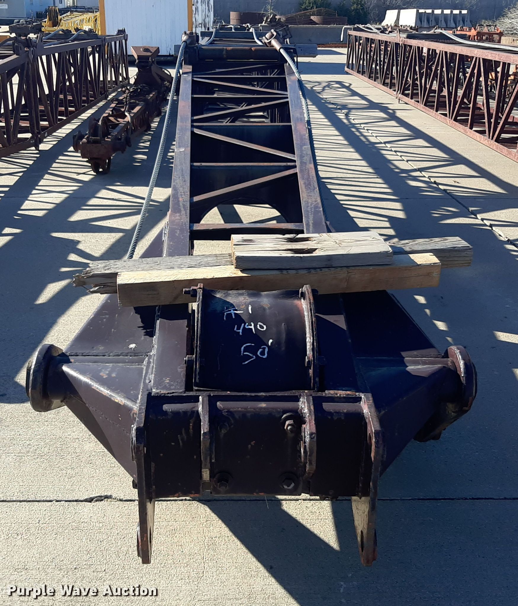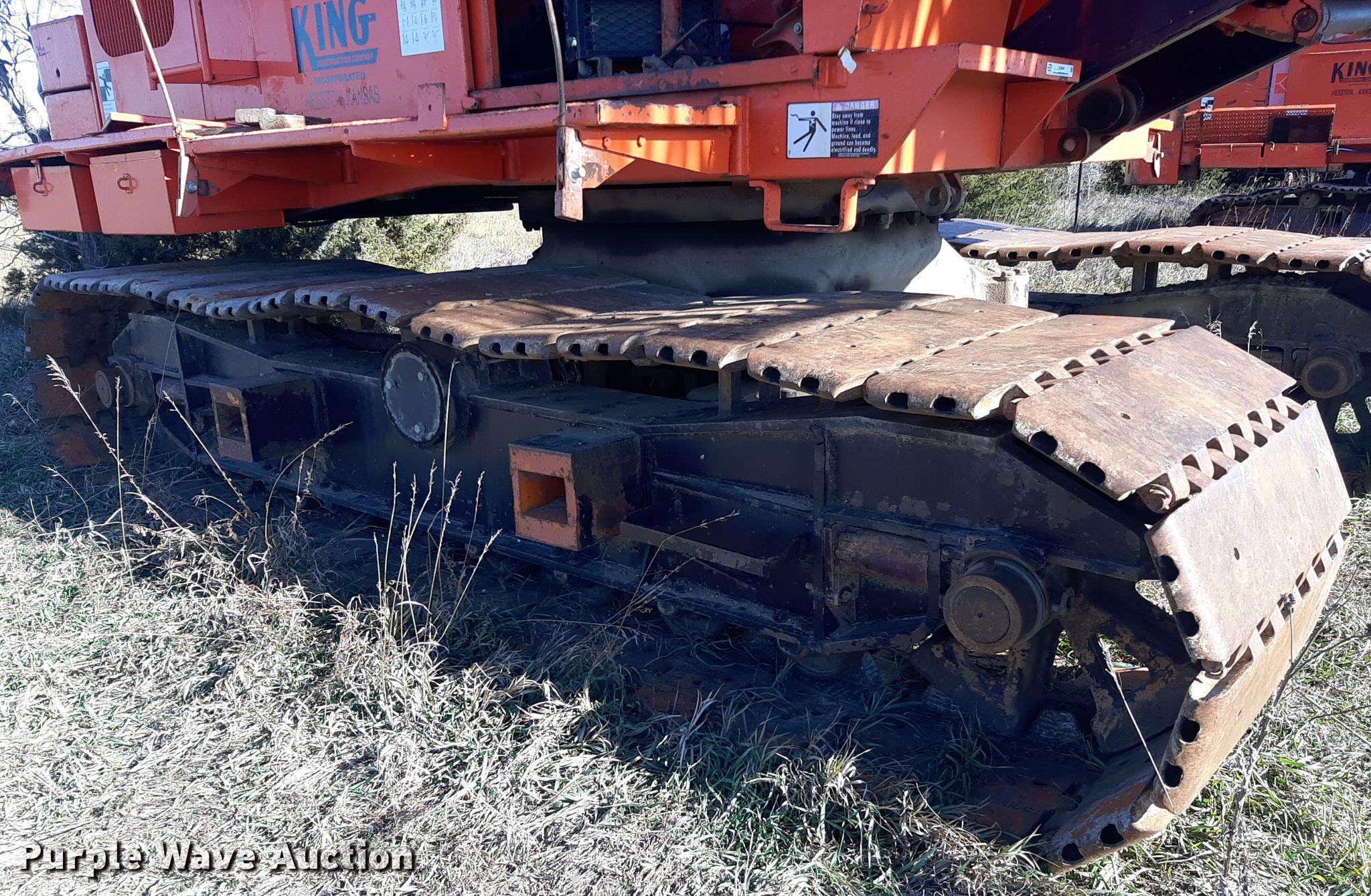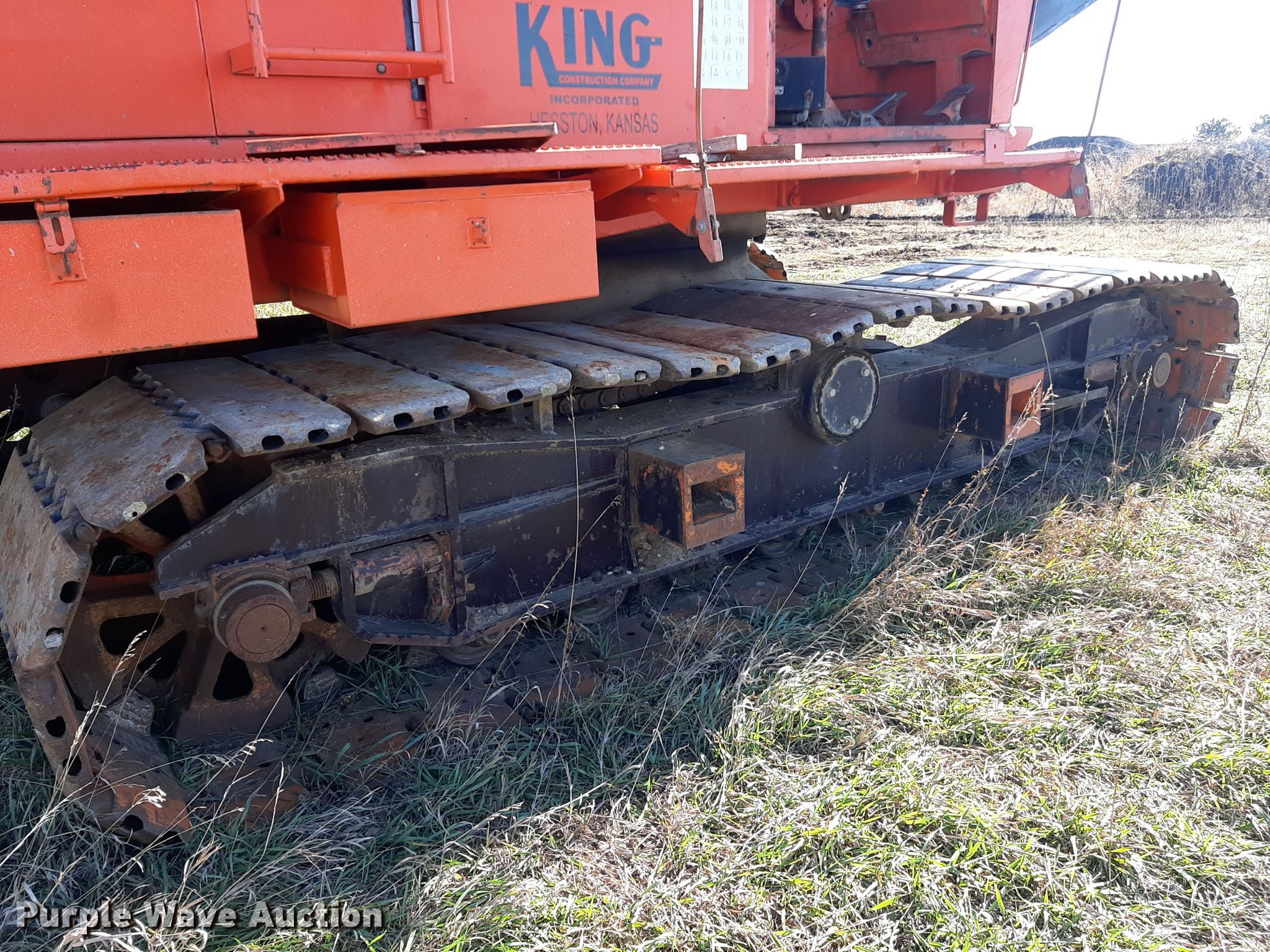 1971 Koehring 440 crane. Hours: 215 on meter, Serial: C15592, Unit #: 1. Engine Cylinders: 4, Fuel type: Diesel. Transmission Direct-drive. Chassis Brakes: Air, Propulsion: Mechanical, Controls: Air actuated. Operators station Enclosed cab, Crane controls: Stick. Features Lattice, Maximum boom length: 75' Maximum lift capacity: 90,000 lbs, Boom controls In-cab. Tracks Width: 36". Notes Glass cracked. King Construction Company. 301 North Lancaster Avenue. Hesston, KS 67062