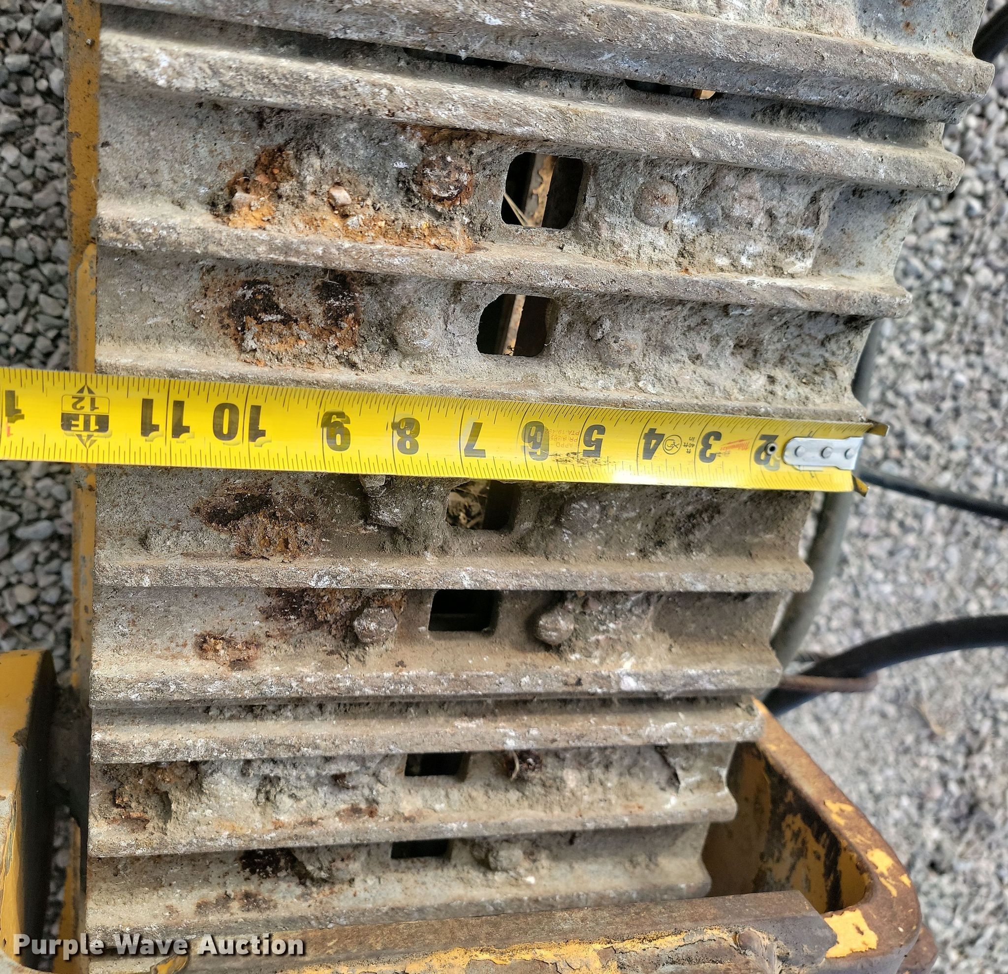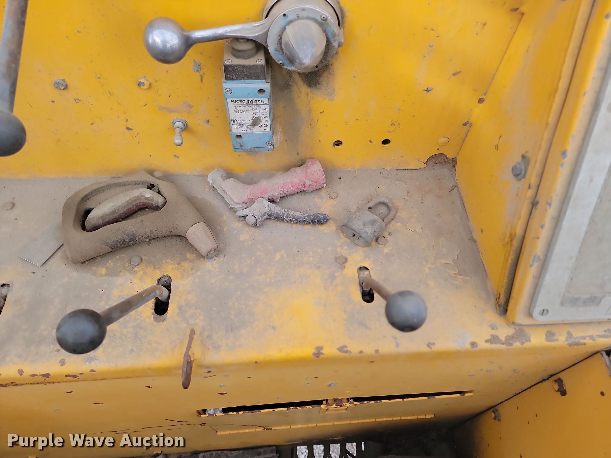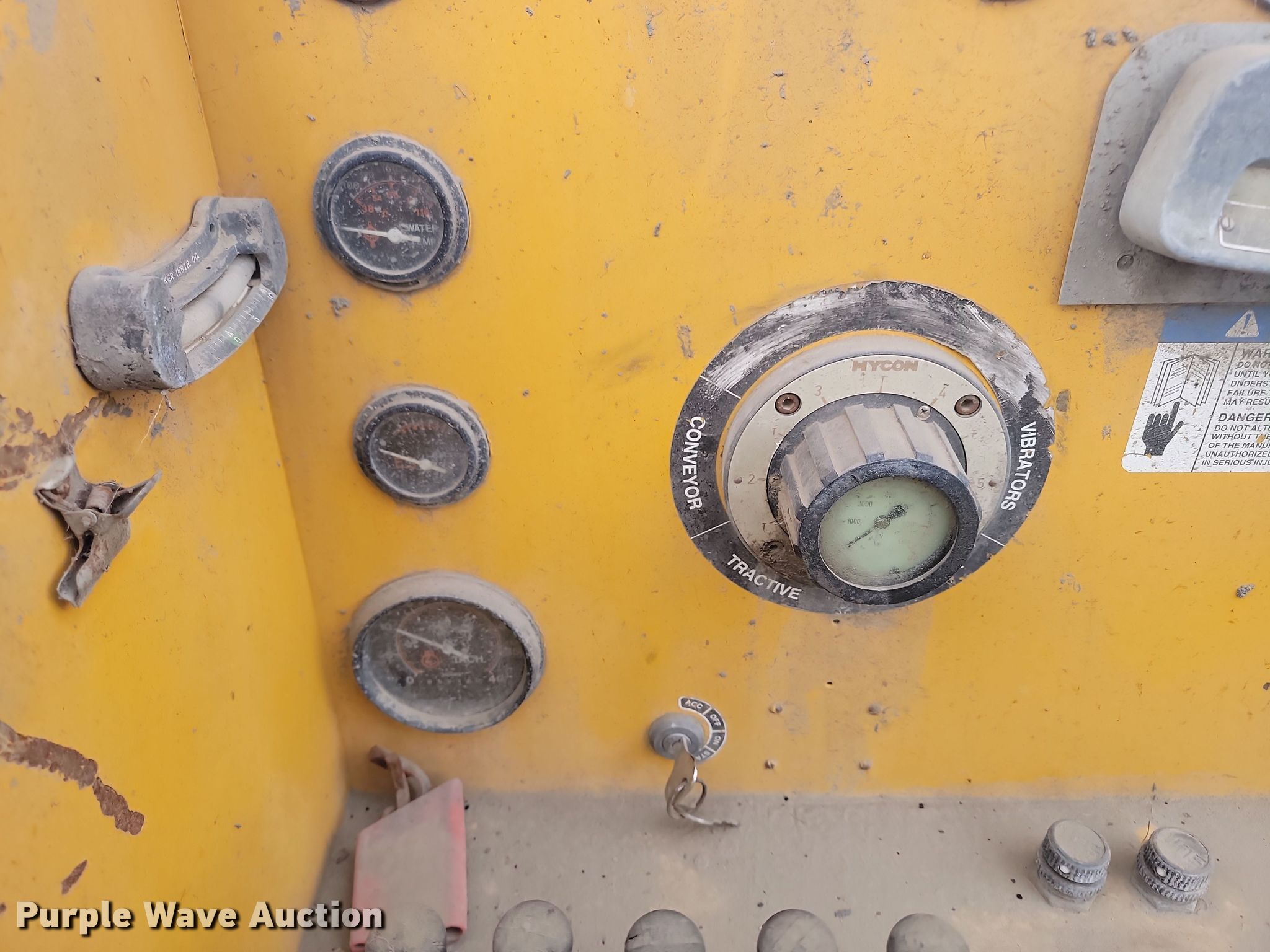 1990 Gomaco Commander III GT6300 slip form paver. Hours: 5,017 on meter, Serial: MC1727101. Engine Cylinders: 6, Fuel type: Diesel. Features Cutting head Width: 40", Auger Length: 12", Diameter: 12", Hopper Length: 44", Width: 34", Conveyor Length: 15', Width: 24", Slope controls, Spray wand. Tracks Width: 12", Grouser pads: Triple. 210 west highway 14/34. Fort Pierre, SD 57532