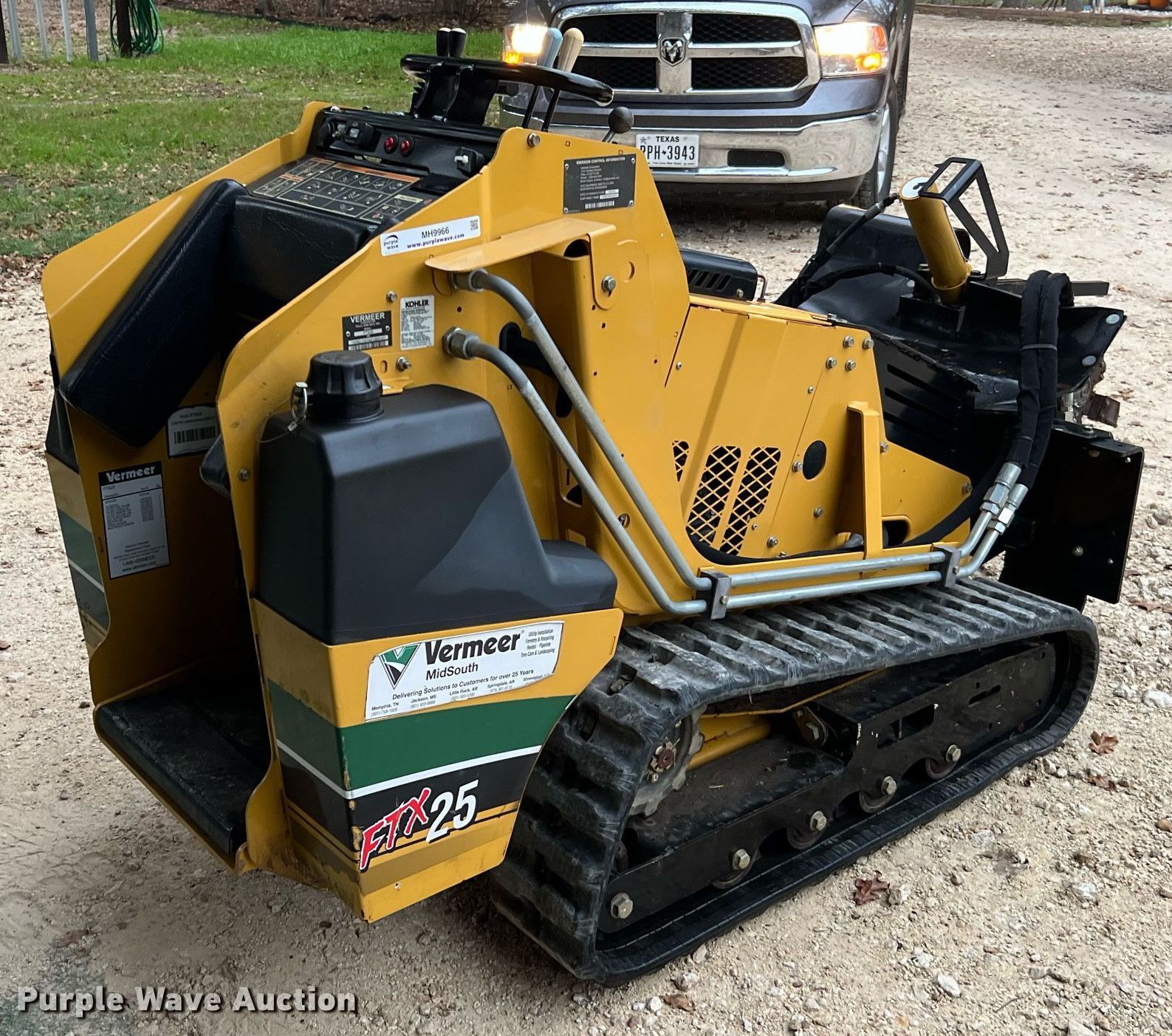 Purple Wave is selling a used Trencher or Rock Saw in Texas. This item is a 2016 Vermeer FTX25 trencher with the following: Hours: 95 on meter, Serial: 1VRD110Y4G1000131