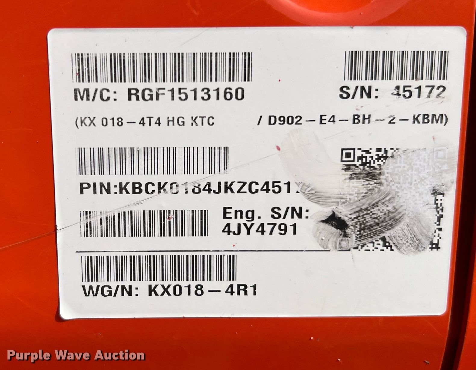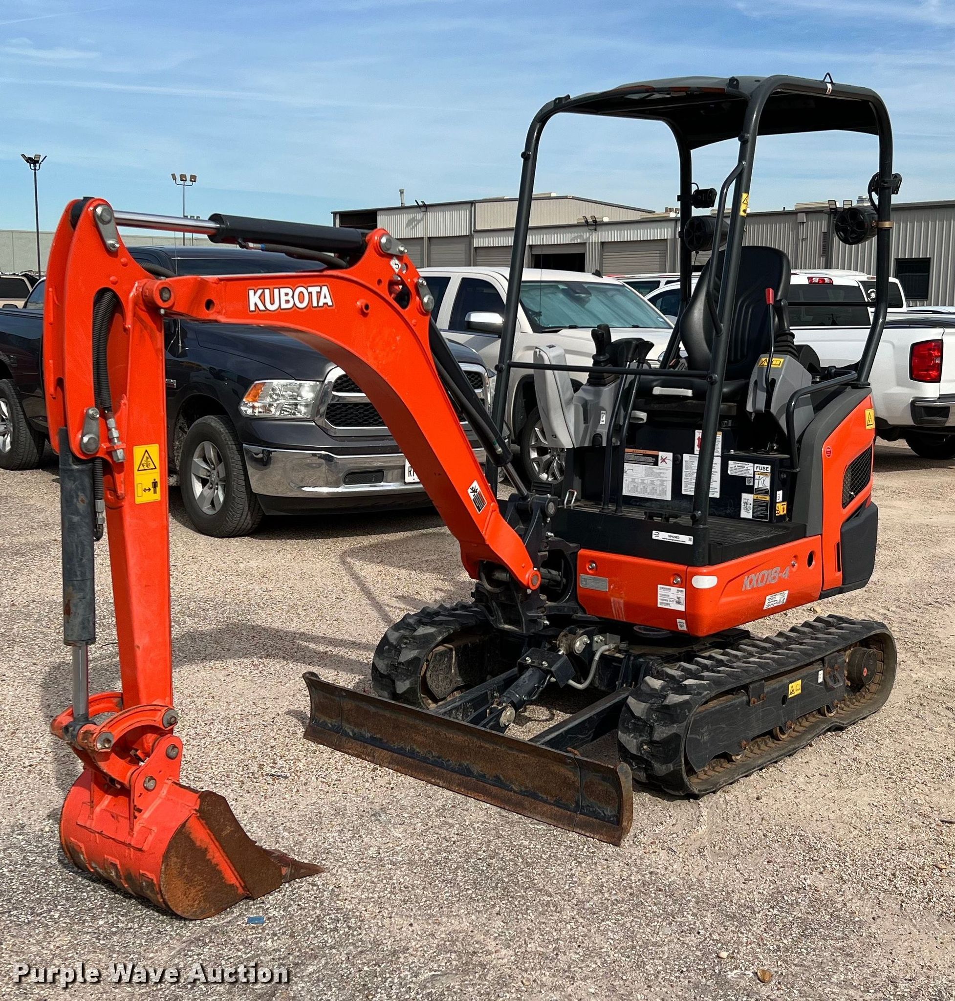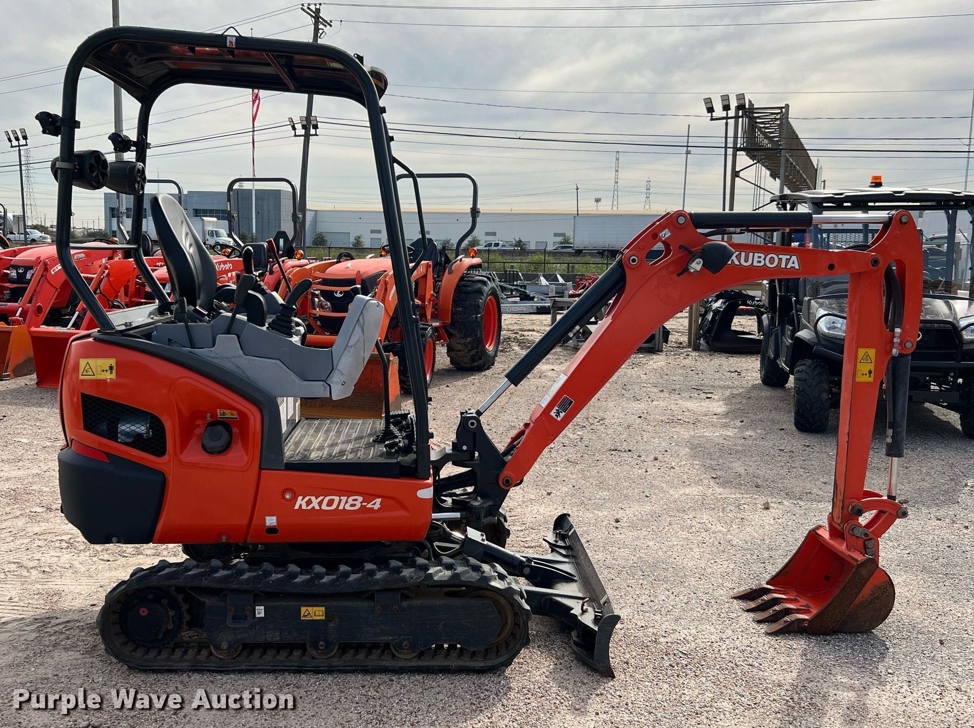 Purple Wave is selling a used Mini Excavator in Texas. This item is a 2019 Kubota KX018-4R1 mini excavator with the following: Hours: 286 on meter, Serial: KBCK0184JKZC45172, Unit #: D70554